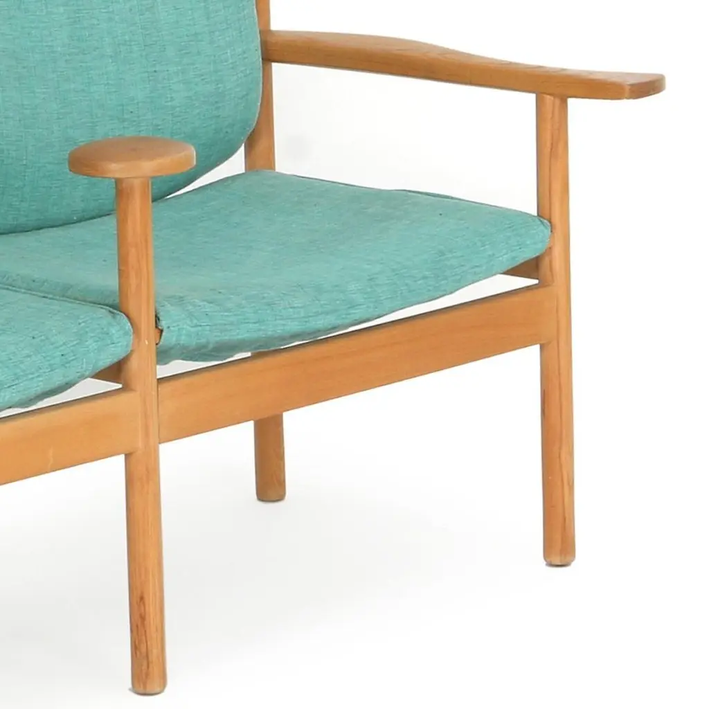 Unique Vilhelm Wohlert sofa of solid elm. Upholstered with green fabric. Made 1966 by cabinetmaker Arne Poulsen. H. 120 cm. L. 160 cm. D. 77 cm. Three available. Purchased from the cabinetmaker's guild 1966. Described and depicted: Grete Jalk [ed.]: “40 Years of Danish Furniture Design”, vol. 4, p. 352. Restoration, re-upholstery and re-finishing included in price, however pictures may show condition prior to this.