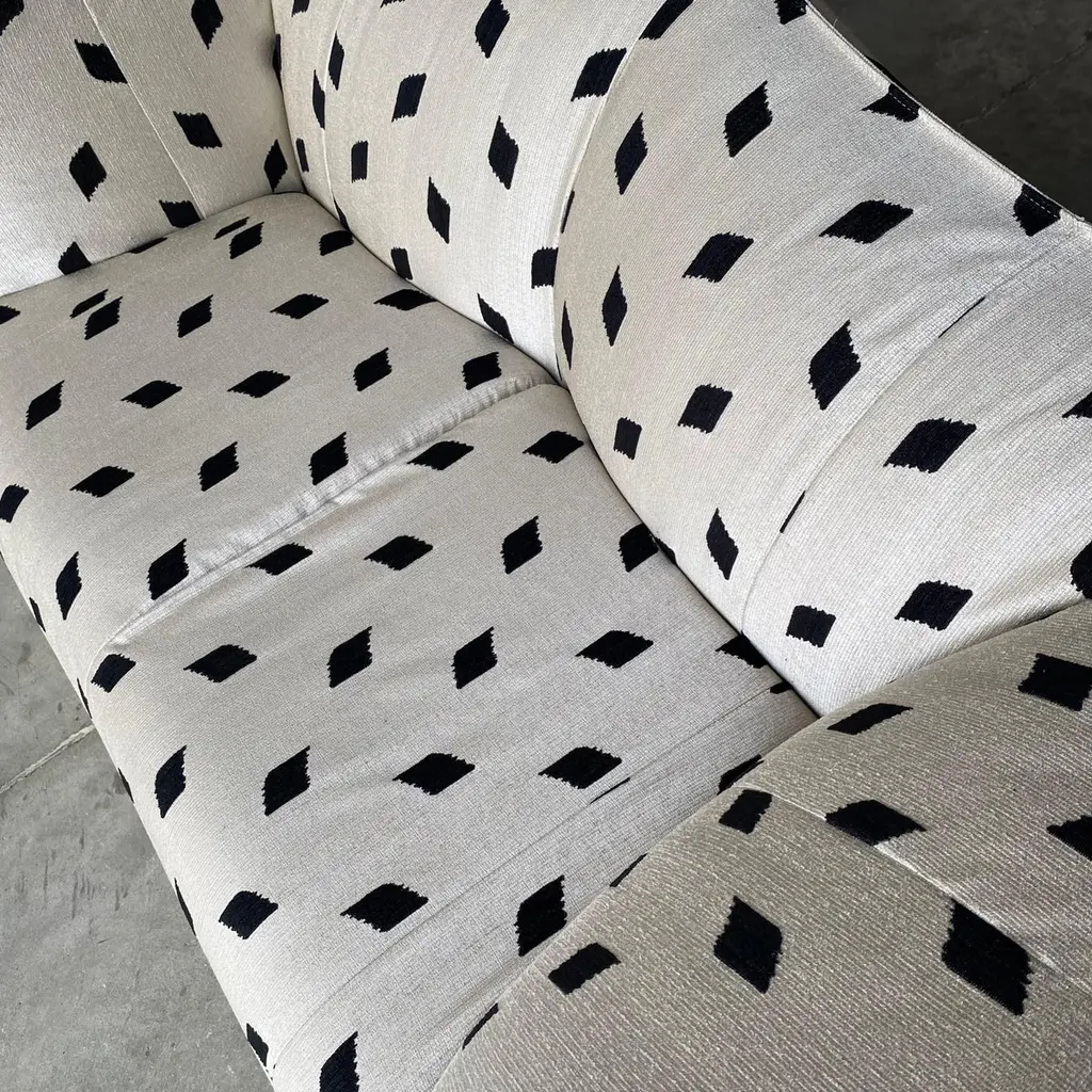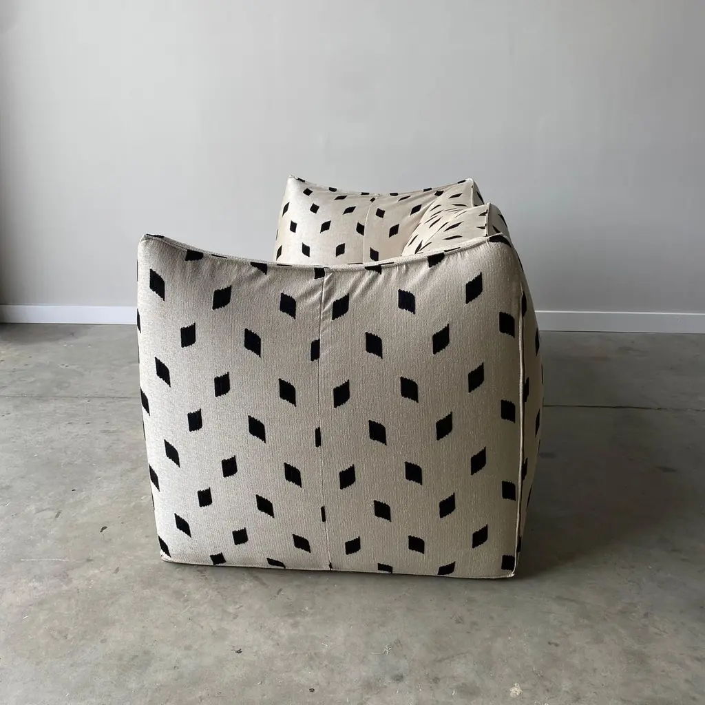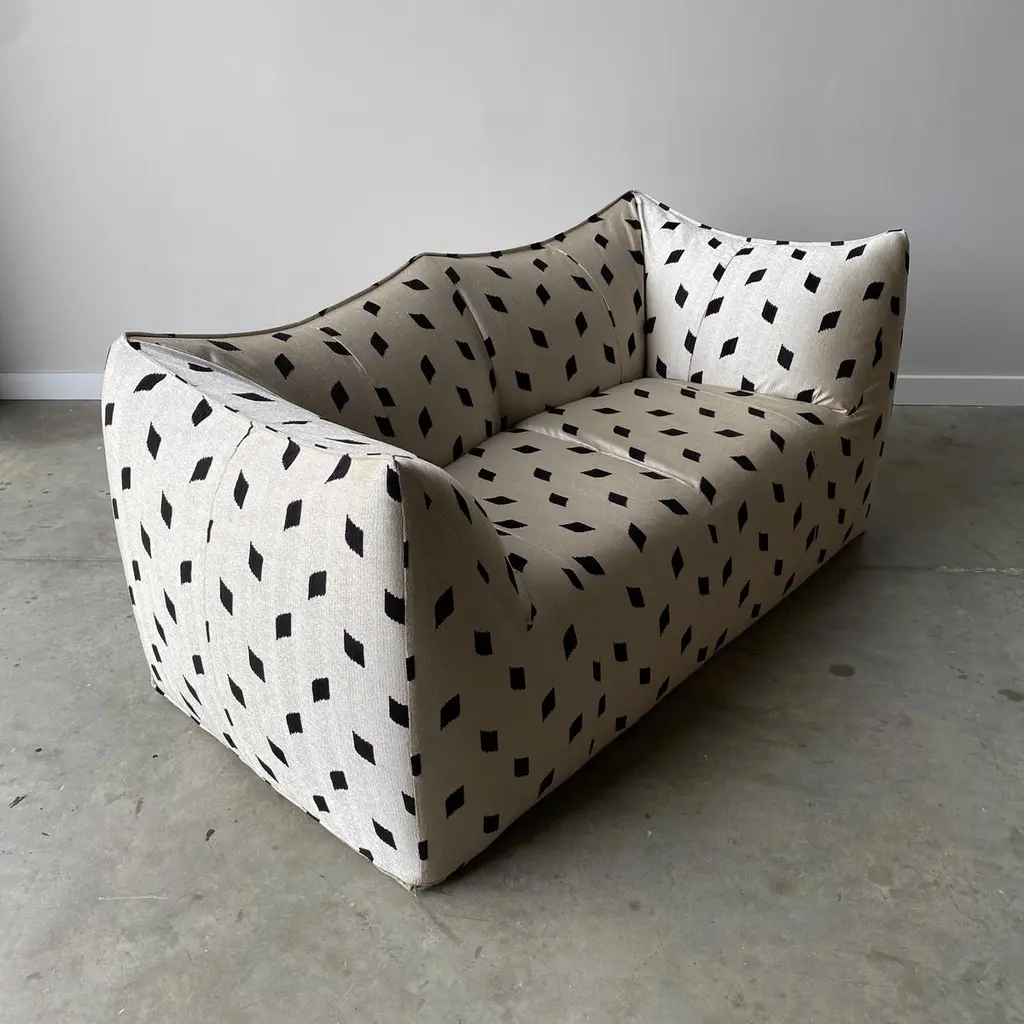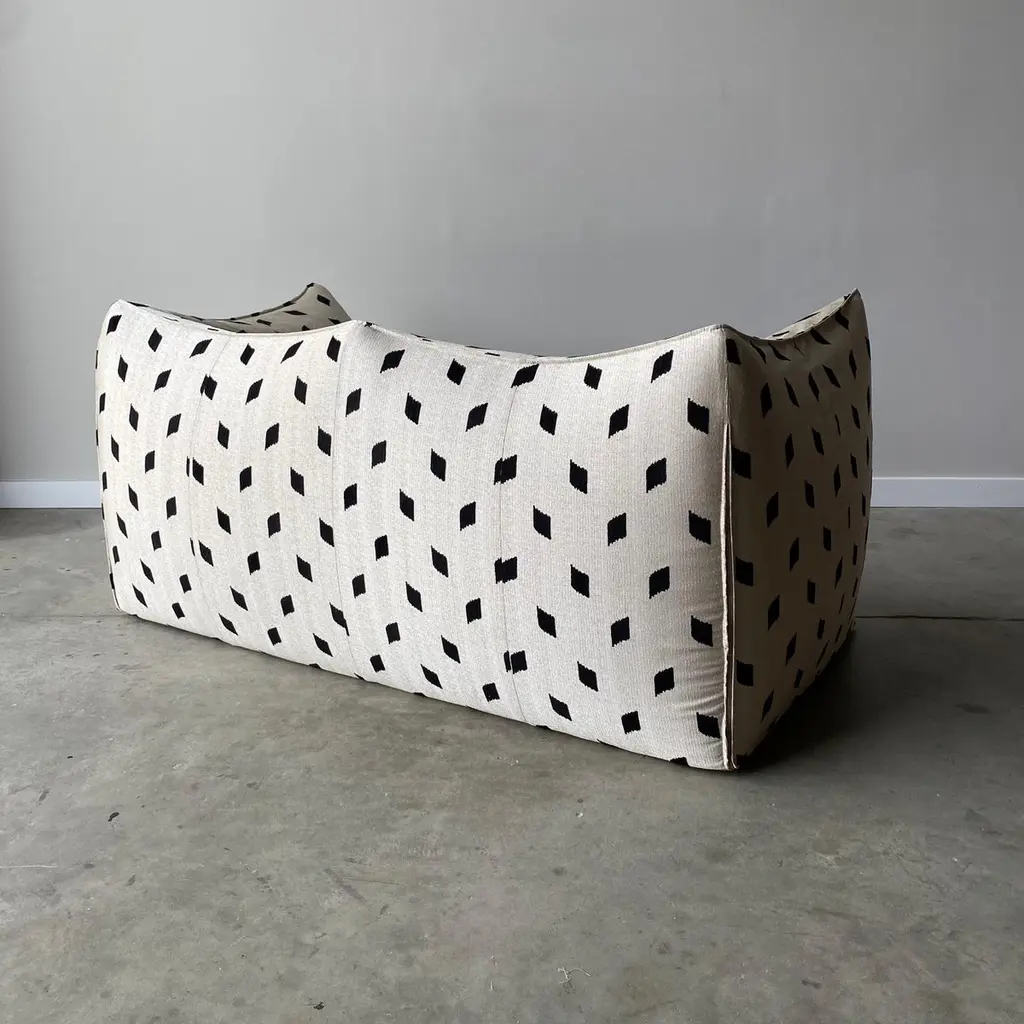 1970s Mario Bellini Le Bambole Sofa, B&B ItaliaAn icon newly restored. Features Pollack Textiles "Modern Dance" Upholstery(black on light khaki).66" long, 36" deep, 29" high, 18" seat height