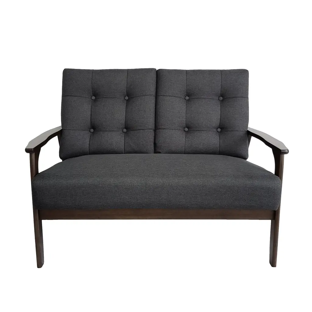 ▷Treat your home decor with a sophisticated ambiance that will instantly enhance any living room or office space. Our loveseat combines understated, natural materials and refined upholstery to create a piece that is worthy of any room. Featuring gorgeous button tufting that is finished with waffle stitching, our loveseat offers your decor both texture and upgraded style. ▷Includes: One (1) Tufted Loveseat ▷Material: Fabric ▷Leg Material: Rubberwood ▷Color: Charcoal Gray ▷Leg Finish: Walnut ▷Dimensions: 30.00 inches deep x 45.60 inches wide x 33.40 inches high
