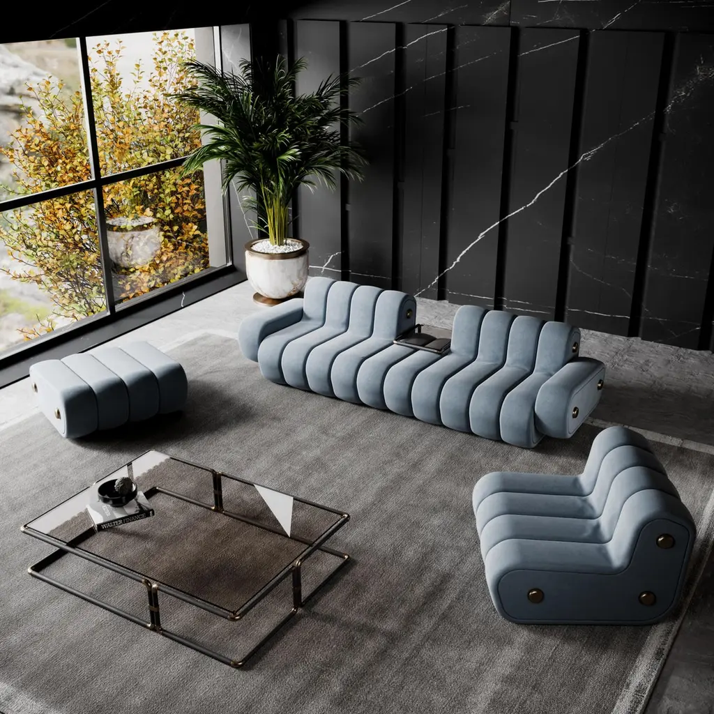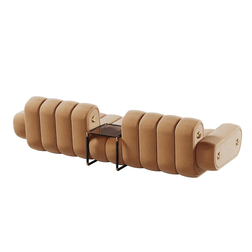 Often known as the "Land of Stone and Light", Badlands is part of the National Park of South Dakota. With a breathtaking view, its rugged beauty draws visitors from worldwide.Transforming sights into deluxe living protagonists, Porus studio designers conceived the Dakota sofa. The backrest and seat structure are made of several layers of foam covered in leather with a suede touch, providing a comfortable yet deluxe experience. The open space between the backrests that can be coordinated with the Dickson side table, it is one of the details that contribute to making this modern sofa unique and destined to redefine a cosmopolitan living space.