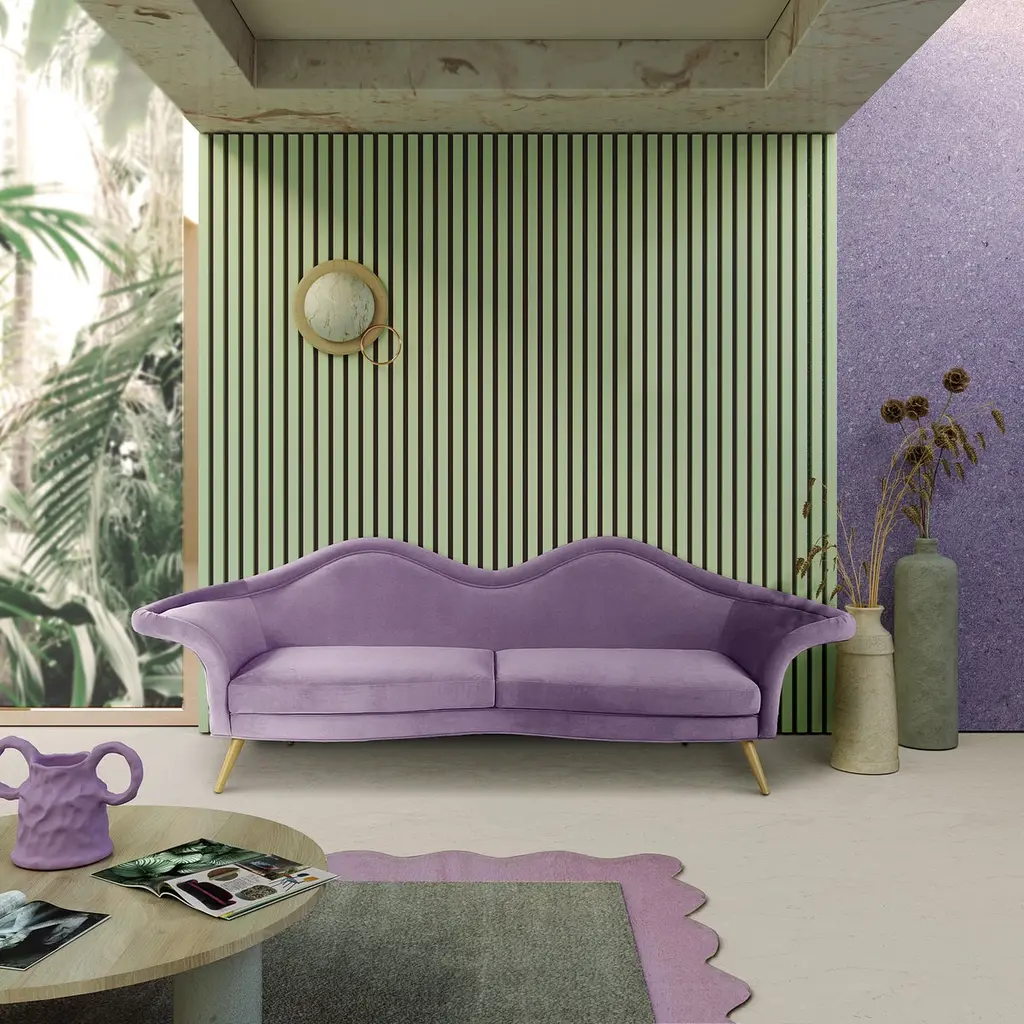 Jean Harlow was a 1930s Hollywood reigning sex symbol and the greatest unconventional actress who inspired our designers to create the Jeane luxurious sofa. It shows its passionate essence through its enchanting design lines upholstered in high-quality cotton velvet. Its seductive top rests on an extravagant yet elegant polished brass feet, turning the piece itself into a sexy and opulent contemporary option ideal for any modern living set.The Jeane sofa is part of the Century collection. Jeane sofa was designed by Ottiu and is part of the Century collection.