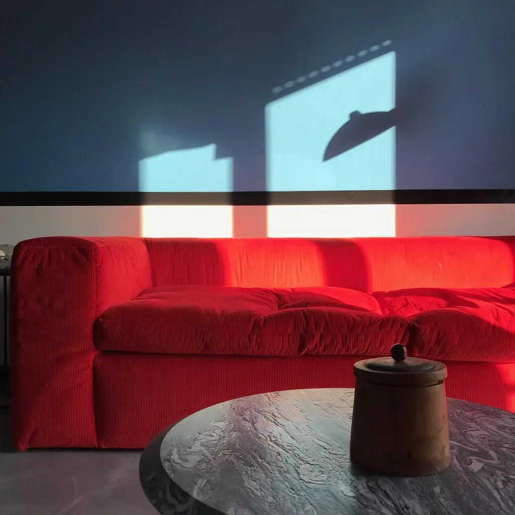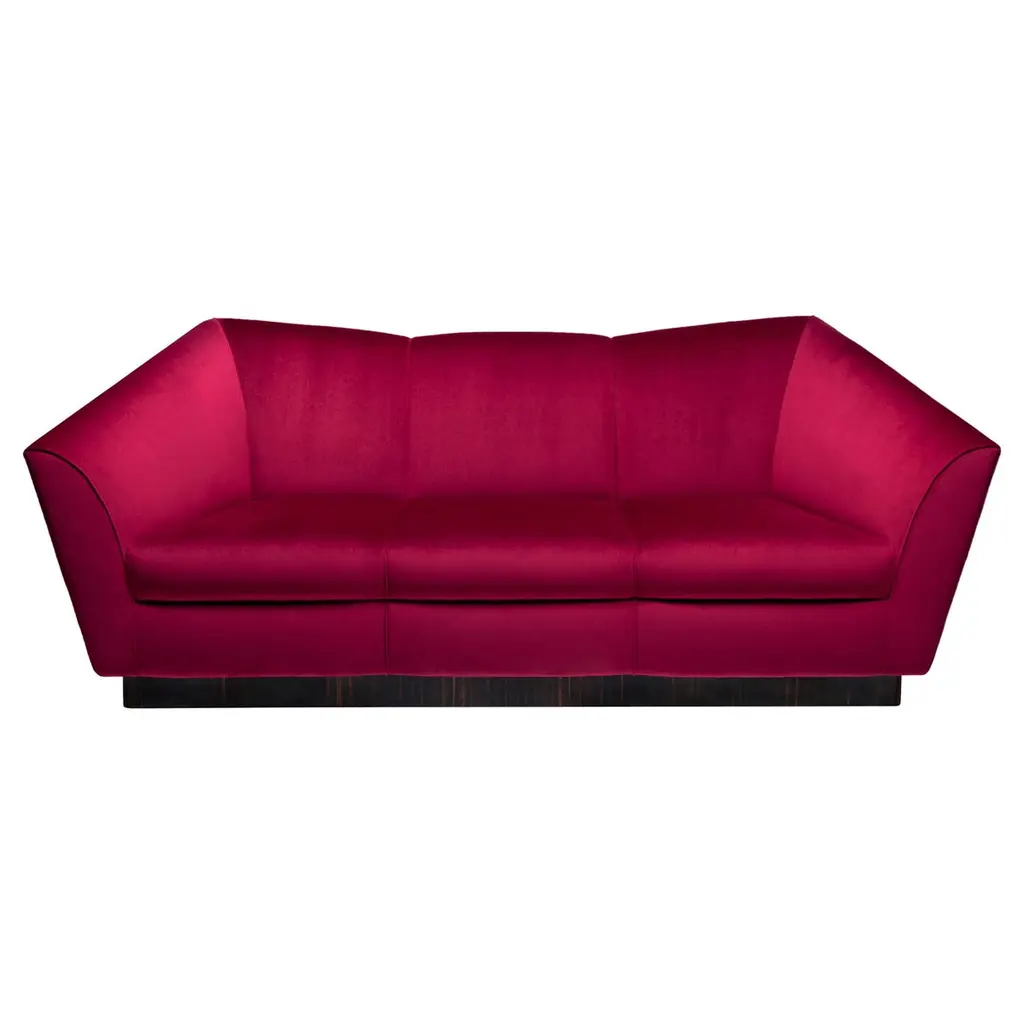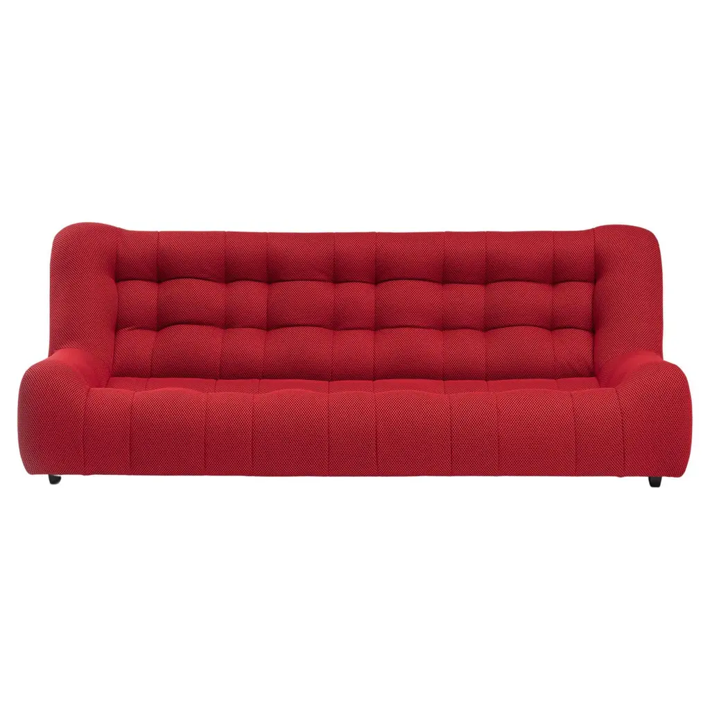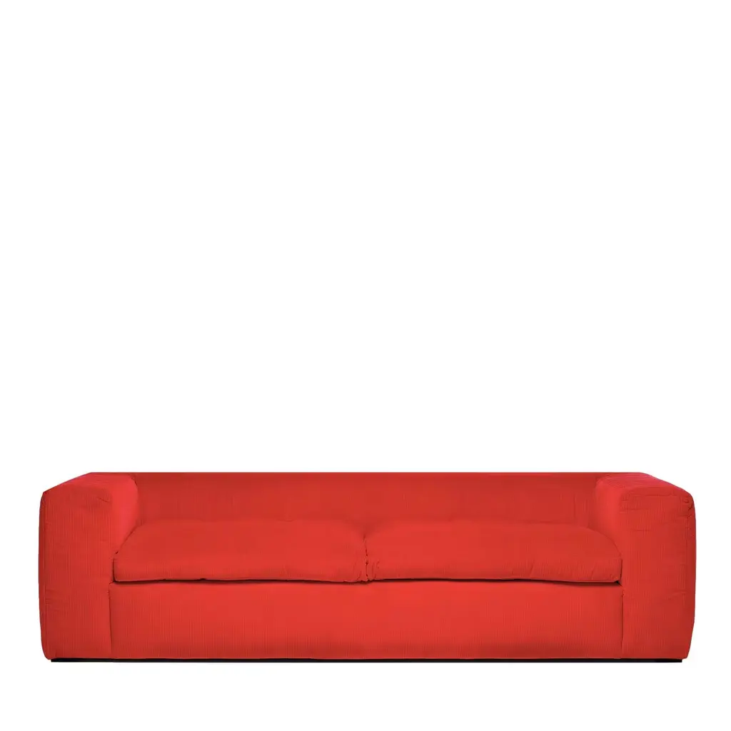 A simple and essential sofa that integrates a sophisticated comfort and a refined image through the careful study of proportions, filling materials and surface treatment. It is a mint product that combines the flair of something lived-in with the appeal of modern performance. The soft surfaces and extra flesh of a sofa that has lost its shameless turgidity are the sign of a lasting and mature elegance.Solid poplar, poplar plywood and birch plywood internal frame. Elastic support straps, polyurethane core, dacron lining, red corduroy cover, down-filled seat cushions. Other fabrics and customer fabric available. Other sizes available.