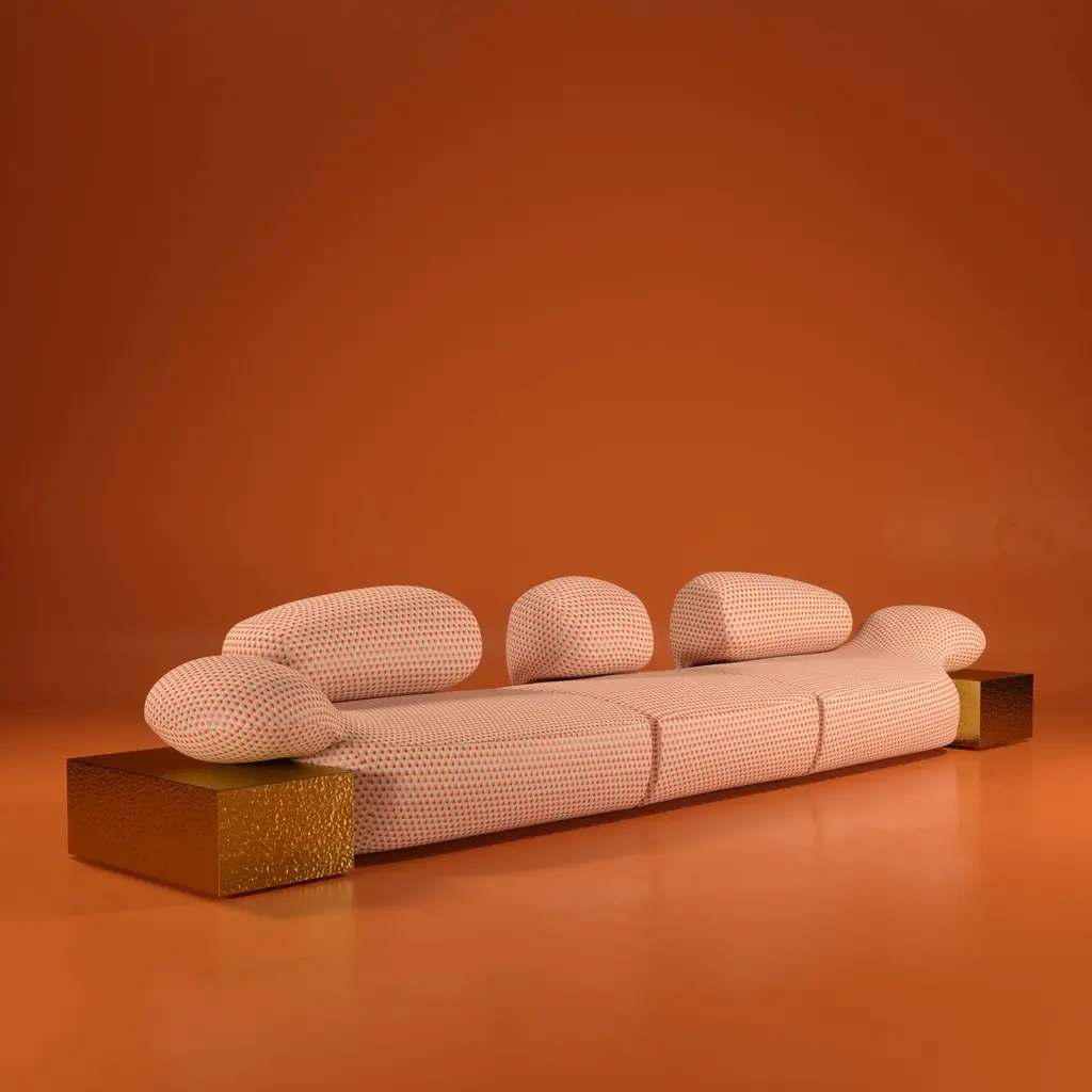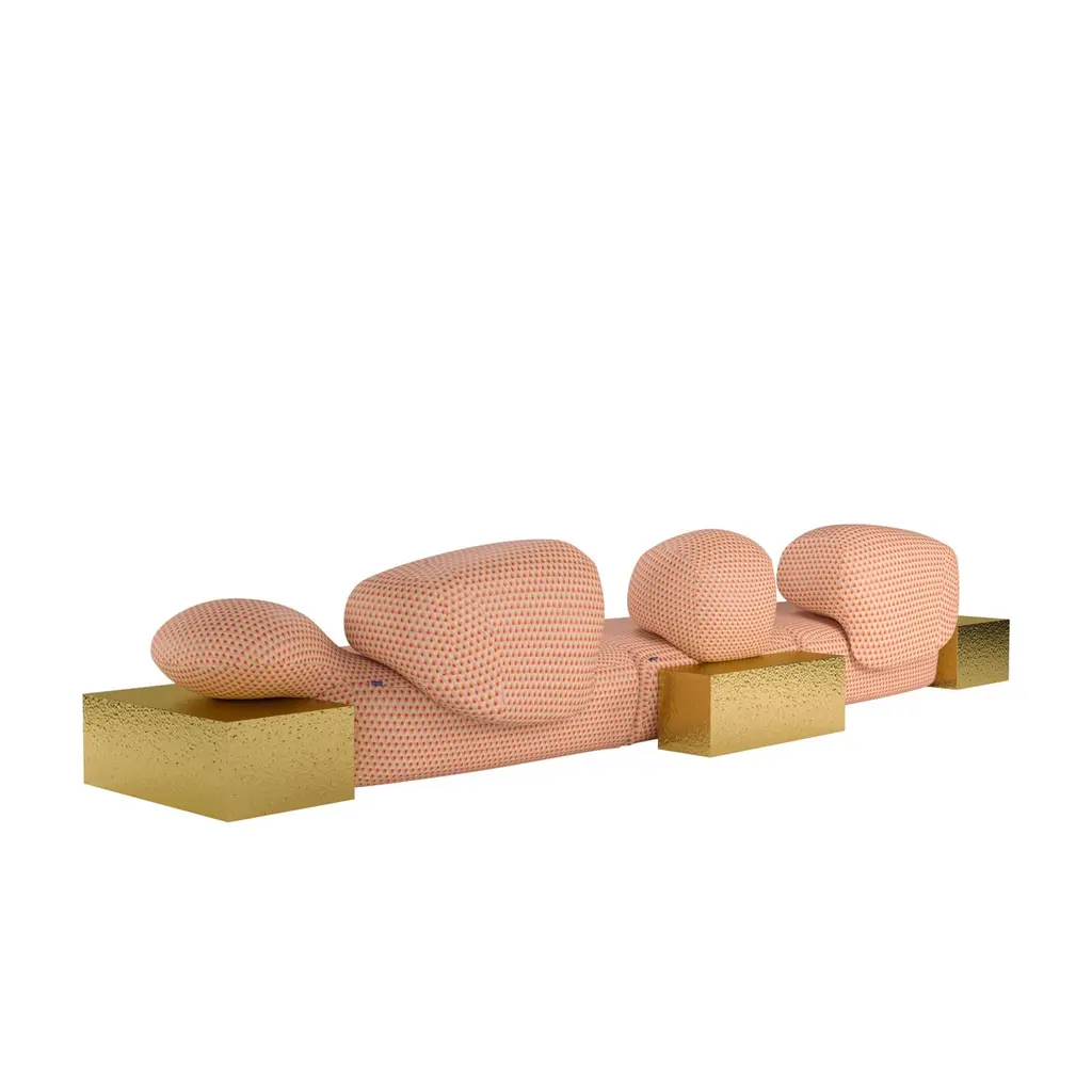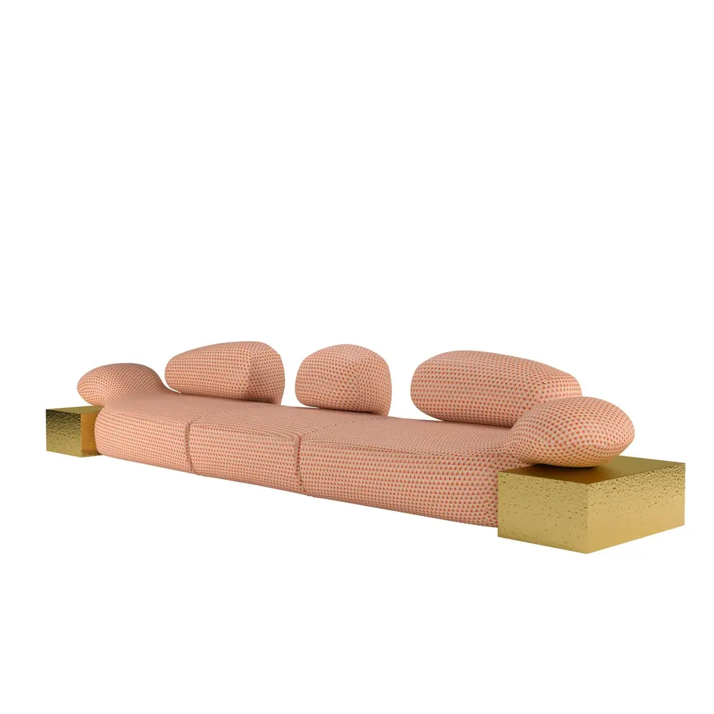 21st Viv Id Ii Sofa Metlted Hammered Brass Bouclé Made In Portugal By Malabar