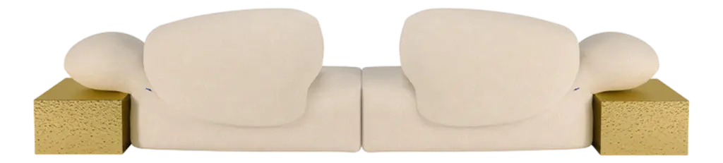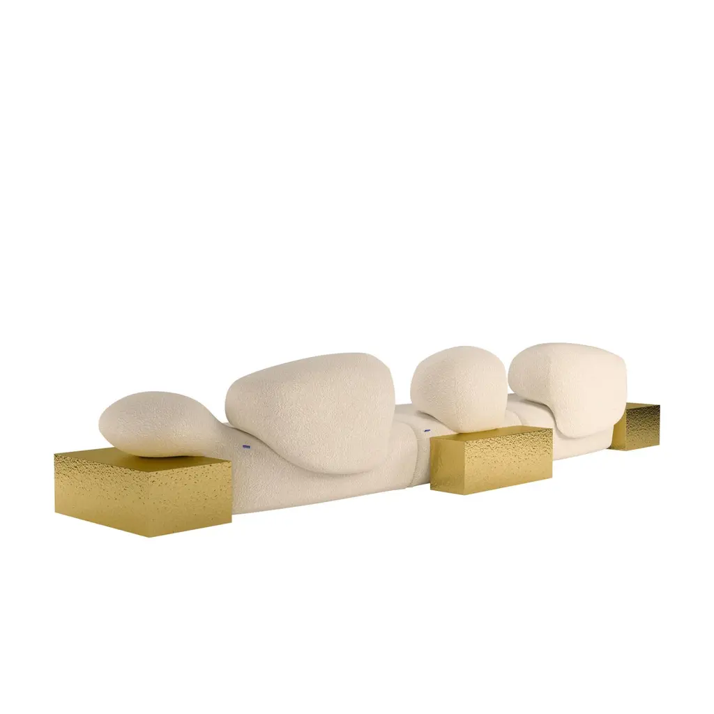 Against the minimalist design concept and characterized by a free use of color and shapes, the modernism movement sparks the impulse for Malabar designers to conceive this future classic sofa.Within this artistic-flavored space, the Viv Id II sofa becomes a canvas for artistic expression, transforming your living space into a curated gallery of breathtaking masterpieces. Dressed in bouclé, its melted gold brass structure gives the split-level aesthetic sense of deluxe while it can provide a functionality of a side table. This meticulously crafted three-seat sofa exudes a distinct aura of creativity, showcasing the harmonious marriage of form, function, and artistic ingenuity.
