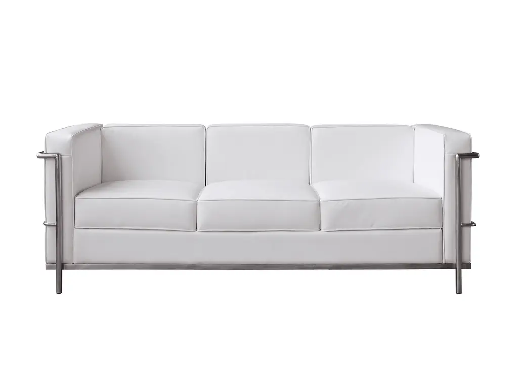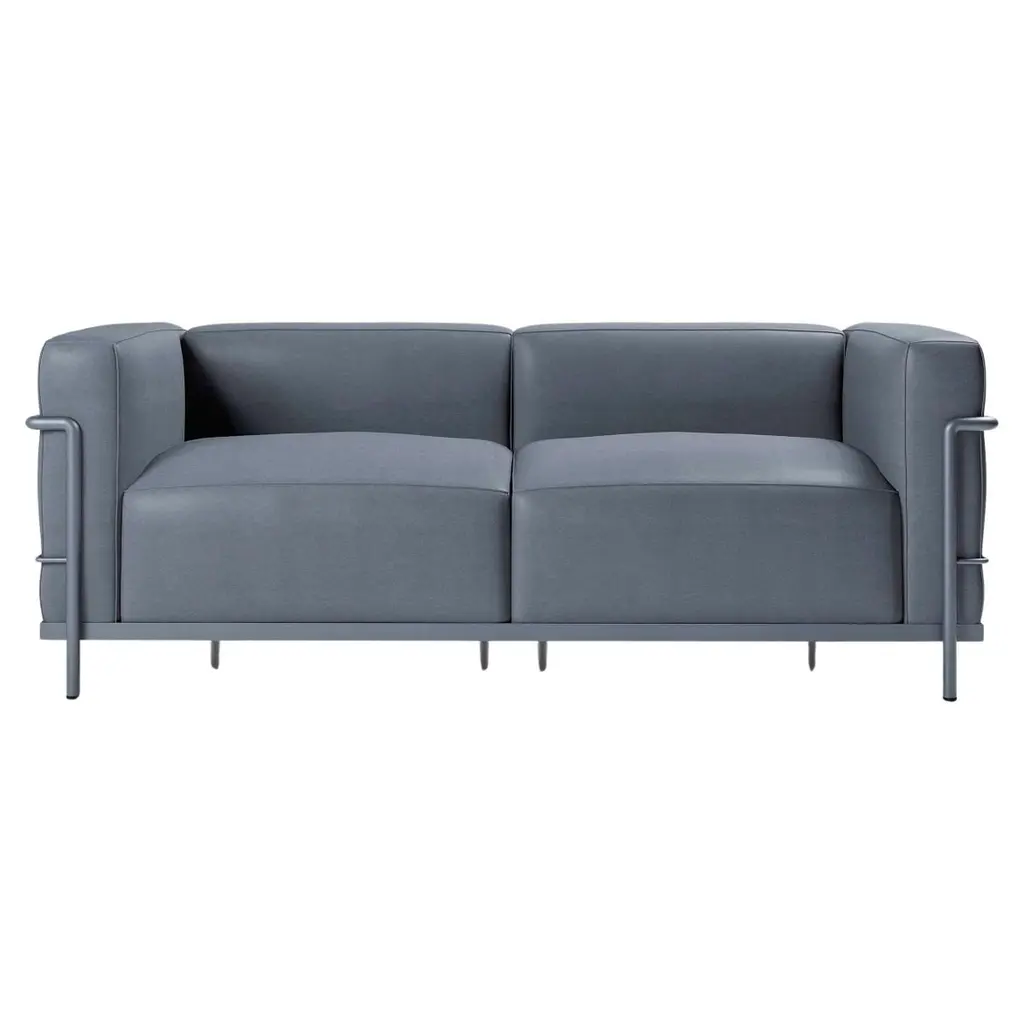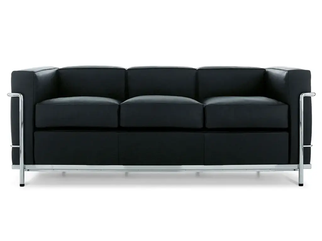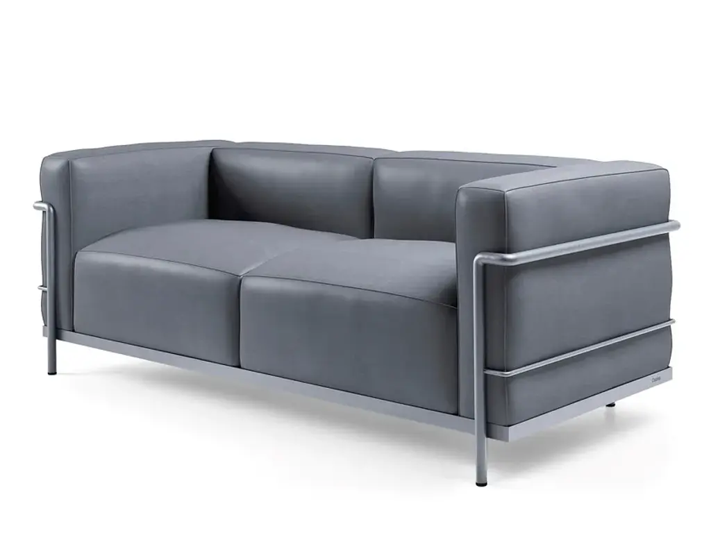In the various models of Fauteuil Grand Confort, grand modèle, the concept of modernity is expressed through the separation between the metal support frame and the upholstered elements. The loose cushions are set inside a painted or chrome-plated tubular steel cage that forms the primary support for the piece in all its variations ‒ from the armchair with armrest on one or both sides, to the two- and three-seat sofas. Over the years, Cassina has worked very closely with Charlotte Perriand, her daughter Pernette and the Fondation Le Corbusier to introduce new versions and finishes that, while reinterpreting the original design, remain entirely faithful to its authenticity. These models are also available in version with a conscious soul. Thanks to the work carried out by Cassina LAB (the project born from the collaboration with POLI.design at the Milan Polytechnic), the cushions are made with padding in blown polyester fibre.Durable version, frame:Frame in tubular steel: Polished chrome, or painted finish in the colours shown on the price list.Cushion padding: Blown 100% recycled polyester fibre.Upholstery: Fabric or leather.Seat frame: In steel angle bar with elastic webbing, chrome-plated or painted in the colours shown on the price list.Feet: In plastic with black finish.Cassina designs complete, comfortable and inviting living spaces where the most innovative products of contemporary design coexist alongside icons by the great masters of the Modern Movement.