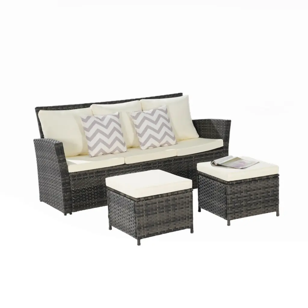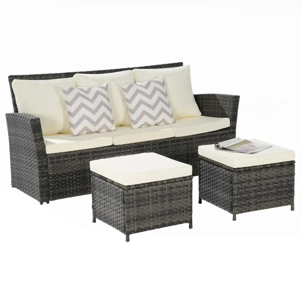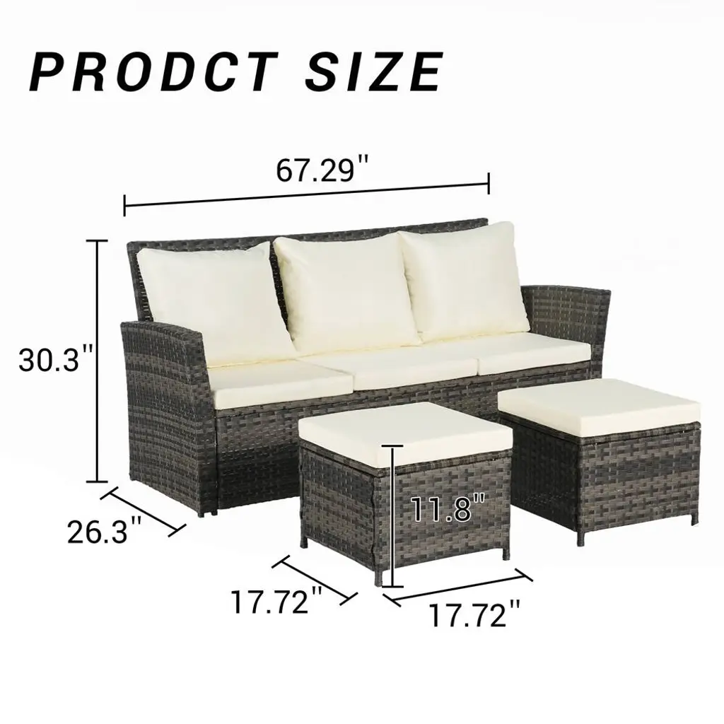 3 Piece Wicker Sofa Rattan Patio Conversation Sets - Beige
