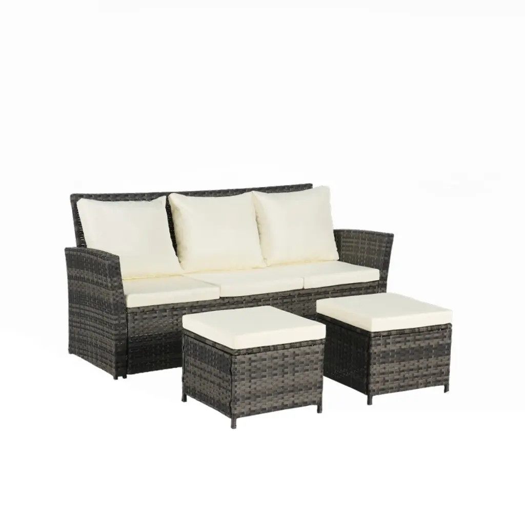 Product Features Either combine or separate this outdoor furniture in different configurations to suit your gathering needs or fit your patio, backyard, balcony, and other outdoor settings. The seat cushion is very large and wide with smooth zipper is machine washable so that you can zip it off and start a quick wash to have them looking brand new. Strong composite weaving with all-weather wicker material handwoven over fully-welded powder-coated steel framing makes outdoor patio furniture very durable and sturdy. Breathable polyester Anti-UV and water-repellent fabric are the complete performance standard, with long-lasting comfort, color retention, cleanability; fearless dust, rain, and sun, superbly ensure to last a long time.