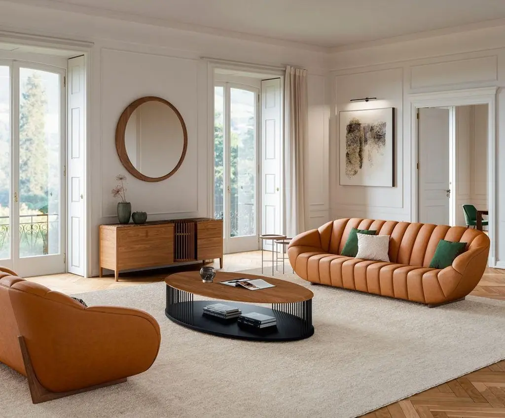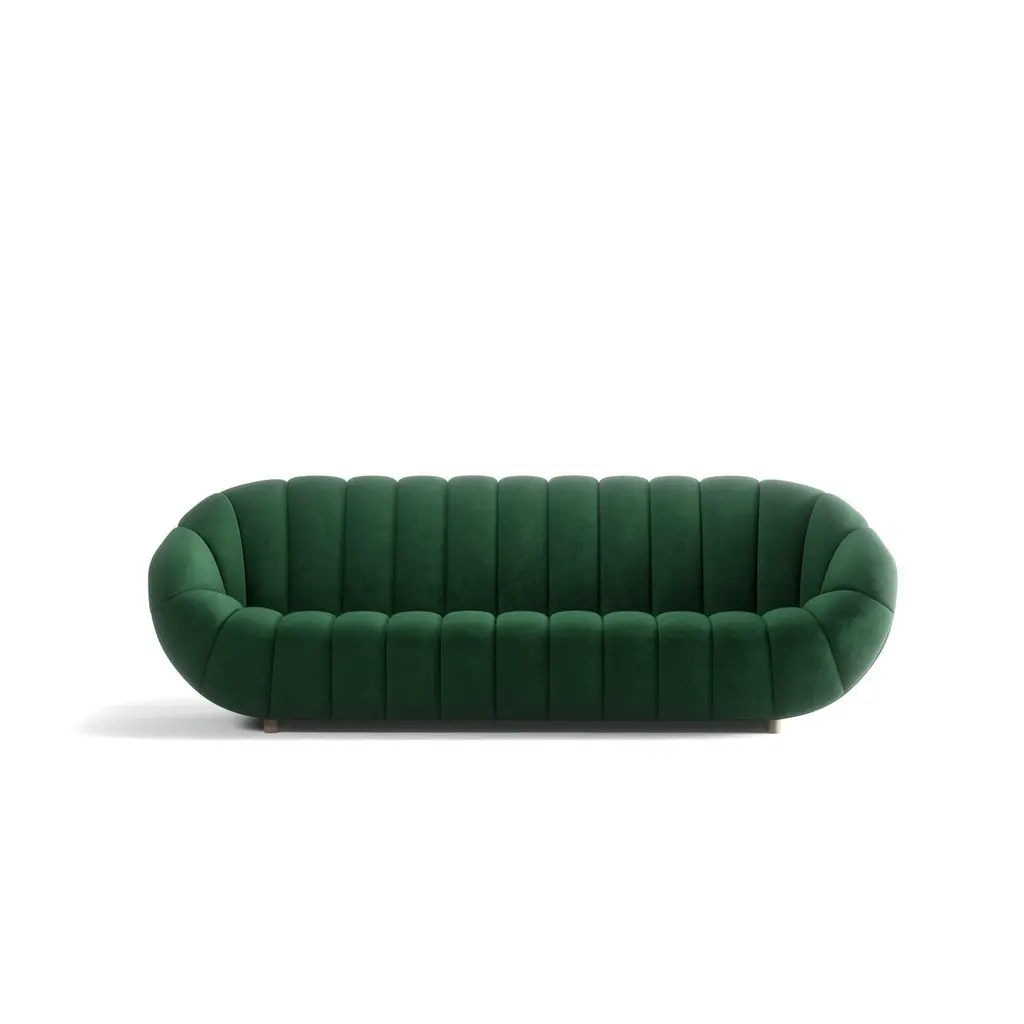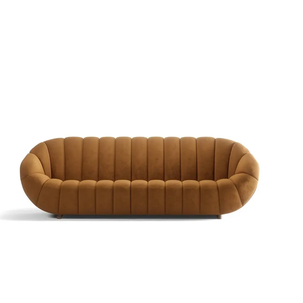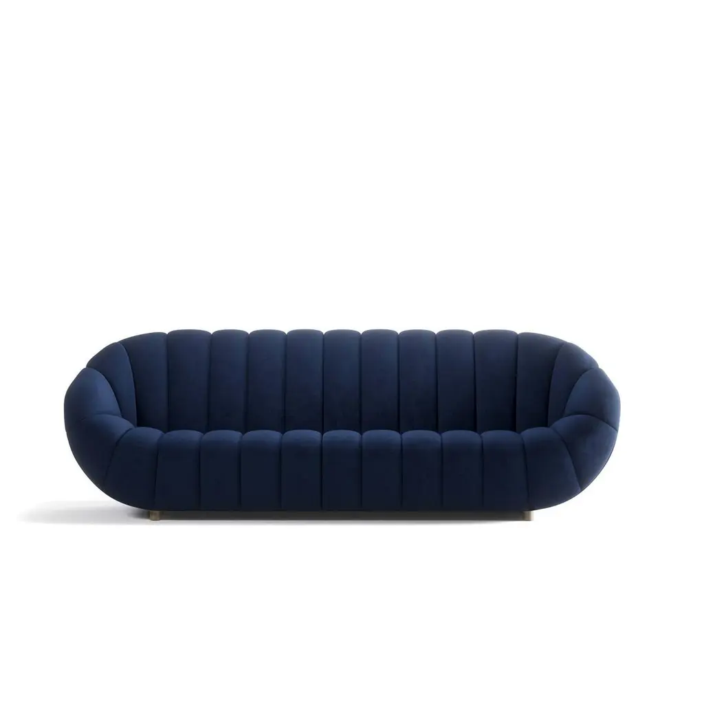 The 3-seater sofa offers the perfect reception for your guests, whether it's in the heart of your home or within the dedicated space for clients and collaborators in your business. Its design, inspired by the traditional boats of Porto, known as Rabelos, which were vital for transporting the renowned local wine along the Douro river, evokes a sense of heritage and craftsmanship. With its distinctive lines and meticulous handcrafted details, this sofa complements open spaces effortlessly, inviting exploration from every angle. Supported by two sturdy natural walnut feet that seamlessly connect the front and back, it exudes elegance and comfort. The upholstery, designed for optimal relaxation, ensures hours of comfortable seating.Contact us to enquire about COM/COL production, requirements and material shipping instructions.Please contact us if you have any questions about customization and pricing. We will be glad to check with the factory’s technical team if sizes, finishes, and colors can be customized. We do our best to expedite production and to ship and deliver product within the listed lead time, however current lead times might be longer due to global shipping backlog and delays. These delays are out of our control and cannot be a reason to cancel an order.