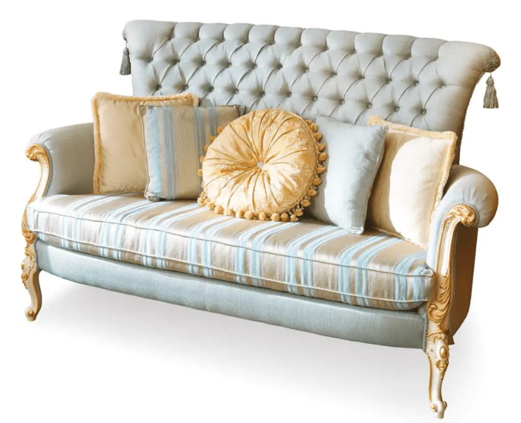 The Classic Beige Italian Sofa from Luna Collection by Carlo Asnaghi features a stunning 3-seater sofa that combines classic Italian design with modern style.The sofa’s design is characterized by clean lines, sleek shapes, and luxurious materials, resulting in a sophisticated and elegant piece of furniture.The Classic Beige Italian Sofa features a sturdy and durable solid wood frame that is available in a range of finishes, including glossy or matte lacquer, gold or silver leaf, and a variety of wood stains, allowing for customization to suit any interior design scheme.The sofa’s seat and backrest are expertly upholstered in a plush and comfortable fabric or leather, which is carefully tailored and stitched to create a seamless, cohesive look.The Luna 3-seater sofa’s design features a slightly curved backrest and armrests, offering ample support and comfort for the back and arms.The seat cushions are deep and plush, providing a comfortable seating experience for lounging or entertaining. The sofa’s legs are elegantly tapered and finished with a metallic or wood detail, adding a touch of refinement and sophistication.The Luna collection sofa’s design is inspired by classic Italian style, with a focus on traditional craftsmanship and attention to detail.The result is a beautiful and timeless piece of furniture that will elevate the style of any room it is placed in, from a classic living room to a modern sitting area. Whether used as a standalone piece or paired with other Luna Collection items, this 3-seater sofa is sure to make a statement and become a focal point in any space.Shop All Carlo Asnaghi Italian Furniture by Catalog