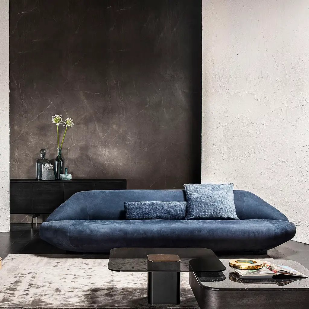 370 Bolid Luxury Nabuk Blue Leather Sofa By Gianluigi Landoni