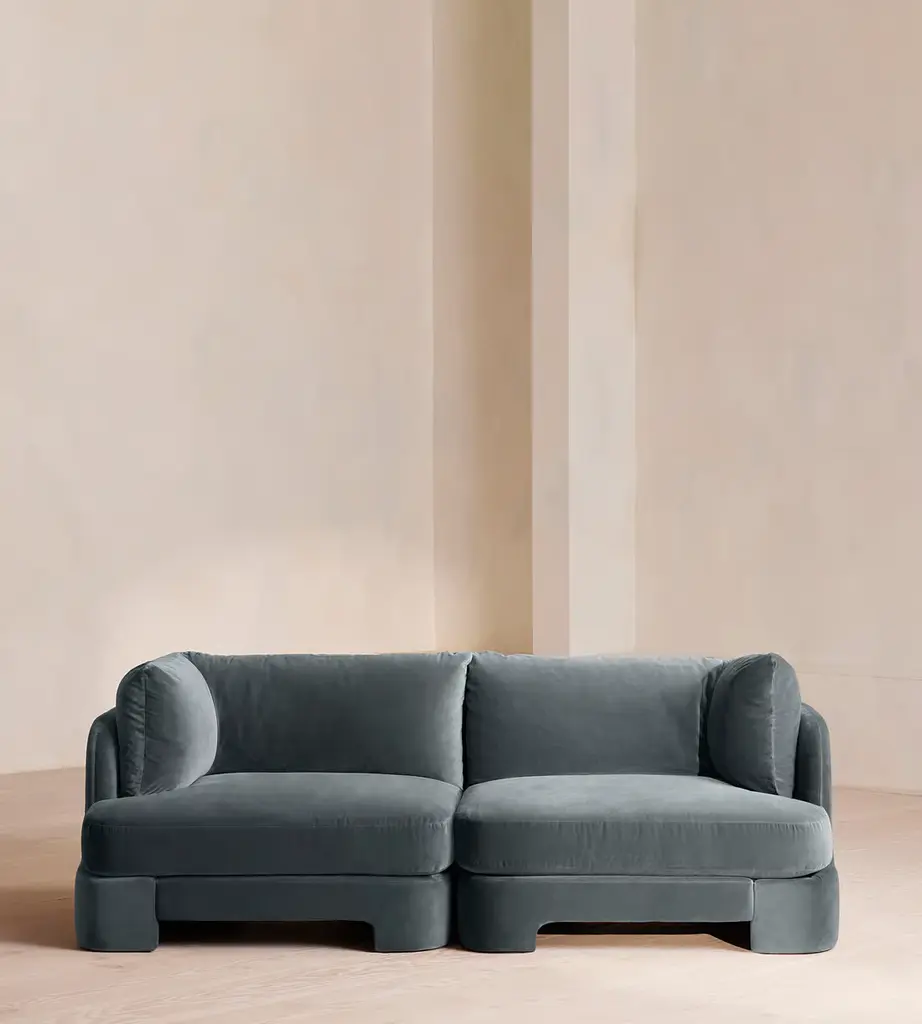 Boasting a sculpted shape fully enveloped by velvety, blue fabric, this sofa is a spot-on solution to complement contemporary coastal homes. The lines of the 42cm-high seat stand in impeccable harmony with the backrest that also incorporates the sloping armrests, for a seamless profile of great elegance. Richly padded, the design comes in a variety of upholsteries and is also available in a larger size. Loose cushions (130x25 and 65x65 cm) are also available upon request to the Concierge.