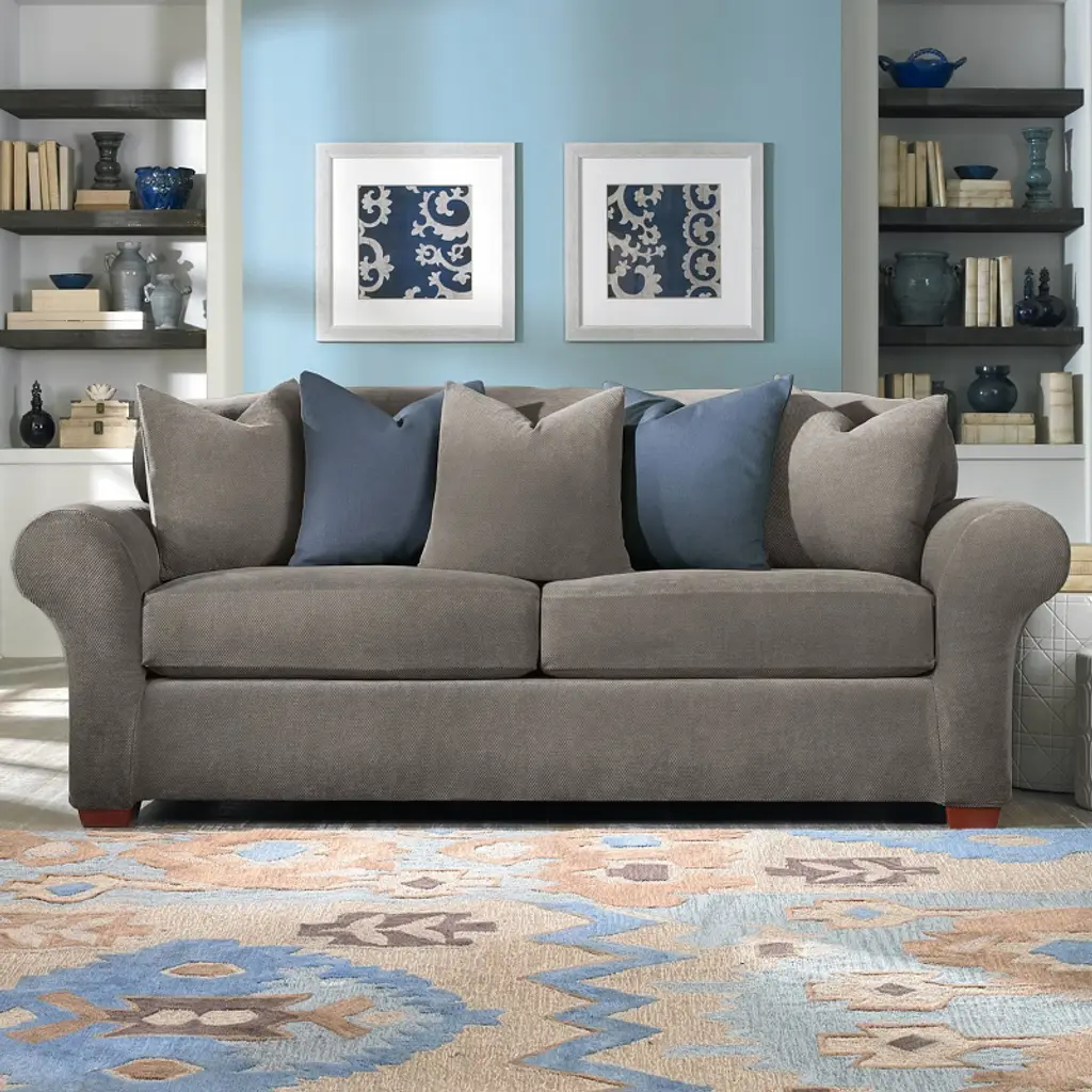 3Pc Stretch Pique Sofa Slipcovers Flannel Gray - Sure Fit: Furniture Protector, Indoor Elastic Fit