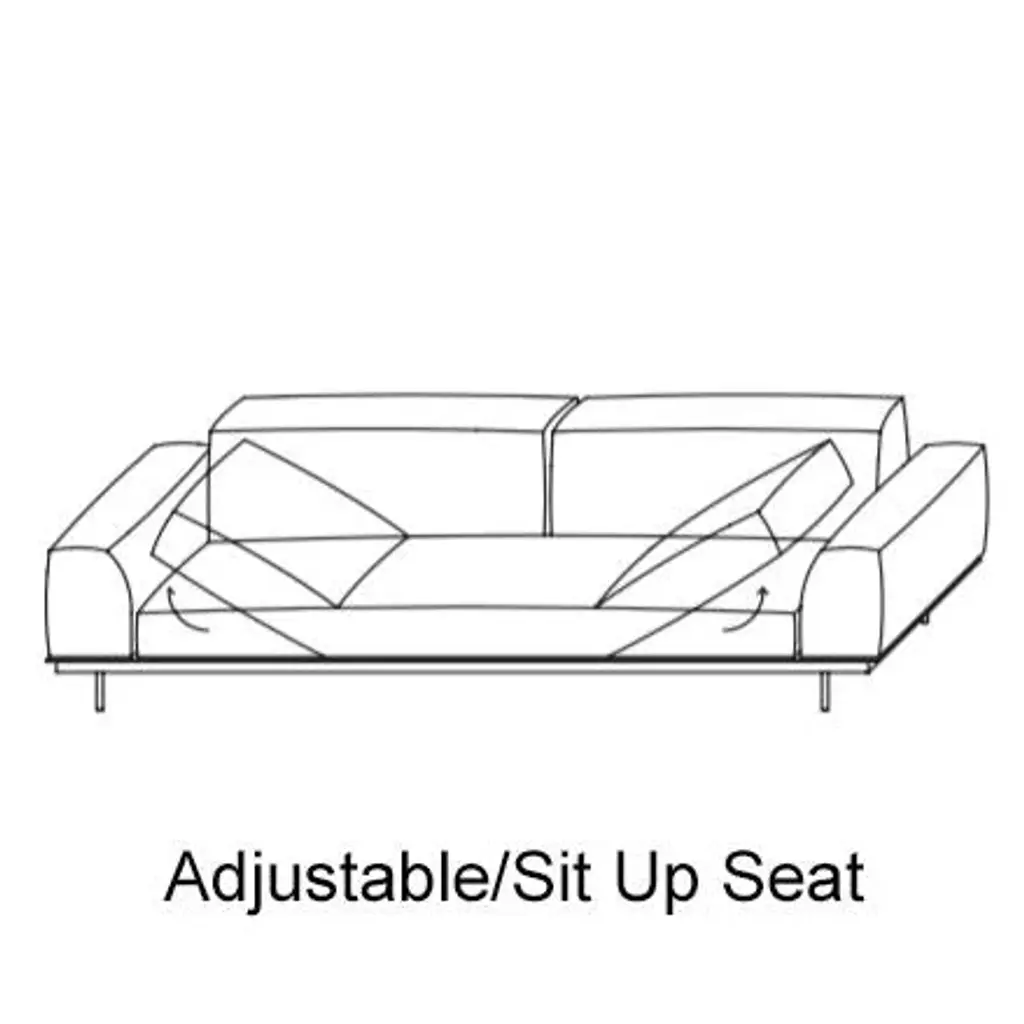 535 Sit Up is a modular custom sofa, available with completely removable covers in cotton, linen, leather or with custom covers. The sofa is manufactured with a metal and wood plastic composite structure and has been designed with the utmost attention to style, fineness, quality and care for details that are typical of Interior Design Made in Italy. All Vibieffe products are highly configurable. For this reason, not all product models, sizes, and available fabrics are displayed on our website. Please contact us for a complete list of product options. Please note: A fixed seat does not sit up. The adjustable/sit up seat can be adjusted to 5 different positions. See images on left for more information. For detailed product information, please click here.