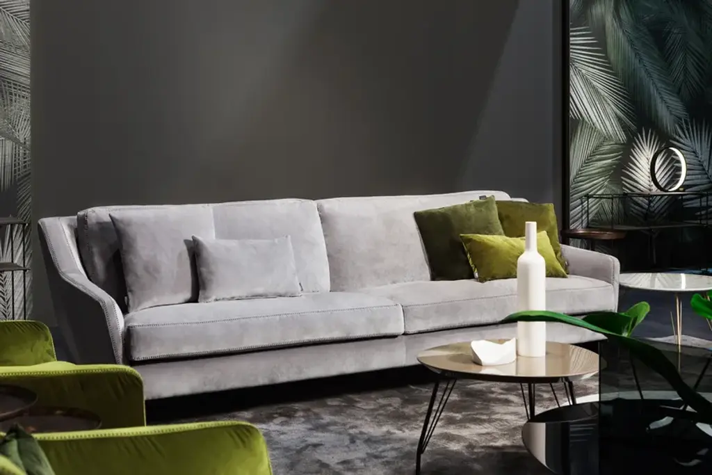 575 Hi_Story is an Italian design sofa that comes in different sizes with matching armchair, available in cotton, linen, leather or custom covers.A special feature of 575 Hi_Story is the custom stitching, which can be made in different ways and different contrasts.It brings back the feel of 1950s' style into your home and nourishes the emotions in your home with the typical cozy design made in Italy.Technical featuresFrame: solid fir-wood and poplar multilayer and composite woodsSpringing: high resistance unidirectional elastic bandsPadding: high density polyurethane foam covered with heated bonded polyester fibreSeat cushions: core in polyurethane foam covered with a feather layer in separate sectionsBack cushions: core in polyurethane foam covered with a feather layer in separate sectionsBase: solid ash umbra grey dyedCover: non removable fabric o leather cover.Finishing: blanket stitching off white or dark greyAll combinations are available on request to the Customer Service.