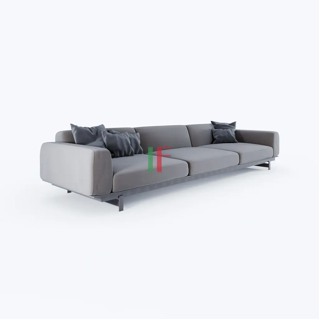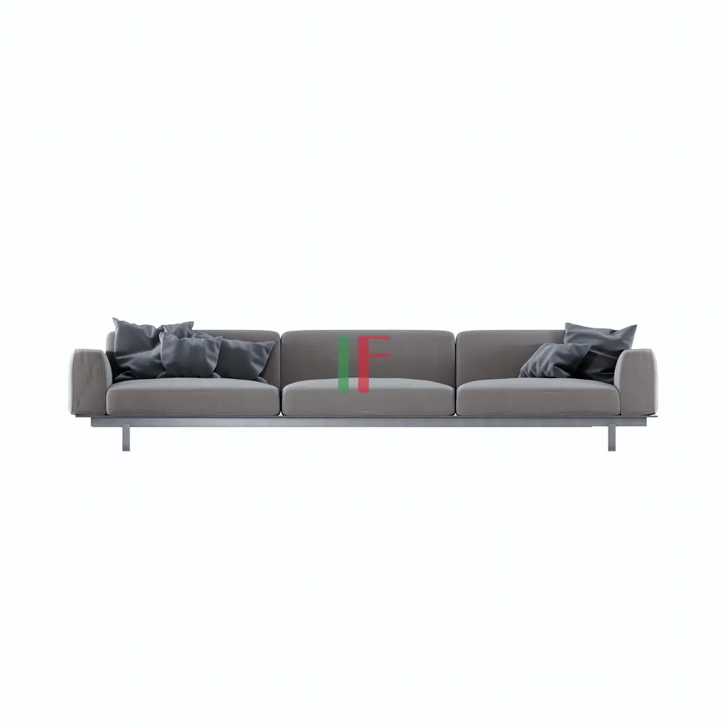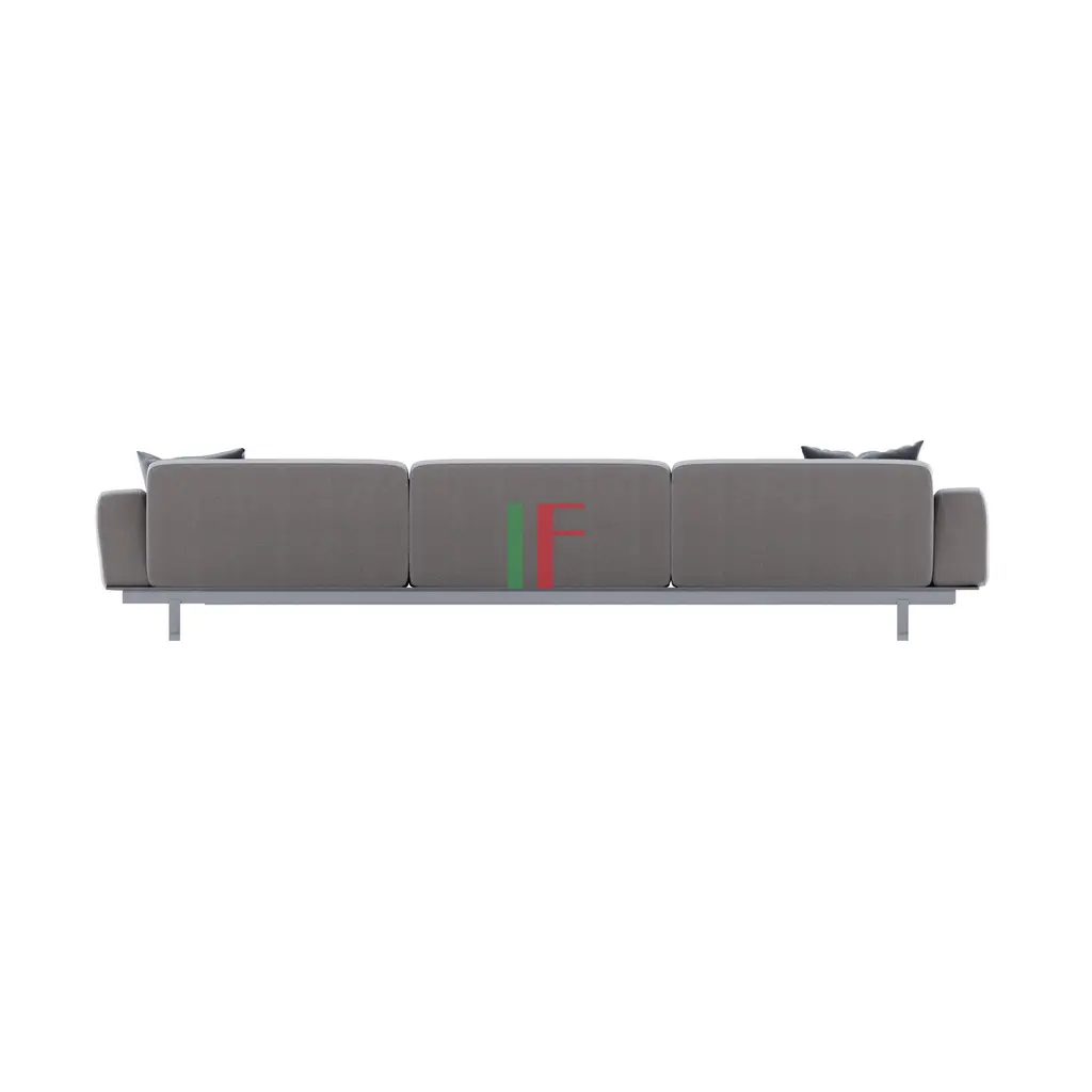 The 60s Industrial Three Seater Sofa by Lema Yard concept as a furniture system comes to life in this design by Francesco Rota, who combines modular upholstered elements with Lema's trademark containers. The collection - which reinterprets some of the creative styles typical of the industrial design of the 1960s - is the product of a desire to find common ground with the world of systems: the upholstered sections integrate with surfaces, shelves, side tables and containers which come together in different combinations to creation unique multifunctional compositions. The structure, made from fabric-covered metal, is a flat surface resting on feet secured with triangular cross-section joints. This, in turn, provides the base for the cushions and armrests, which simply rest on top of the structure without concealing it, thus celebrating the material contrast at the heart of this piece. The structure also provides support for the shelves and containers.