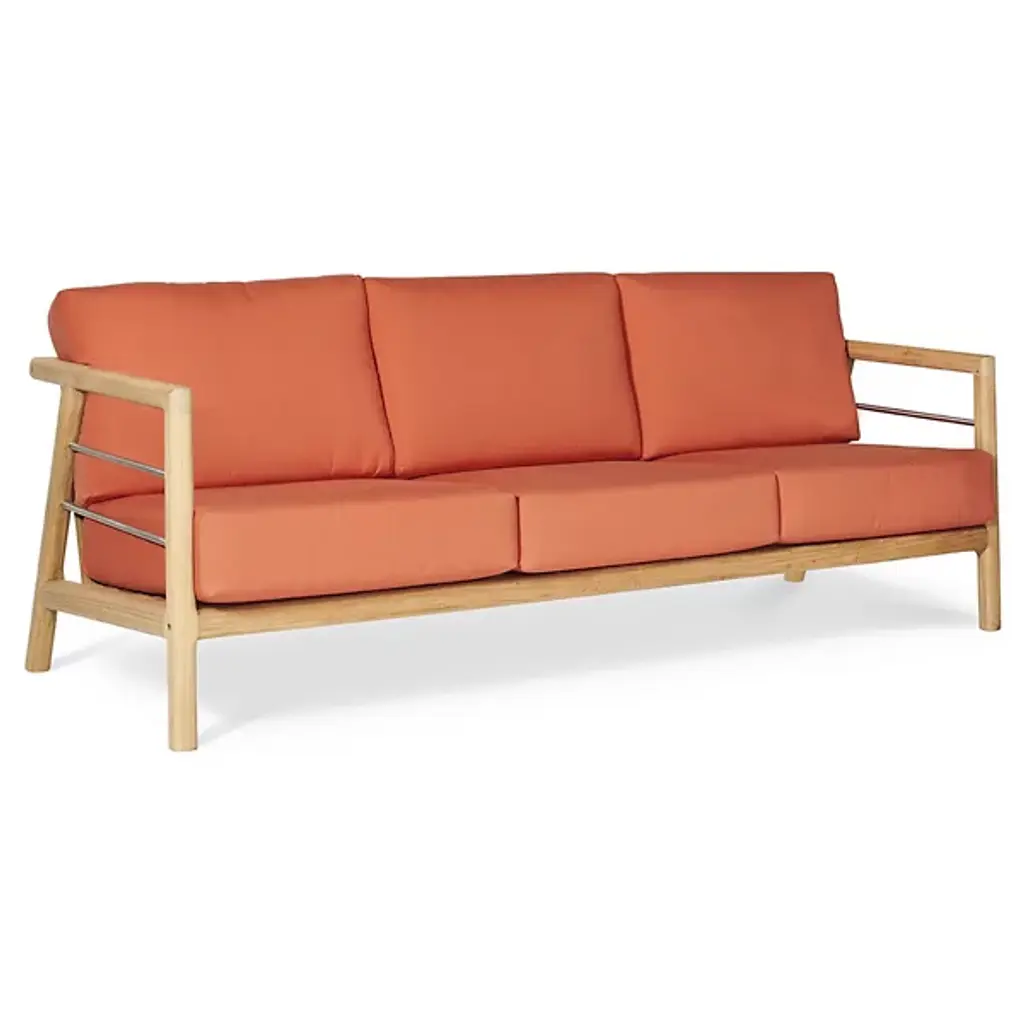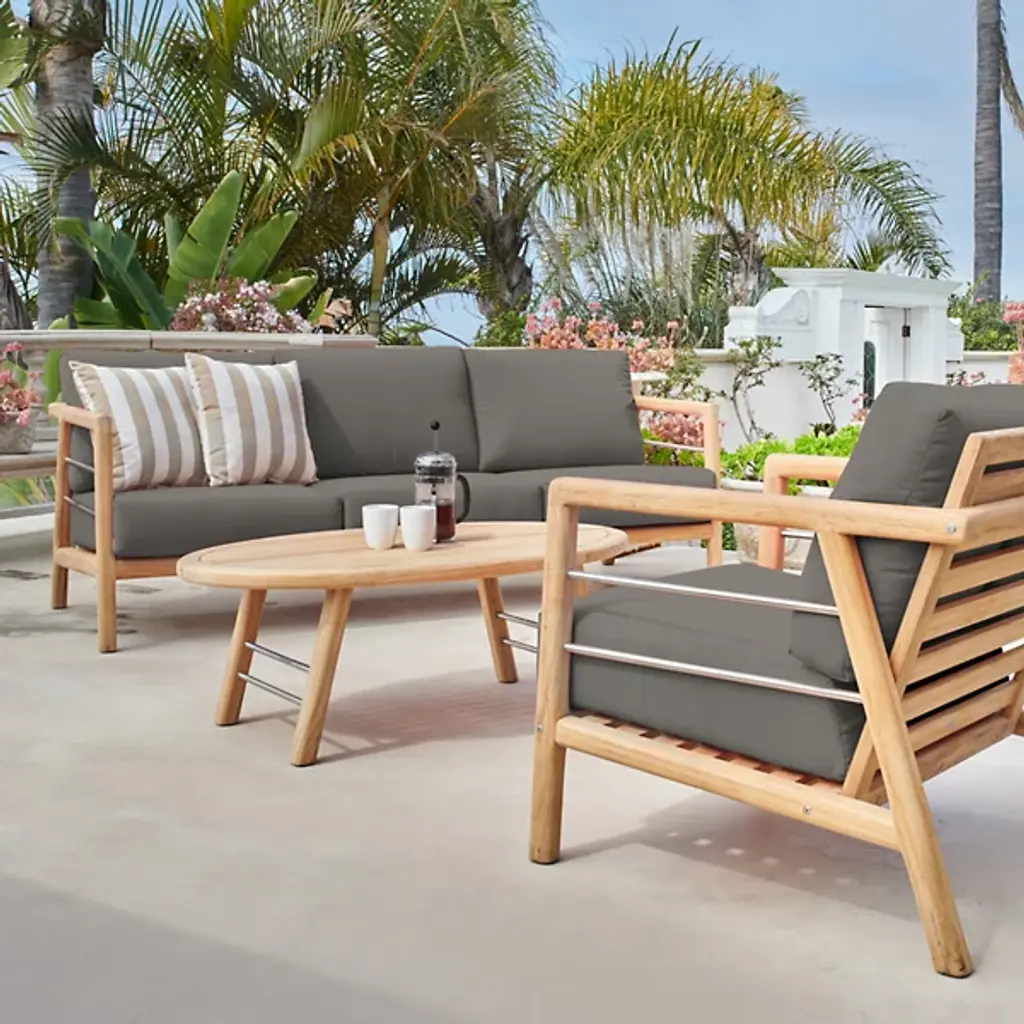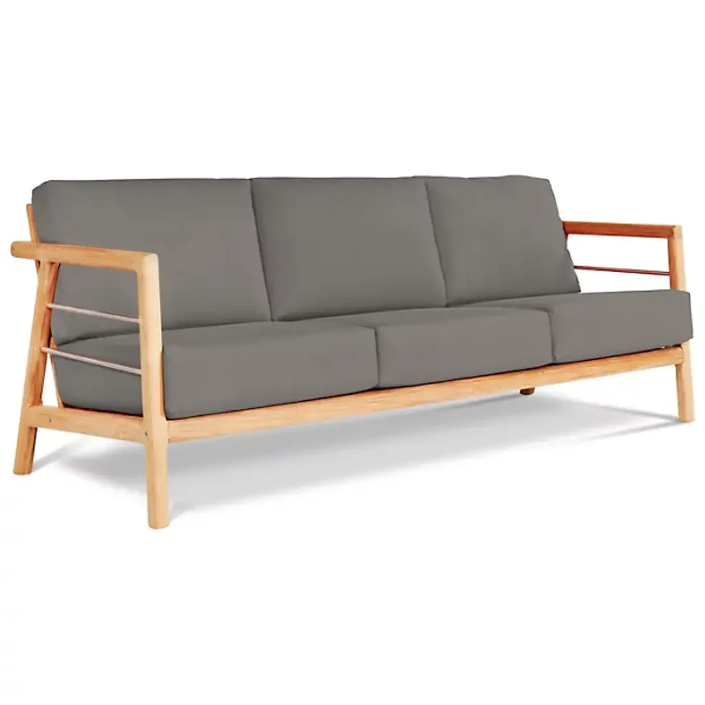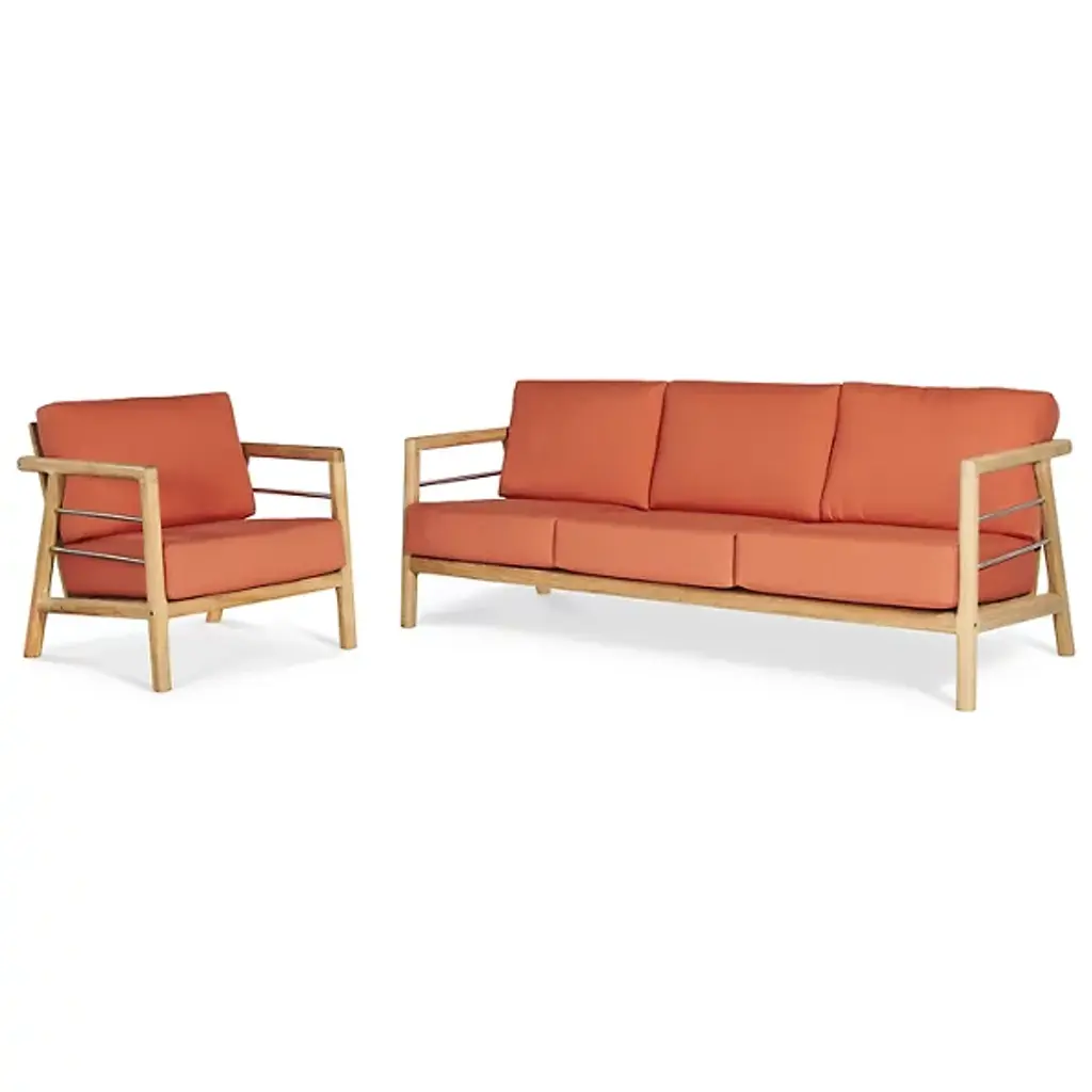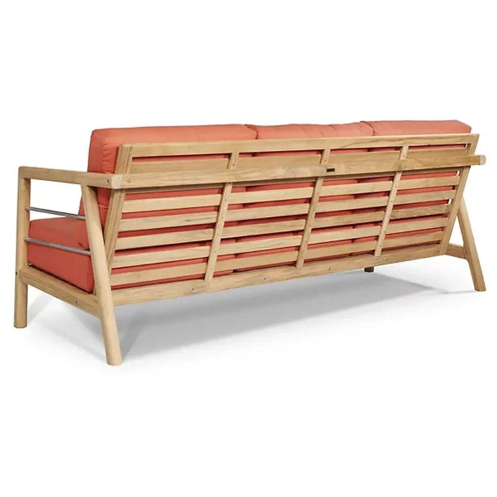 The Aalto Deep Seating Outdoor Sofa with Sunbrella from HiTeak Furniture heightens the open-air experience with lounging for 1 or a few on its robust mid-century inspired design. The sofa’s sharp silhouette and contrasting materials add a refreshing visual to the modern or contemporary space. Interspersed with steel rod accents, the teak wood framework leans one back using a slatted design. The teak’s density and natural oils make it a durable standout. A pair of elegant armrests frame the deep setup of cushions inside. The cushion’s sunbrella fabric maintains the same color and textured quality after long bright days.