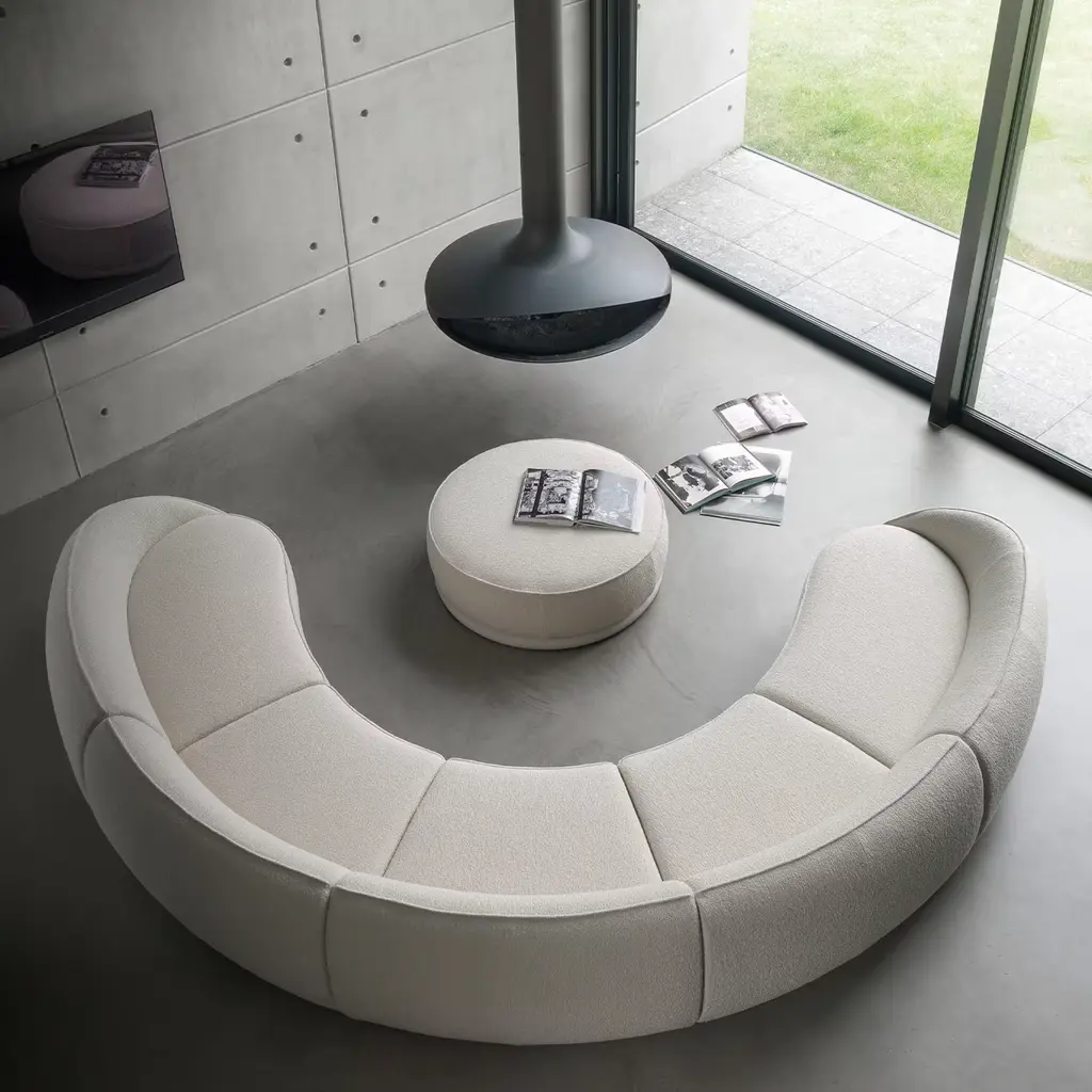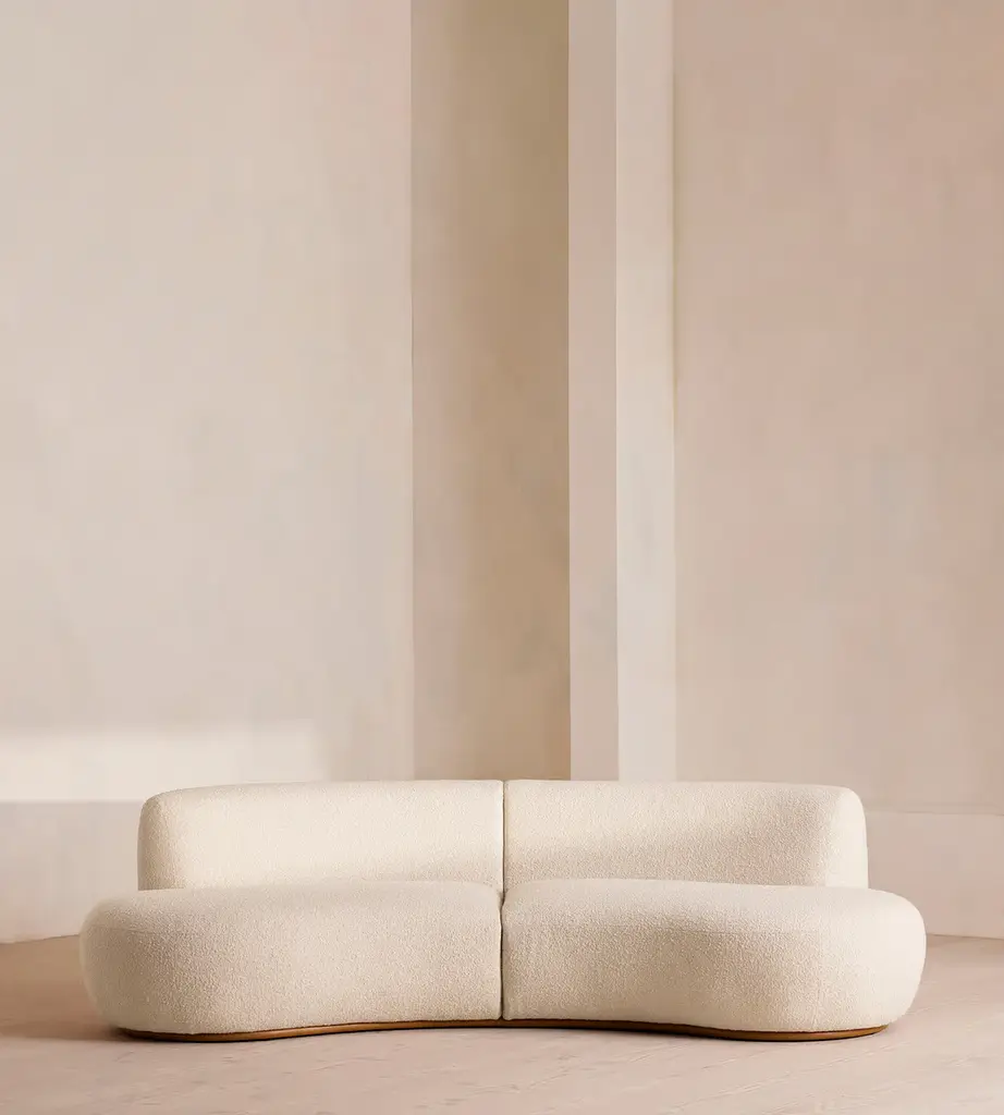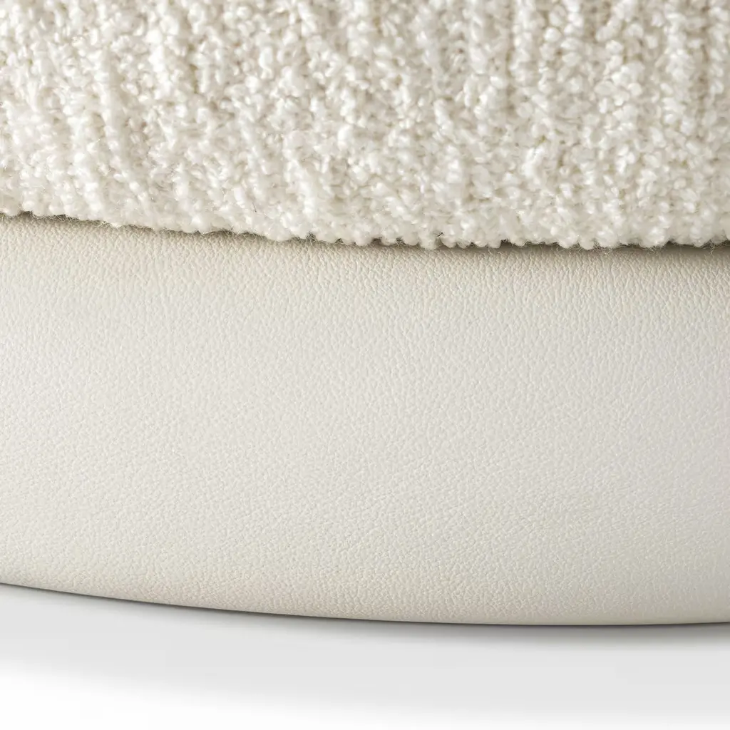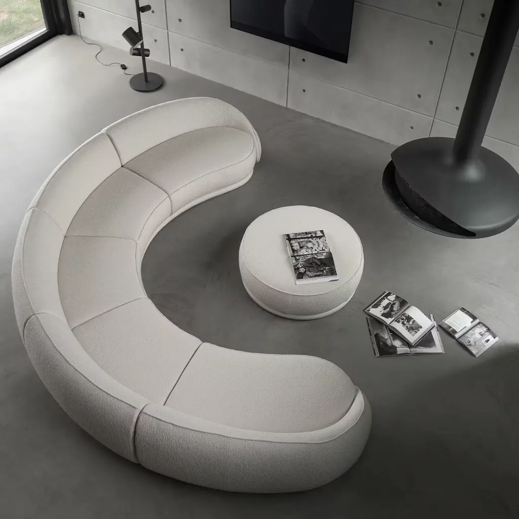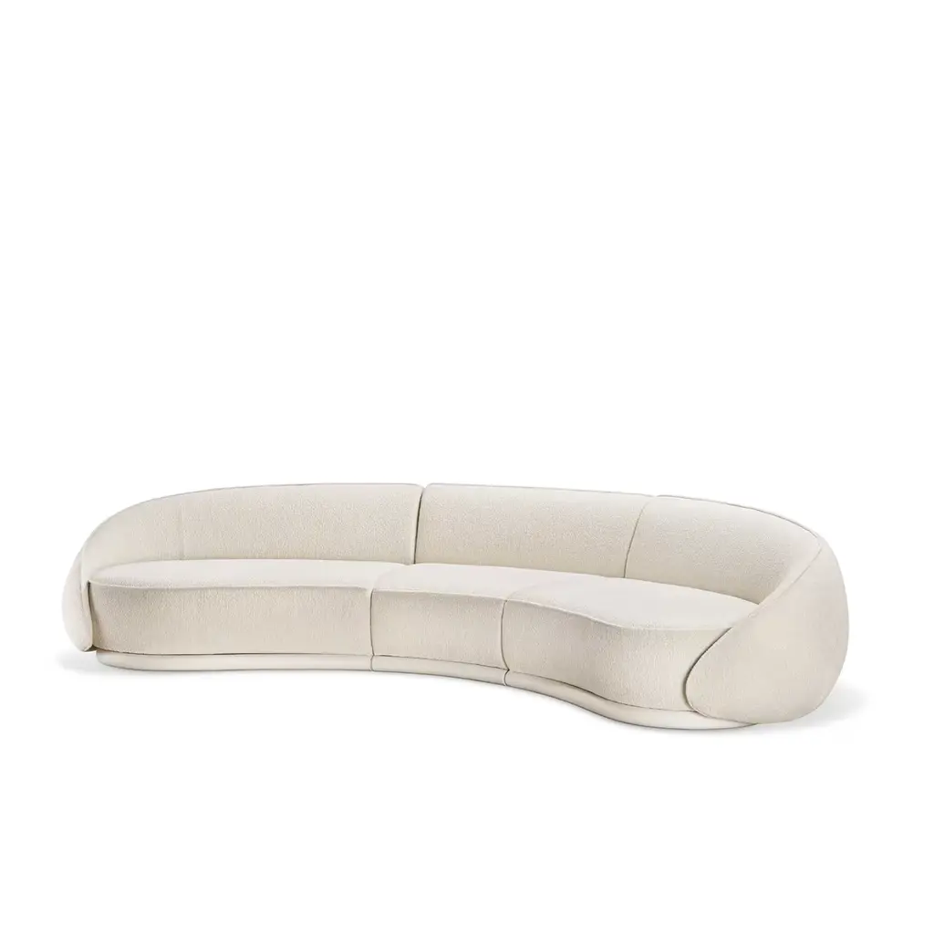 Designer Lorenza Bozzoli conceived this sofa with ethereal elegance and tenderness in mind. Aptly named after the Italian meaning "hugs, it seduces with its embracing design upholstered in bright white Clunis fabric and gently sloping profile. Every detail is inviting, telling the story of a design for cuddling up with a blanket or relaxing in the company of guests. For the US market, please contact the Concierge for CAL TB 117 certified fabrics.