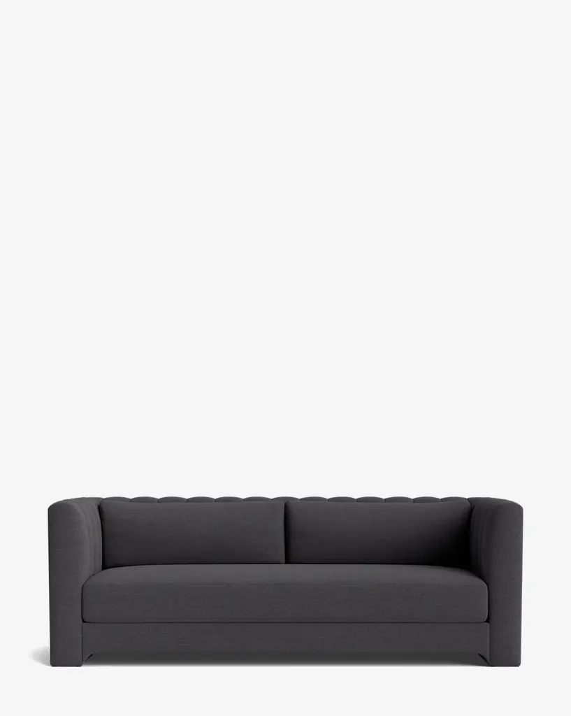 Taking inspiration from the Hollywood regency style, we designed our Agatha Sofa 90" with sophisticated lounging in mind. Its curved form and channel tufting display masterful craftsmanship, while its single seat cushion design invites simple styling. From the bench –made frame to the feather and down cushions, this sofa is the epitome of luxurious comfort. Customizable in a wide array of fabrics, you can make this handcrafted sofa your own.