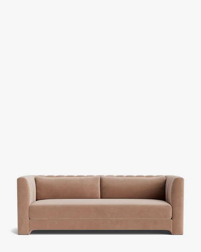Taking inspiration from the Hollywood regency style, we designed our Agatha Sofa 90" with sophisticated lounging in mind. Its curved form and channel tufting display masterful craftsmanship, while its single seat cushion design invites simple styling. From the bench –made frame to the feather and down cushions, this sofa is the epitome of luxurious comfort. Customizable in a wide array of fabrics, you can make this handcrafted sofa your own.