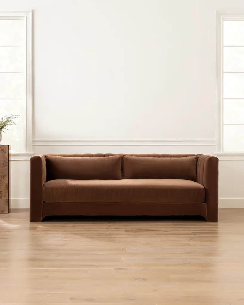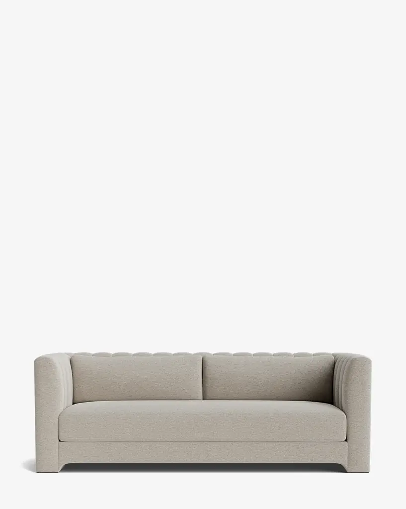 Taking inspiration from the Hollywood regency style, we designed our Agatha Sofa 90" with sophisticated lounging in mind. Its curved form and channel tufting display masterful craftsmanship, while its single seat cushion design invites simple styling. From the bench –made frame to the feather and down cushions, this sofa is the epitome of luxurious comfort. Customizable in a wide array of fabrics, you can make this handcrafted sofa your own.