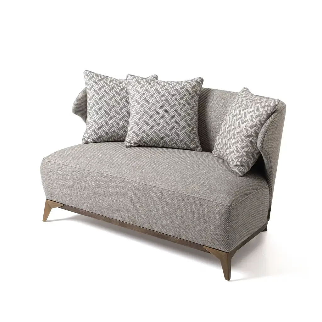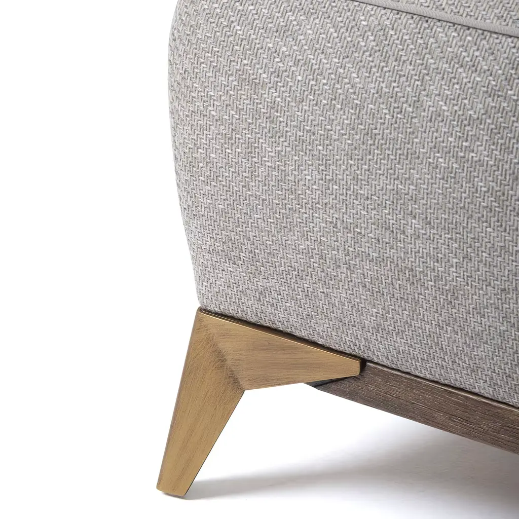 The Agostina sofa offers exceptional comfort with its spacious seat and youthful, dynamic lines. A timeless classic, this compact sofa is perfect for an entrance hall or narrow spaces. The base is made of patinated oak, and the front legs are in burnished brass. It pairs perfectly with the Agostina armchair to create a playful, timeless design. Decorative cushions not included.