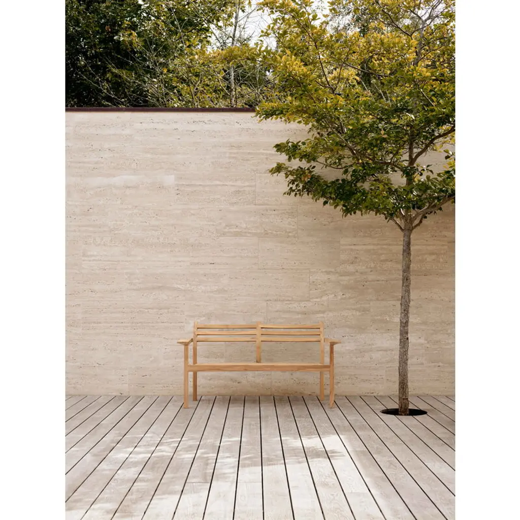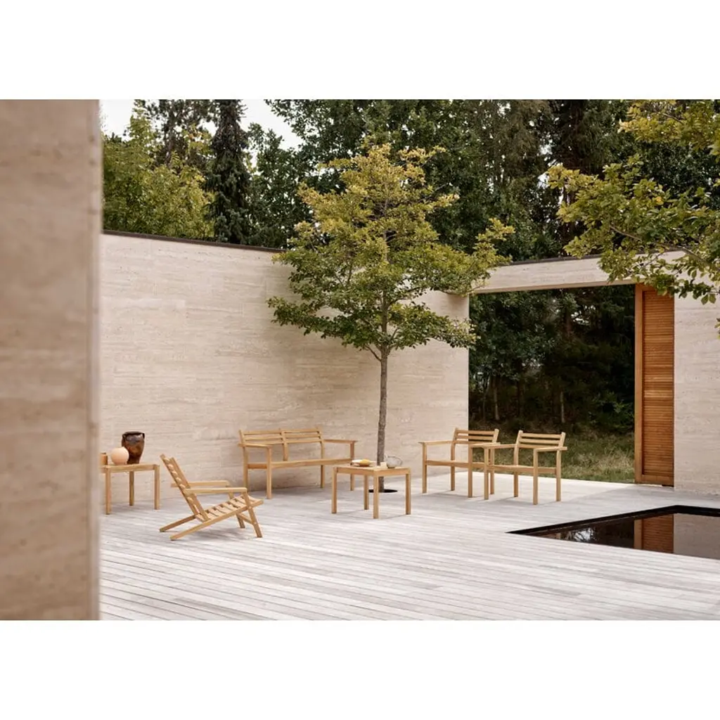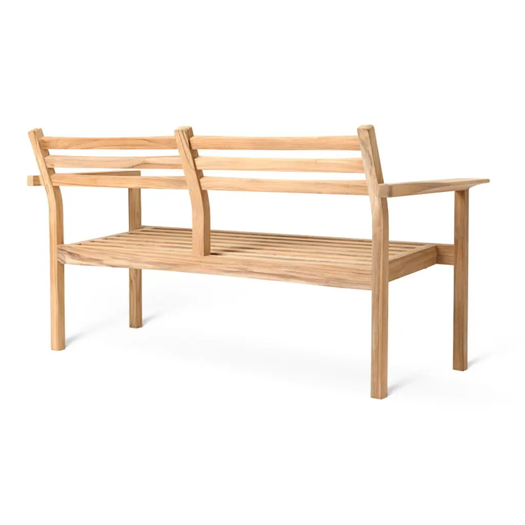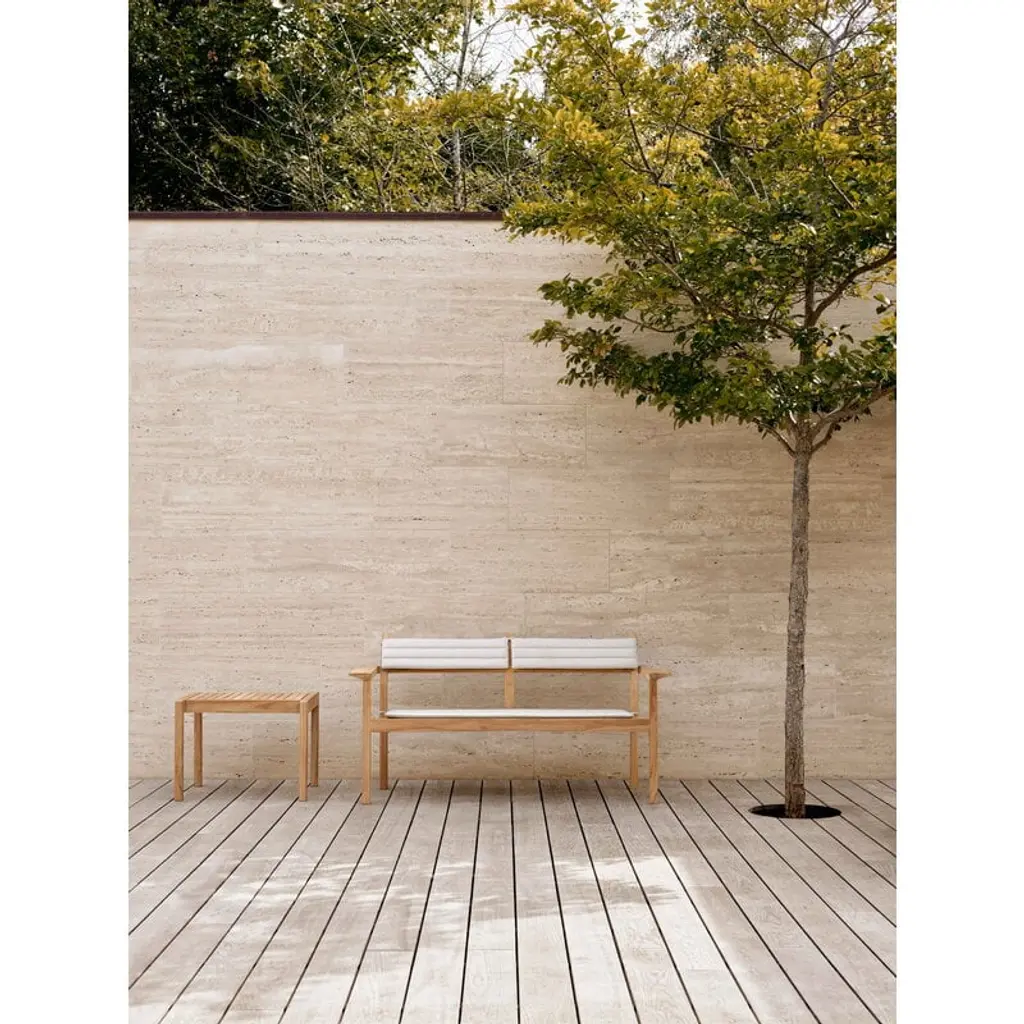 The AH Outdoor collection by Carl Hansen & Søn adds a dose of timeless Danish design to your outdoor space, whether it be a spacious patio or a compact urban balcony. Designed by architect Alfred Homann in 2022, the elegantly minimalist collection consists of a variety of furniture suitable for any occasion from hosting a large garden party to relaxing in the company of just yourself and perhaps a good book. Characterized by a simple and functional design language, model AH701 is a small wooden sofa, or a garden bench if you will. The clean lines and subtle rounded details make the sofa the perfect addition to a variety of environments from a lush traditional garden to a modern, more ascetic outdoor space. It is also stackable, making it ideal for cafés and restaurants as it is easy to store away for the winter. Seat cushions are available separately, should you like to make the sofa extra comfortable. Just like all furniture in the AH Outdoor collection, the wooden sofa is made of certified teak wood. The durable material ages beautifully, turning from a warm brown to a dignified silvery gray. If you wish to keep the original color, be sure to oil the furniture before the first use and regularly thereafter.