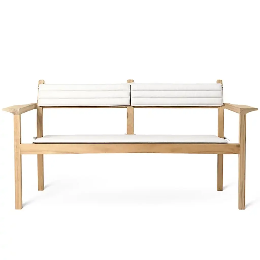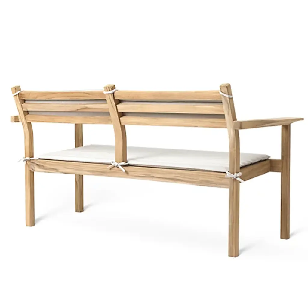 The AH701 Outdoor Lounge Sofa from Carl Hansen delights with an airy and elegant expressiveness paired with an enduring character of coastal comfort. An Alfred Homann design constructed from a frame of tough teak with slim, strong structural elements, it uses flaring armrests to provide additional accents of comfort, setting soft foam cushions beneath a textile surface of Agora Life, recycled and waterproof while remaining biodegradable, adding conscience and comfort in equal measure, and keeping space and style for intimate conversations and outdoor gatherings.