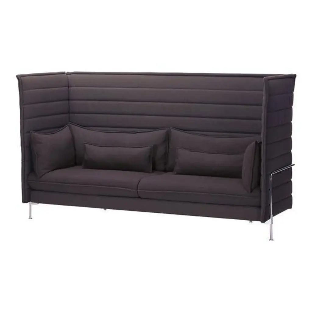 The defining concept behind the Alcove product family – creating places of shelter and seclusion – is especially pronounced in the Alcove Highback Sofa: tucked away within its high side and back panels, the user is shielded both visually and acoustically from the surrounding environment. It offers a space for withdrawal and privacy in a peaceful oasis.