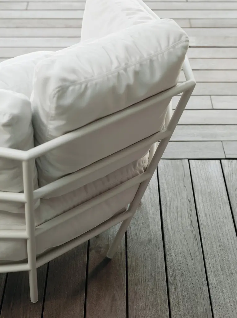 Alias 370_O Dehors Armchair in Light Grey Upholstery with Black Lacquered Frame by Michele De LucchArmchair for outdoor use with structure in lacquered steel. Removable cover in Tempotest® or Alias® fabric. Cushions included in the prices: pc.1 (45x45 cm), pcs.2 (45x35 cm), pc.1 (40x25 cm).Born in Ferrara in 1951, he graduated in architecture in Florence. In 2000 he received the title of “Ufficiale della Repubblica Italiana” from President Ciampi for merits in the field of design and architecture. Since 2003, a large number of his designs have been part of the permanent collection at the Centre Georges Pompidou. Since 2004 he has worked with Alias planning storage system layout, dehors (2008) and norma (2009).Additional Information:Material: Textured lacquered steel, upholsteryUpholstery finish: Tempotest® fabric A light grey (PT02)Frame finish: Black (A011)Dimensions: 108 W x 82.5 D x 68.7 H cmAvailable in other finish options: White (A019), graphite grey (A022), sand (A047), light grey (A051)Available in other upholstery options: White (PT01), dark grey (PT03)Available in other various options
