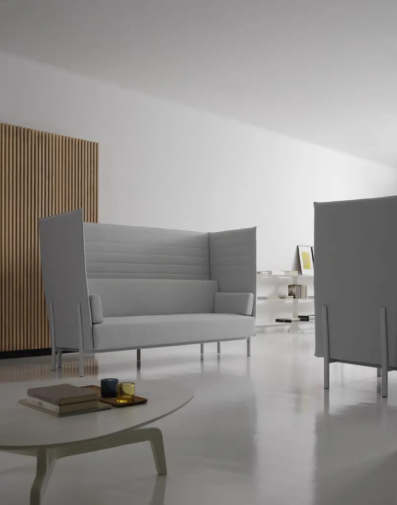 Alias 863 Eleven High Back 2 Seater Sofa in Blue Seat and White Lacquered Aluminum Frame by PearsonLloydTwo-seater sofa with die-cast aluminium legs and steel frame. Seat cushion, back and arms in polyurethane covered with fabric. Panels covered with fabric. Removable covers.Tom Lloyd and Luke Pearson founded PearsonLloyd in 1997 and since then completed a wide range of projects. The studio uses an investigative approach based on research that combines in a balanced manner the creation, efficiency, user needs and ergonomics. Some of their awards received include the Gold DBA Design. Effectiveness award and the distinction of the Royal Designers of Industry. In 2011 they designed the eleven upholstered elements, followed by the side tables (2012) and the high back version (2015) which naturally complete this system. They live and work in London.Additional Information:Material: Textured lacquered aluminum, upholsteryFrame finish: White (A019)Upholstery: Kvadrat® C Steelcut Trio (0713)Dimensions: 165 W x 75 D x 137 H cmSeat Height: 44 cmAvailable in other frame finish options: Polished (AB), black (A011), graphite grey (A022), sand (A047), light grey (A051)Available in other material options: Living I, Living II, Urban, Xtreme, Maple, Remix, Tonus, Canvas, Divina, Divina Melange, Foss, Hallingdal 65, Harald, Hero, Steelcut, Twill Weave, SC ColorSphere®: white SC04 latte (B004), grey SC26 topo (B026), brown SC56 siena (B056), brown SC57 torba (B057), brown SC80 bruno havana (B080), other colors available on requestAvailable in other various options.
