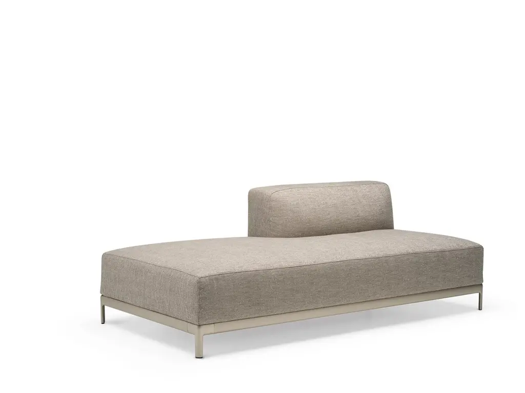 Alias P41 AluZen Soft Ending Sofa in Brown Upholstery & Anodized Gold Frame by Ludovica+Roberto PalombaModular closing element with structure in lacquered or polished aluminium.Seat and back with removable cover in fabric or leather.Available in version right or left.Ludovica + Roberto Palomba, the golden couple of Italian design, for over 25 years have been designing products that escape the trends. First of all, they have a philosophical approach: the search for essence in every project, closer to the concept of balance of oriental heritage rather than to the nordic style, the goal of their work is not only an aesthetic result but the well-being. They have received numerous international awards and recognitions such as Compasso D’Oro, Elle Decoration International Design Award, Red Dot, Design Plus, Good Design Award and German Design Award. Additional Information:Material: Metallic lacquered aluminum, upholsteryUpholstery finish: Alias® fabric A (Living I LB16)Frame finish: Anodised gold (A049)Dimensions: 190 W x 95 D x 65 H cm Seat Height: 42 cmAvailable in other finish options: Polished (AB), white (A019), black (A011), graphite grey (A022), sand (A047), light grey (A051), anodised silver (A048), anodised lead (A050)Available in other upholstery options: Living II, Maple, Remix, Tonus, Canvas, Divina, Divina Melange, Foss, Hallingdal 65, Harald, Hero, Steelcut, Steelcut Trio, Twill Weave, SC ColorSphere®: white SC04 latte (B004), black SC 20 inchiostro (B020), grey SC26 topo (B026), brown SC56 siena (B056), brown SC57 torba (B057), brown SC80 bruno havana (B080), Lanilina: ossidiana (LA01), caolino (LA02), tufo (LA03), ardesia (LA05), ambra (LA06), pomice (LA07), torba (LA11) other colors available on request. Available in other various options
