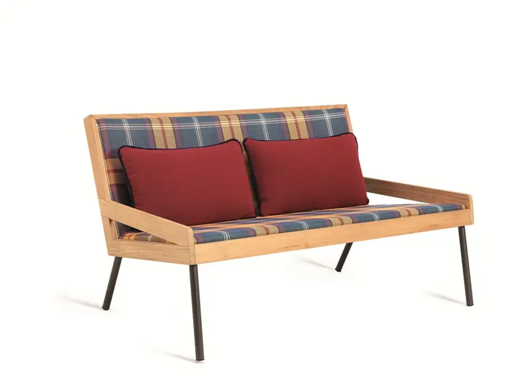 Mountain - TartanAllaperto collection brings us ‘bespoke’ design elements in Coffee brown metal covered in natural teak and Ethitex padded fabric with a specifically designed tartan to ensure maximum comfort and durability even in the coldest locations.Allaperto, the lounge collection spawned by the partnership between Ethimo, Matteo Thun and Antonio Rodriguez, which has become iconic for the different ‘outfits’ with which it interprets the places that host it, continues its transformation in two new moods, Veranda and Nautic, pairing teak, respectively, with natural rattan and rope.Allaperto Veranda dresses the lounge armchair in rattan, offering an example of the increasingly eco-friendly approach that focuses on the choice of materials with a rather vintage feel. The natural rattan weave is a perfect match for the transitional spaces between indoors and outdoors, such as porticos or verandas. Areas which today, in our everyday lives, become a veritable extension of the comfort offered by our interiors, with an innate ability to surprise, also in contemporary exterior design. The special texture of natural rattan and its sophisticated weave help create a charming “exotic” effect in the semi-open spaces that host this new version of the Allaperto armchair.Allaperto Nautic, the second new outfit designed with Matteo Thun and Antonio Rodriguez, styles the entire lounge, combining teak with polypropylene rope, a 100% outdoor, recyclable material. The Nautic mood is inspired by the maritime world, and pairs precious teak with an artisan herringbone weave in rope, endowing chairs and sofas with a distinctive personality that boosts the appeal of their slender lines.The characteristic weave of Veranda and Nautic is entirely hand-made, conveying an authentic sartorial feel and the sense of an artisan crafting process.For 2021, the Allaperto collection is also enriched by another important new addition: a suspened armchair emblem of an outdoor environment made of lightness, in full harmony with the flexibility of the natural world. The new suspended armchair, also available in the swing version with self-bearing stand, can be personalised in Rattan (Veranda mood), rope (Nautic mood ) or Etwick fibre (Mountain mood), paired with the teak frame that characterises the entire Allaperto collection. Its generous dimensions combine with a solid frame, creating a brand new proposal ideal for “swinging” carefree in the open air in maximum comfort.Allaperto confirms its identity as a surprising, dynamic collection that reinvents itself according to the latest trends and the context that hosts it, generating a range of different experiences for enjoying outdoor spaces with maximum effect.