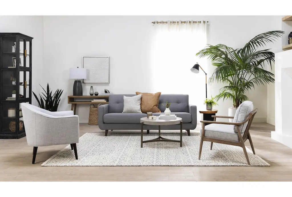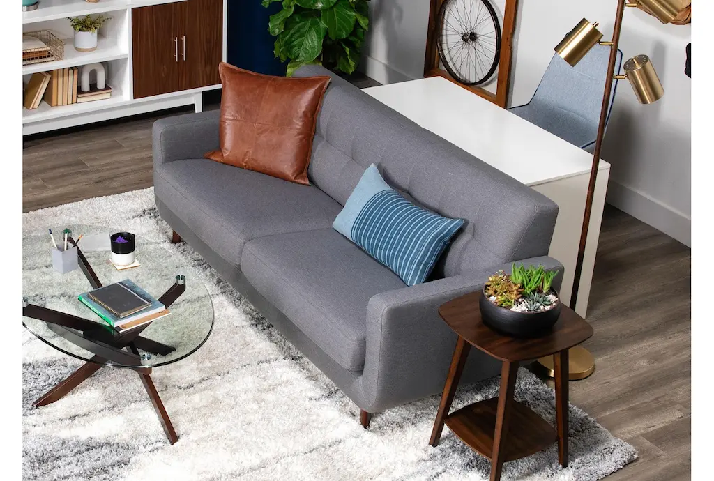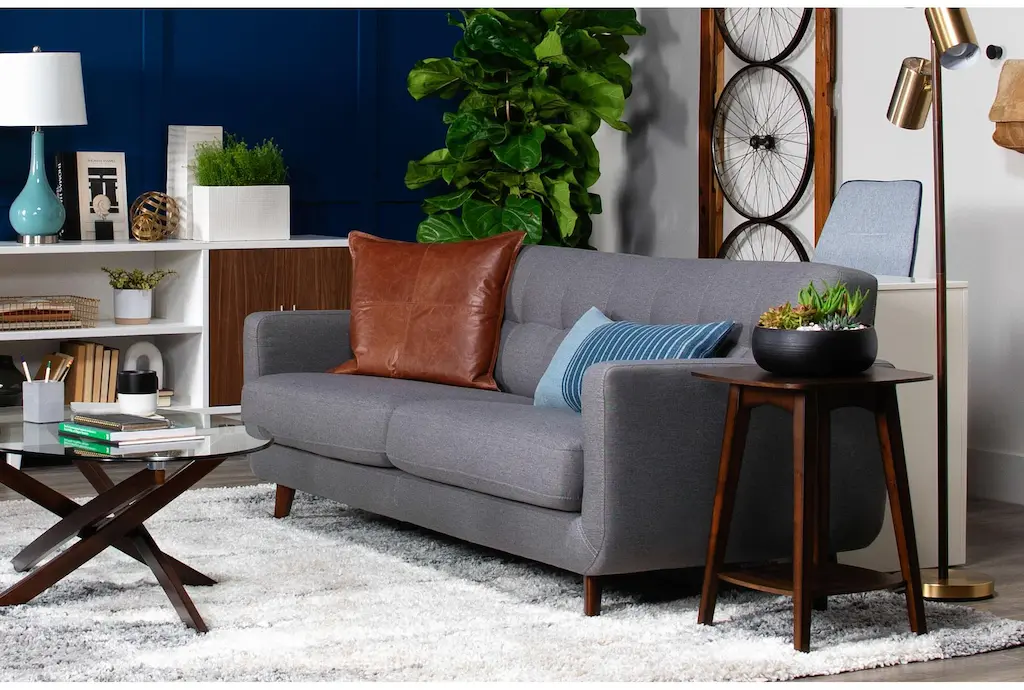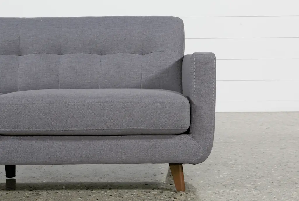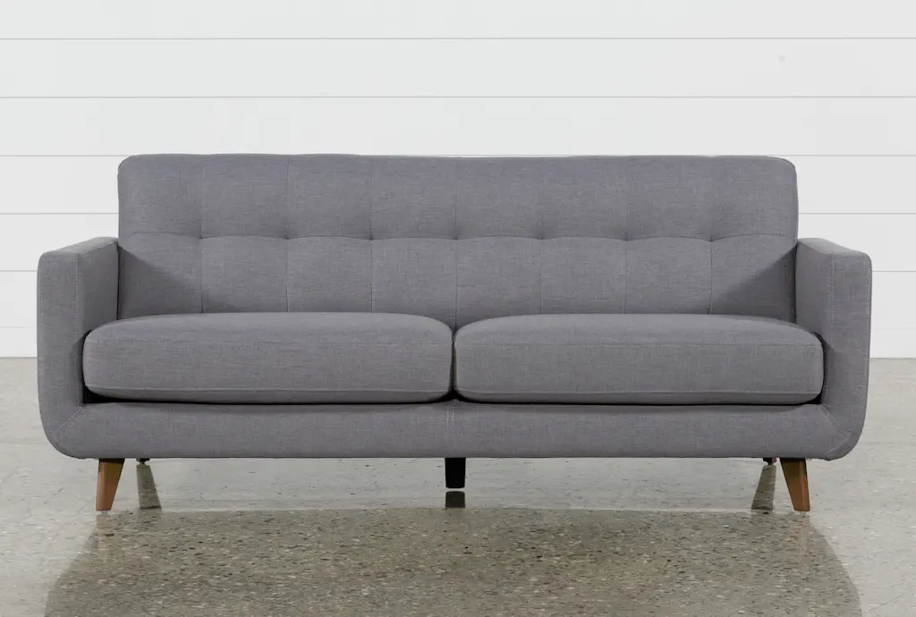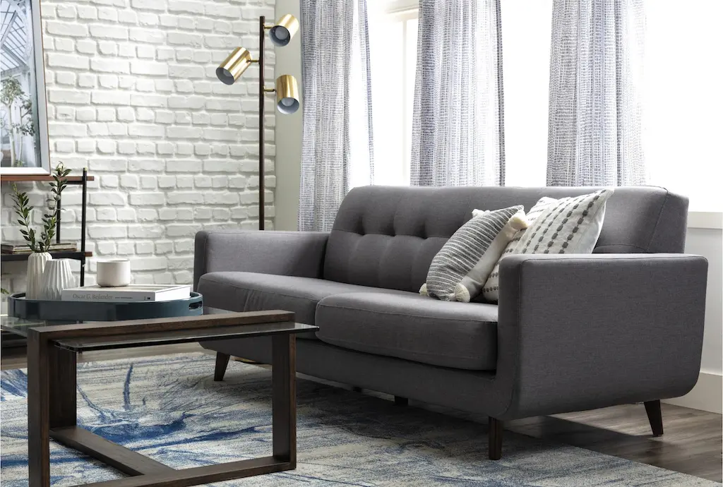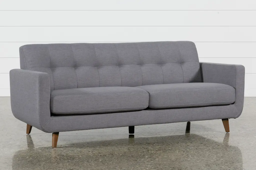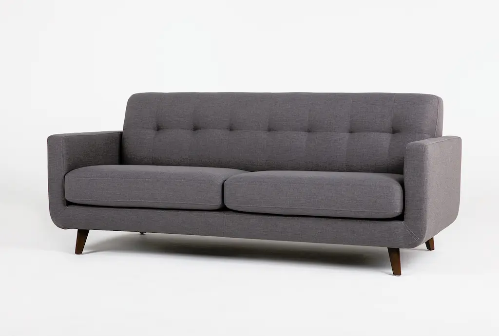 Get a chic retro look for way less with our fun, fresh Allie Dark Grey sofa. Mid-century modern features - like clean curves, a grid-tufted tight back and splayed beech wood legs that detach for easy delivery - will transform your living room into the ultimate lounge. Offered at one of our best, lowest prices, this piece doesn't sacrifice on style or quality, thanks to impeccably tailored, solidly constructed details and durable, low-maintenance fabric. You even have a choice of colors.