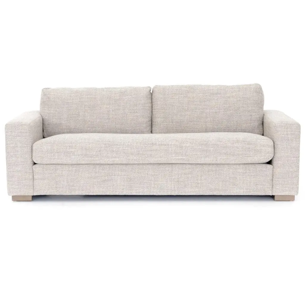 Sit back and relax in the deep, loose box seat of the Allure sofa. Whatever fabric or color you choose, the modern, clean look of its smooth lines and track arms transcend time. Available in our best price fabrics, Alabaster Revolution Dreamy and Dove Revolution Dreamy fabric. Want more options? Customize your own with over 600+ fabrics! Pillows are icing on the cake! We dont want to assume your perfect pillow, so this piece does not come standard with accent pillows. We have lots of choices online to shop and your local design consultant would even be happy to guide you through designing your perfect custom pillow in store.