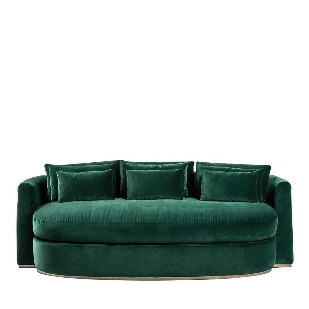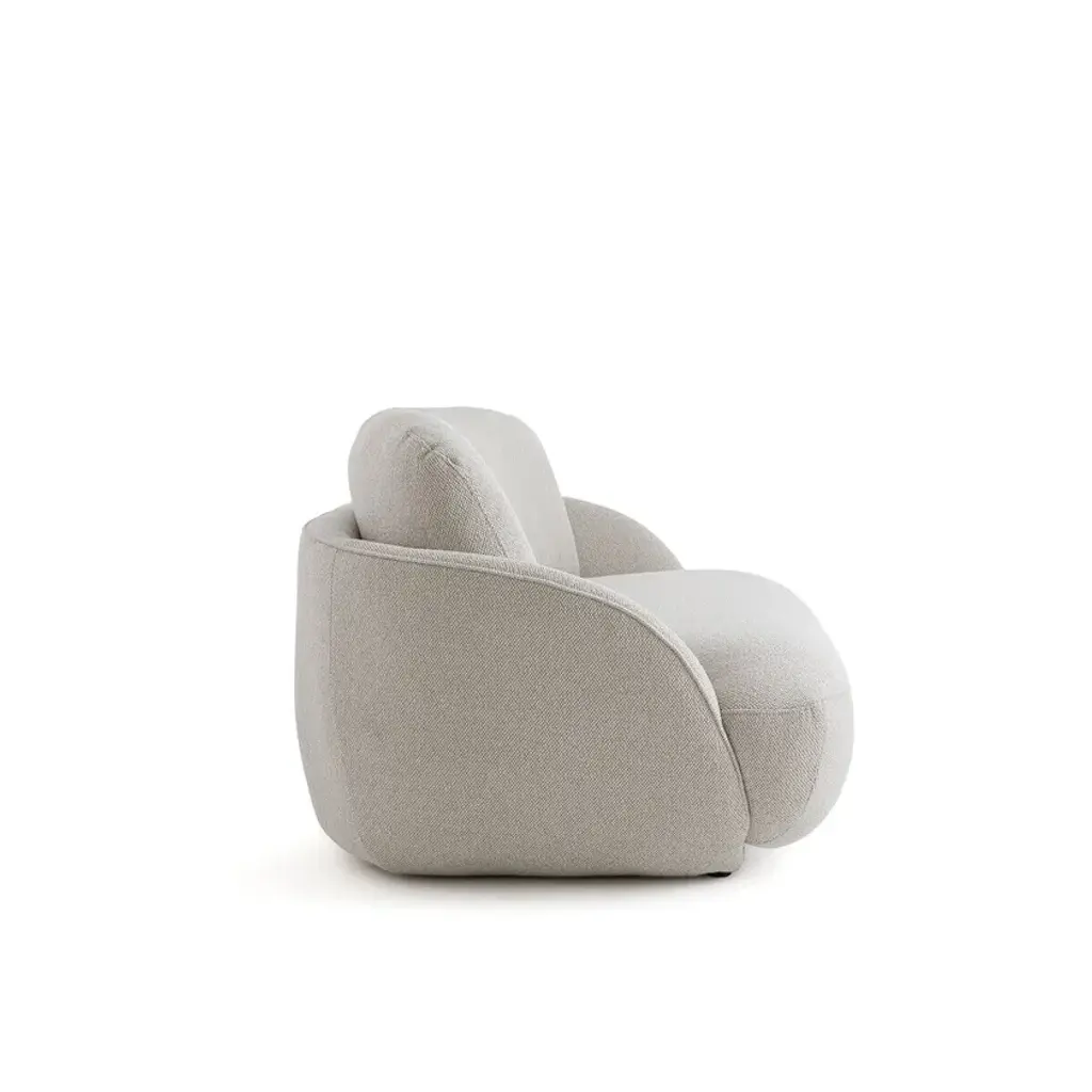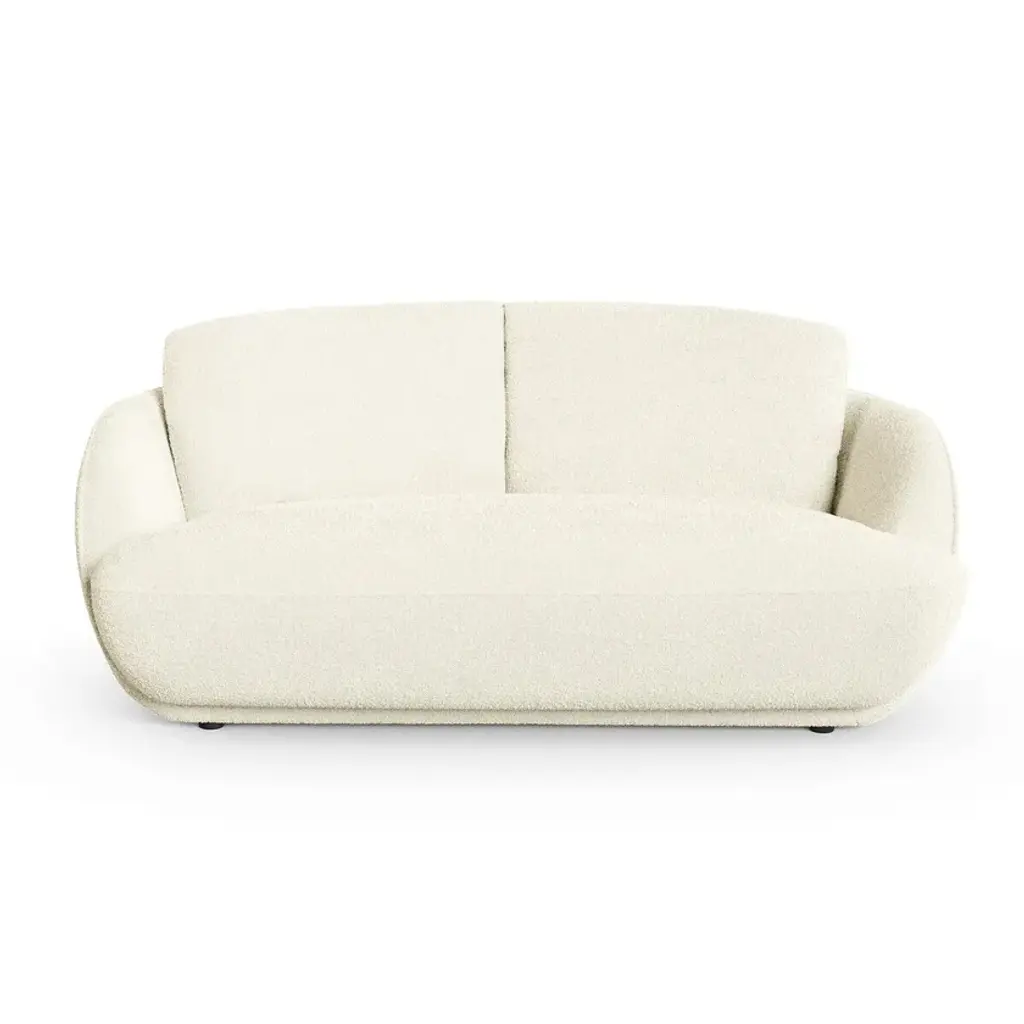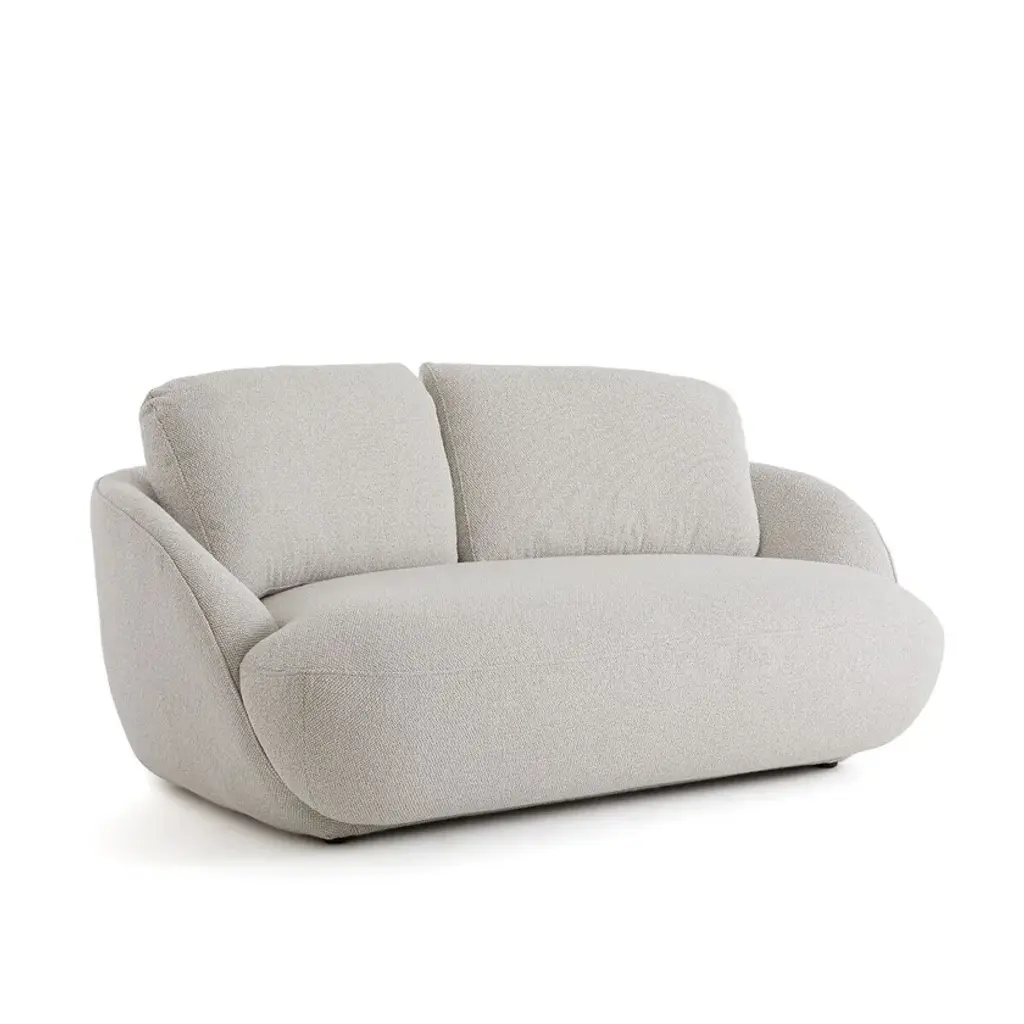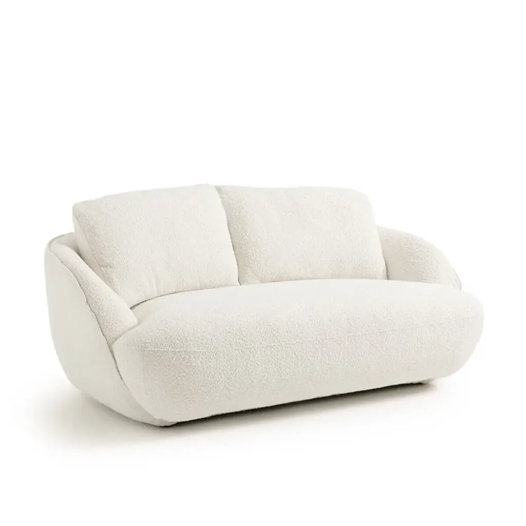 Low, wide, as if anchored to the ground, we find in the Alpine sofa the inspiration of 1970s contemporary design. The shape evokes a round cotton flower with generous volumes. A single edge marked by a profile that fits into the seat to envelop the body. Alpine, a sofa adapted to our current lifestyles, signed AMPM.Upholstery: Velvet 100% polyester, 314 g/m², European design (Italy)Bouclé fabric 95% polyester, 5% acrylic (589 g/m²)Chiné fabric 39% acrylic, 39% polyester, 14% cotton, 8% wool, 548 g/m², made in EuropeBouclé 100% cottonVelvet effect 60% acrylic, 40% cotton, woven in Italy. 678 g/m2Frame: FSC®-certified pine plywood, fibre particle board and solid pinSuspension: Nosag and strapsLegs (to be assembled) : PVC, height adjustable, H15 mmPaddingSeat: polyurethane foam 21 kg/m³ and 30 kg/m³ and a layer of polyester fibreBackrest: polyether foam 21 kg/m³ and a layer of polyester fibreBack cushions: mix of 50% feathers and 50% silicone fibres, 21 kg/m³ polyurethane foam core