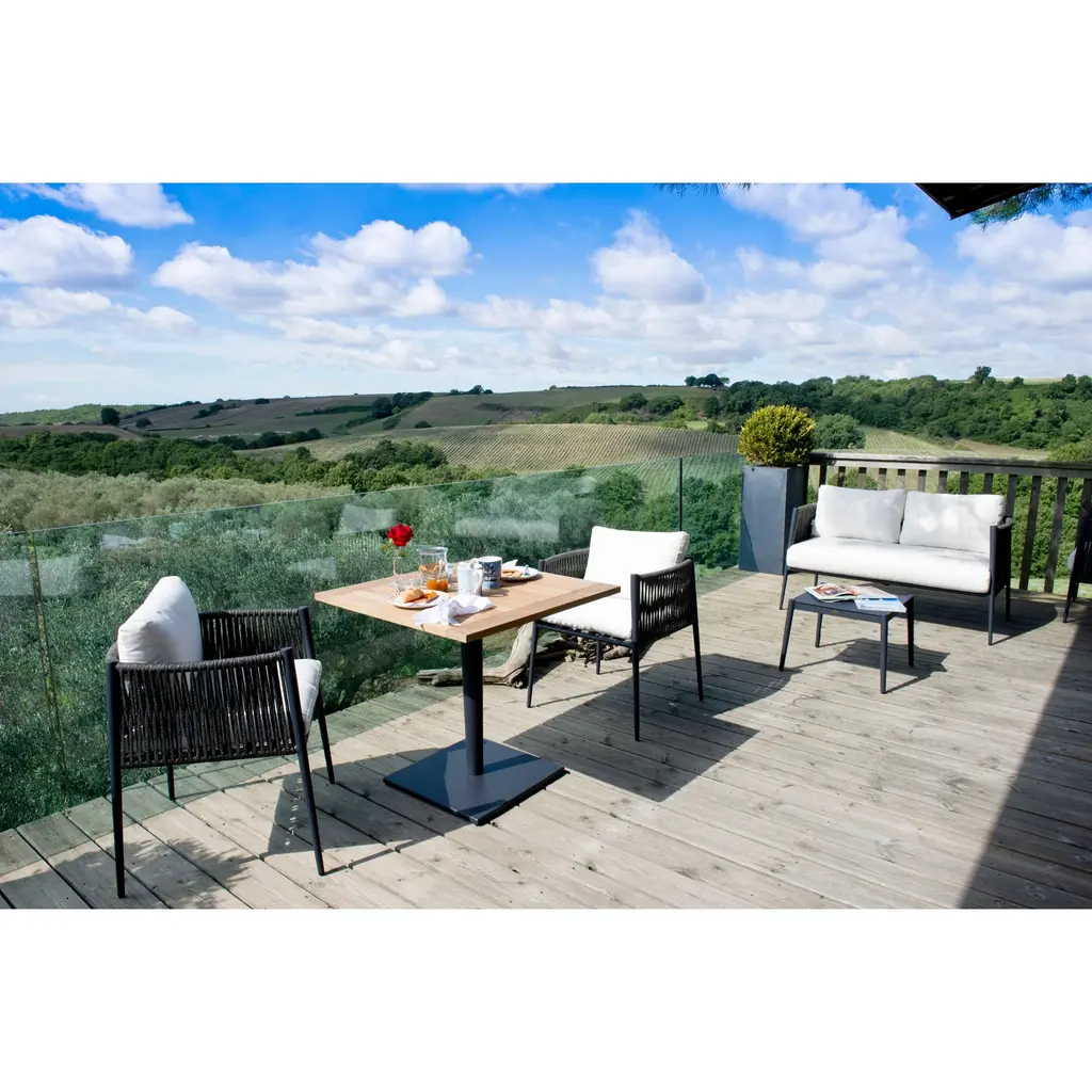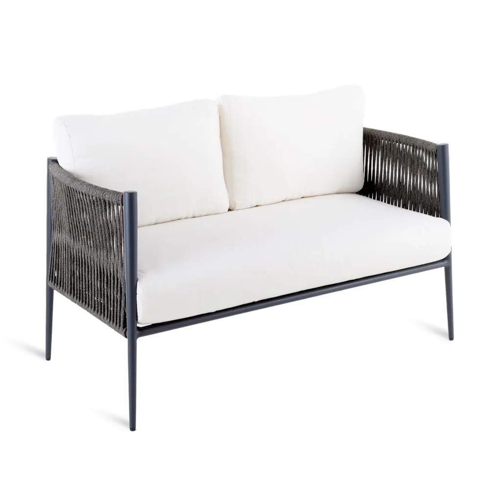Indulge in the luxurious Luce collection, featuring an exquisite blend of aluminum and rope in the back and armrests. Elevate your outdoor space with the perfect combination of style and durability. Create a comfortable and elegant garden or terrace with the highly sought-after aluminum garden sofa by Unopiu Luce.