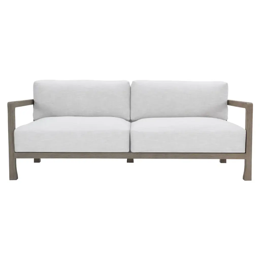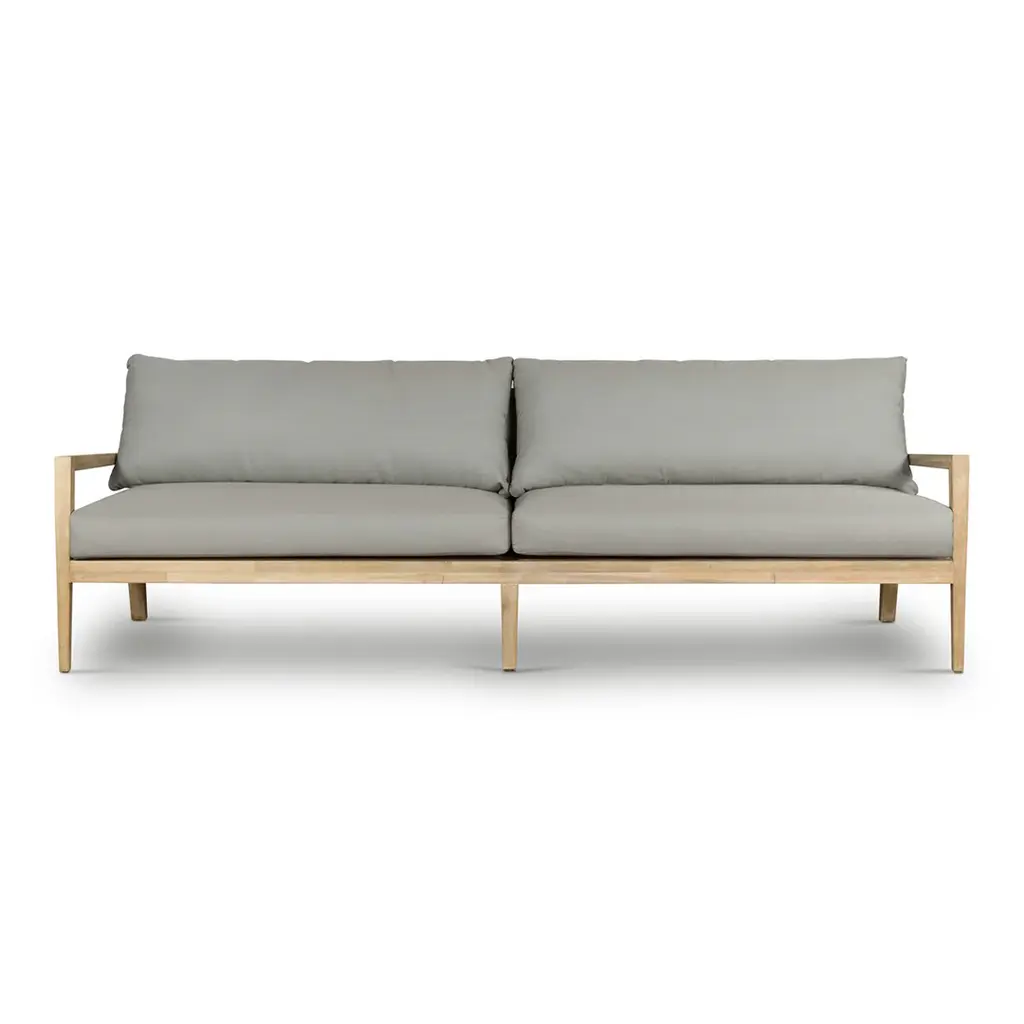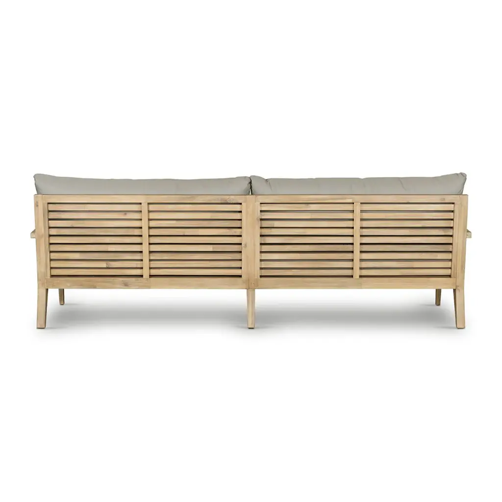 Simple yet sleek in muted natural tones, this outdoor sofa channels a transitional design crafted from solid FSC-certified acacia. Horizontal slats frame the back. Accented by a box seat cushion with velcro attachments, finished with a knife-edge back cushion. Cover or store indoors during inclement weather and when not in use. Ships In 10-14 Business Days All-weather cushion Slatted back Natural acacia frame This image is for illustrative purposes only. The colors shown are accurate within the constraints of lighting, photography, and the color accuracy of your screen.