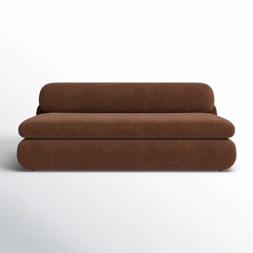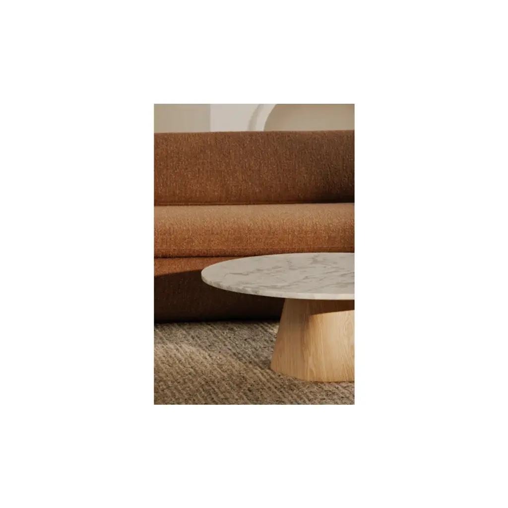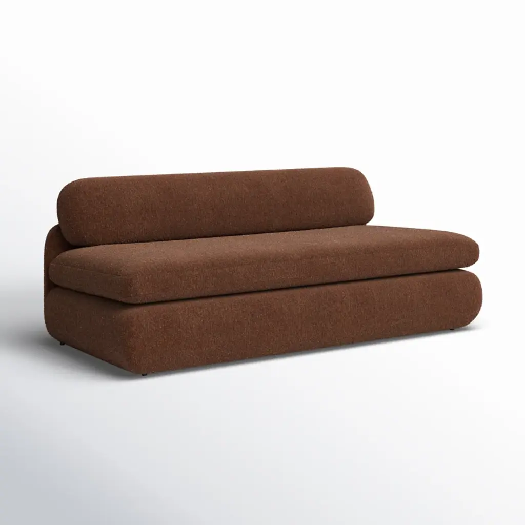 Inspired by the captivating styles of the ‘70s, this sofa brings a piece of the past into the present. Clad in textured boucle fabric, it merges visual allure + tactility. A curved form, combined with a rounded and elongated cushion, introduces a touch of softness to any space, while the plump seat cushion promises modern comfort.