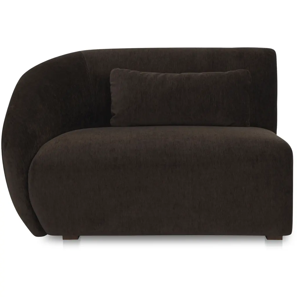 Offering a generous seat wrapped in rich, warm-toned upholstery, the Amelia left arm-facing chair allows numerous configurations to fit any interior design or spatial requirements. Its high back and sloped arm curvature combine to offer a supportive seat, inviting guests to lounge and relax. For added comfort, a lumbar cushion is perfect for posture as this piece radiates a welcoming ambiance.