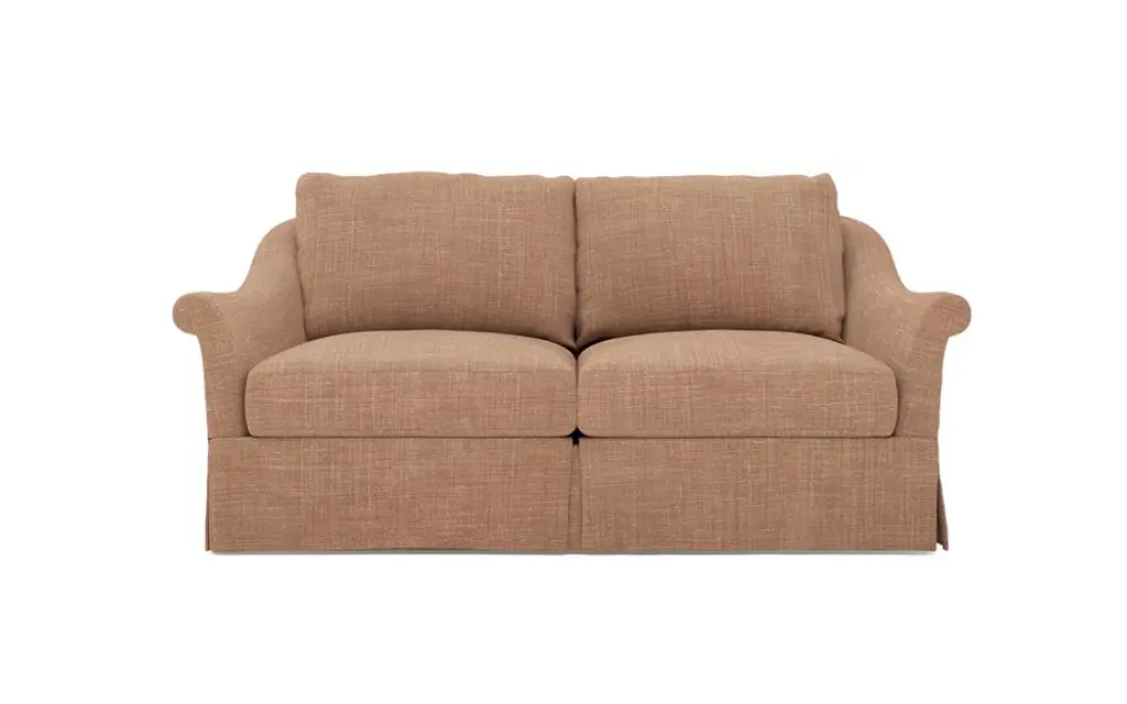 A Kathy Kuo Home exclusive, our 92” Amelie sofa has an elegant, timeless French design. The seat cushions offer EXTRAORDINARY COMFORT, with a foam core surrounded by a blend of feathers and duck down. With flared roll arms, a skirted base, and a gently curved, subtly tapered back, the chic silhouette embodies classic sophistication and is beautiful from every angle. Choose from a variety of upholstery options, including linen and performance fabrics.