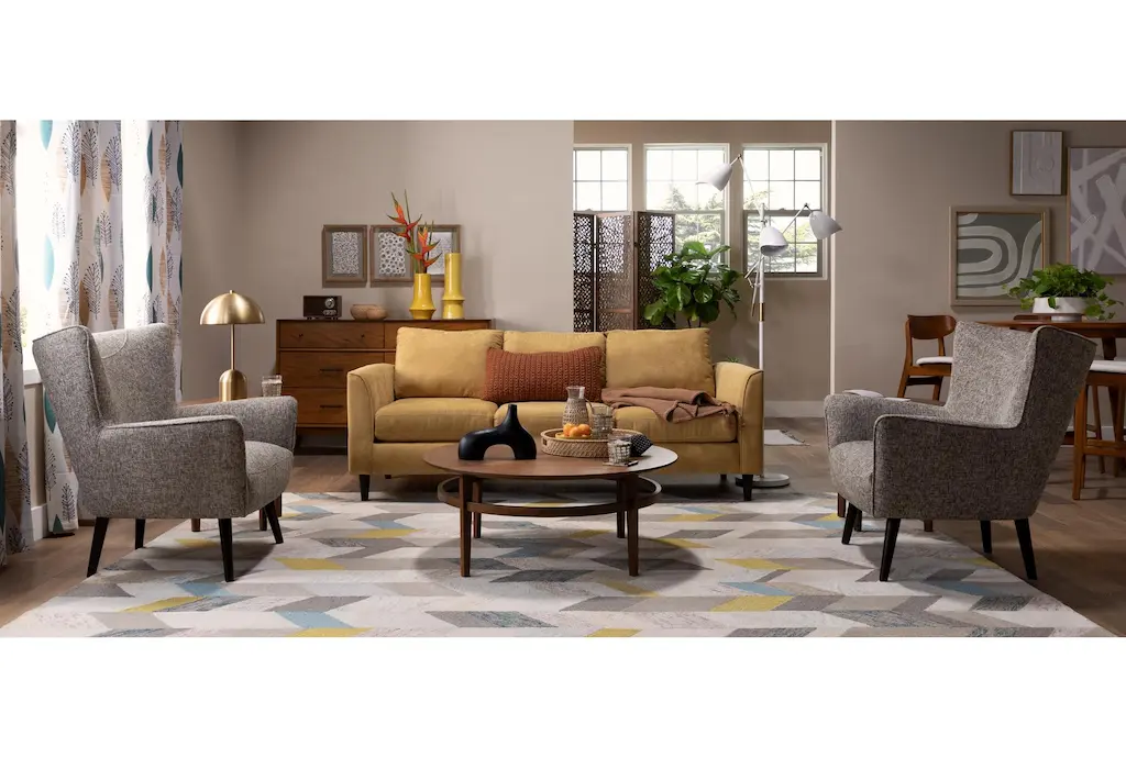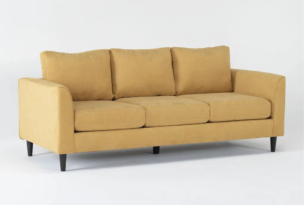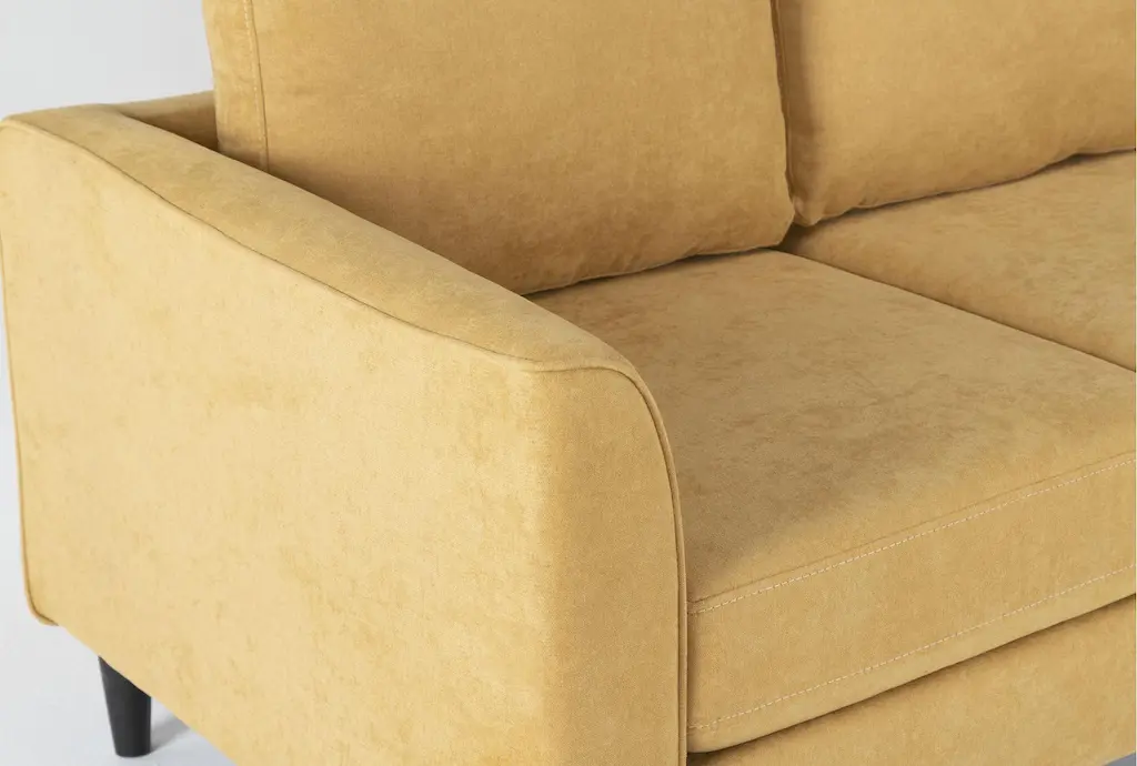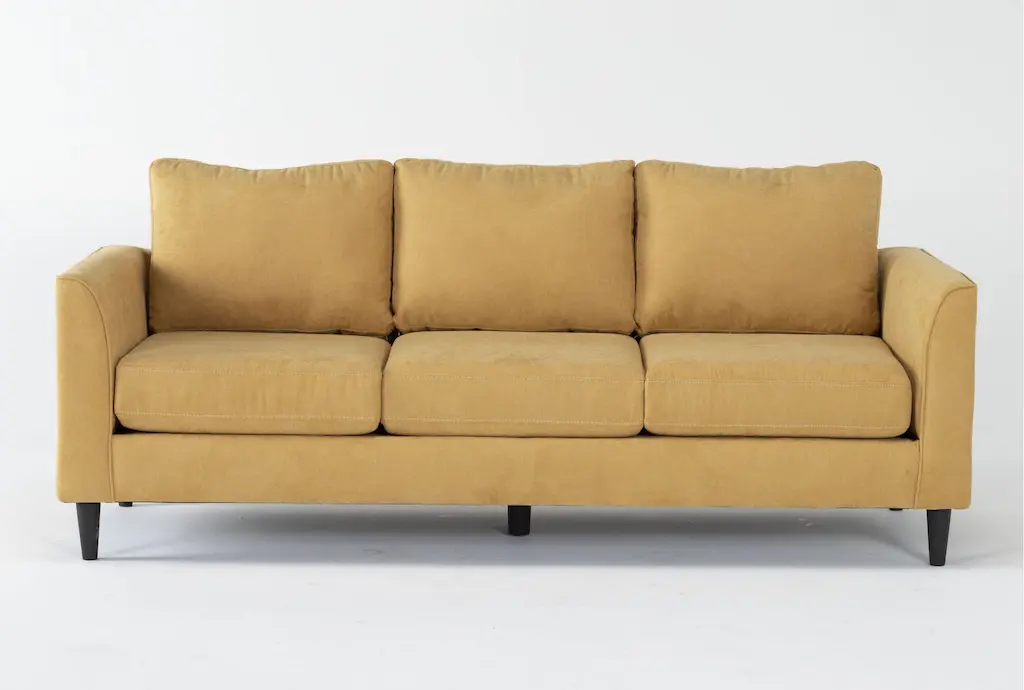 Introducing the Ami Sun Yellow Fabric 83" Sofa, the perfect centerpiece for your modern living room. With its vibrant sun yellow color and durable 100% polyester fabric, this sofa offers both comfort and style. The reversible design and tapered legs add functionality and a touch of sophistication to your space.