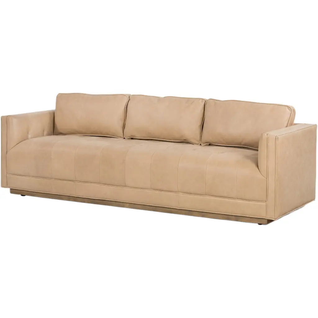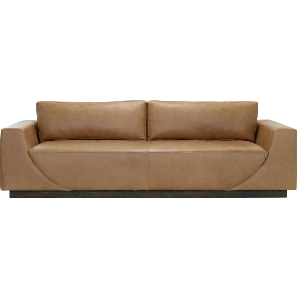 The Anakin Sofa balances clean lines with art deco-inspired contours. Luxurious Italian leather and a gently curved seat cushion emphasize inviting comfort for relaxation in style.