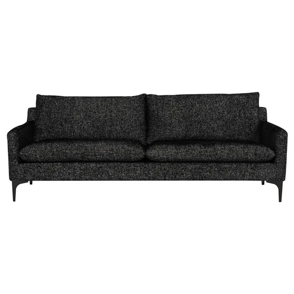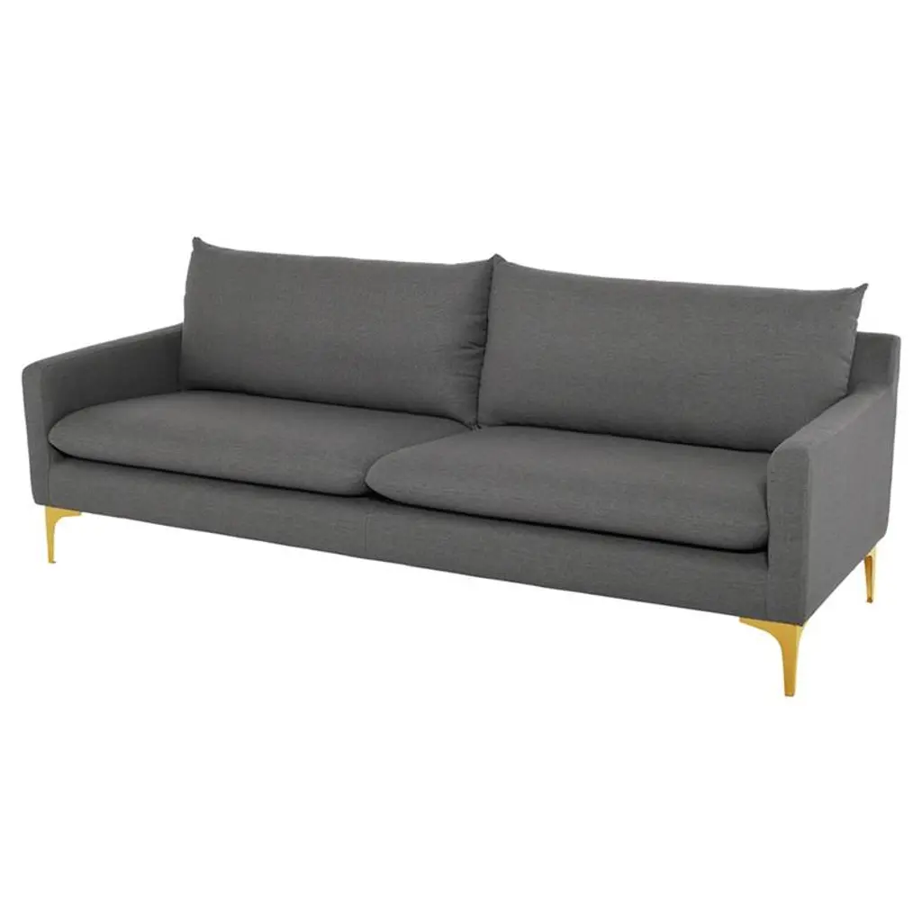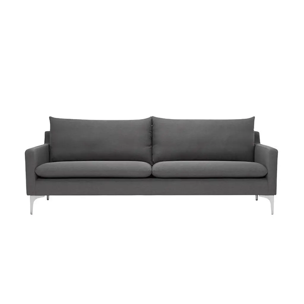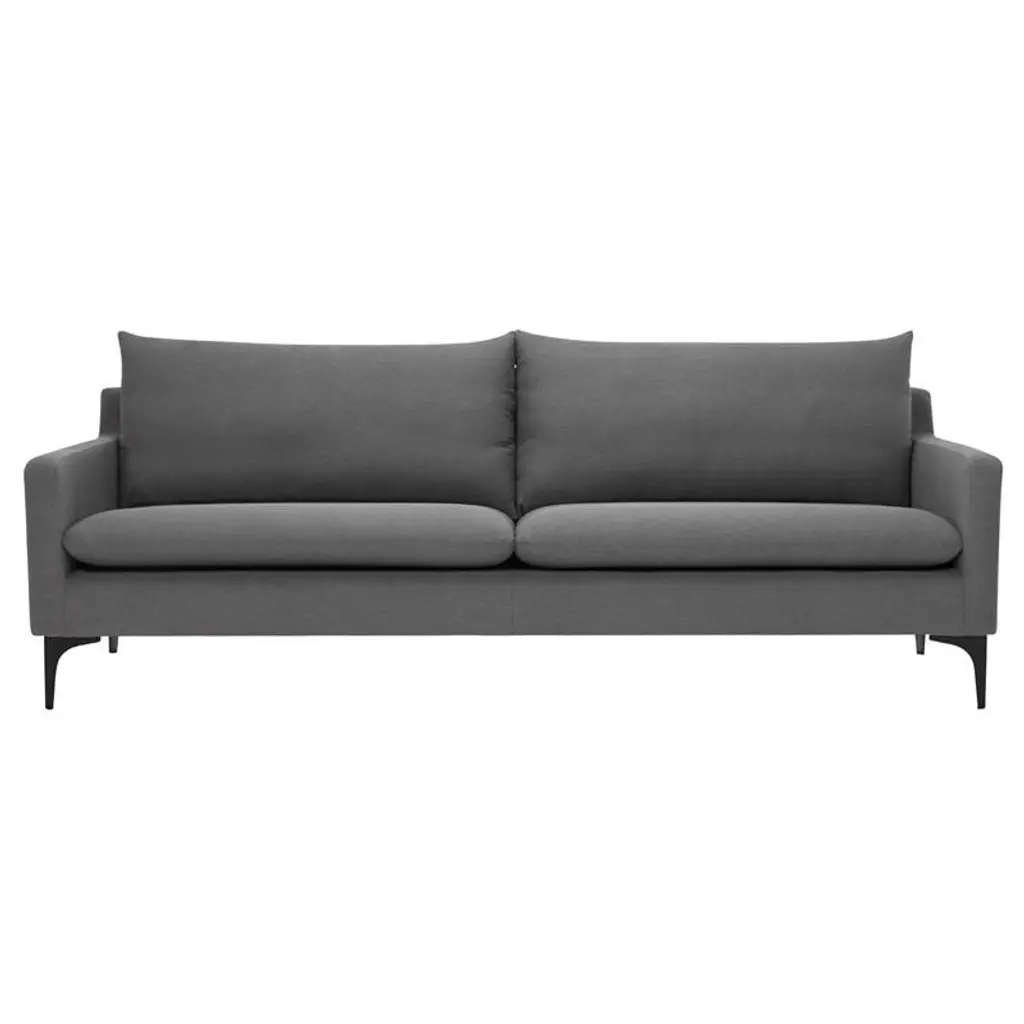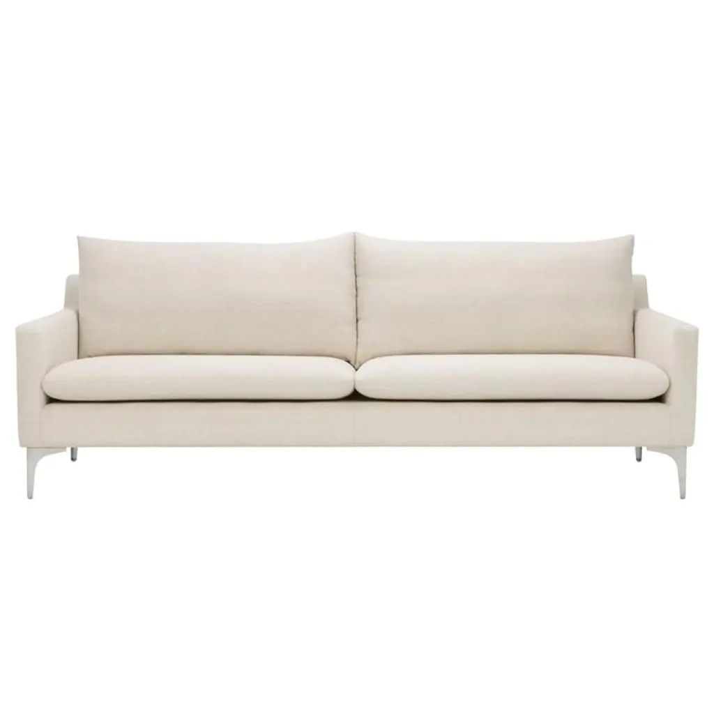 The Anders sofa strikes an inviting profile, its clean lines are softened by plush cushions. The Anders sofa can be paired with the Anders sectional and occasional chair to complete the look. Dimensions: 85.5" x 35" x 32.3" Seat height: 19.3" Seat depth: 23.5" Armrest height: 23.3" Seatback height: 18.5"