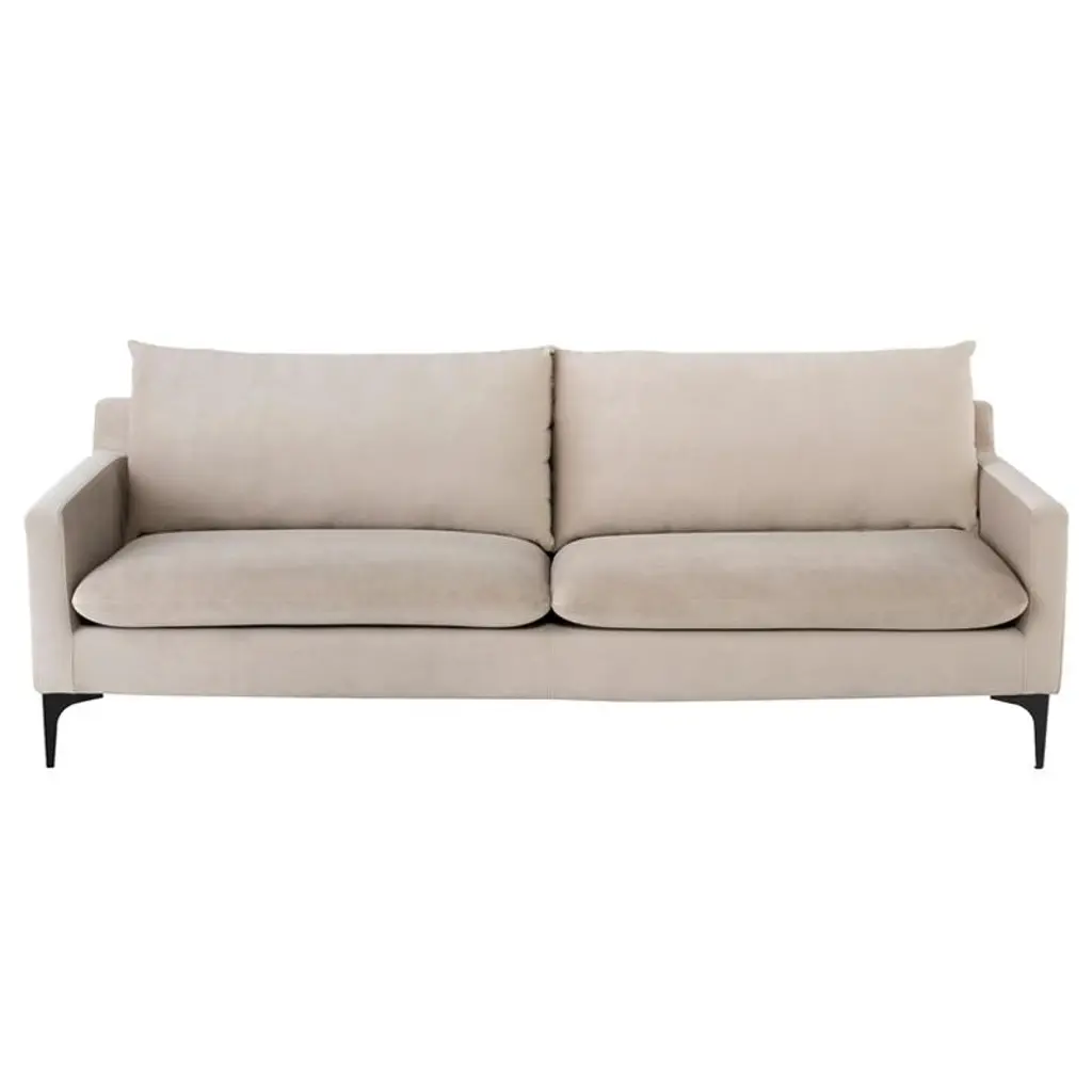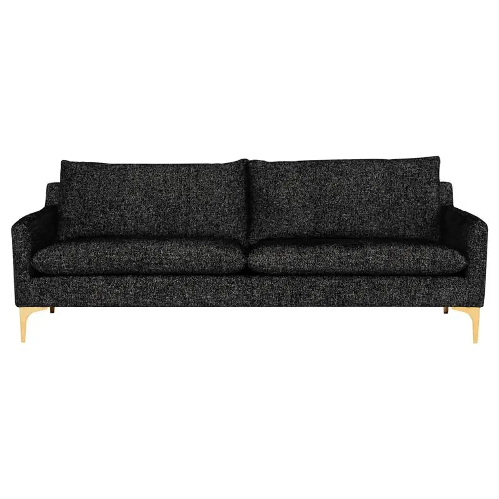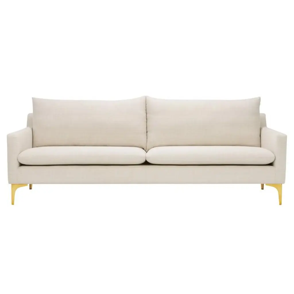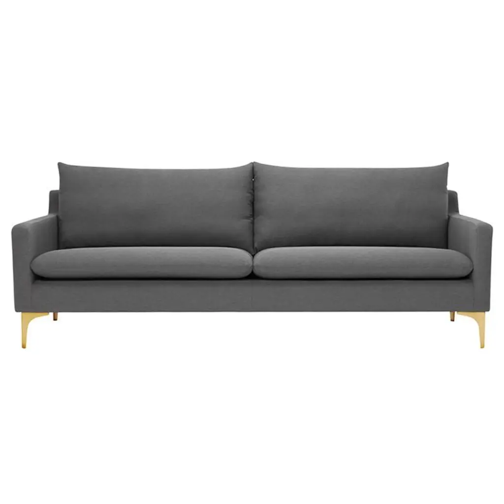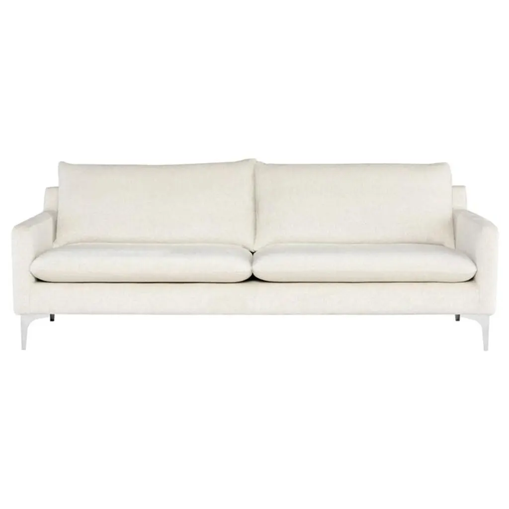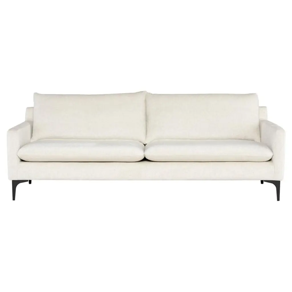 The Anders sofa strikes an inviting profile, its clean lines are softened by plush cushions. The Anders sofa can be paired with the Anders sectional and occasional chair to complete the look. Dimensions: 85.5" x 35" x 32.3" Seat height: 19.3" Seat depth: 23.5" Armrest height: 23.3" Seatback height: 18.5"