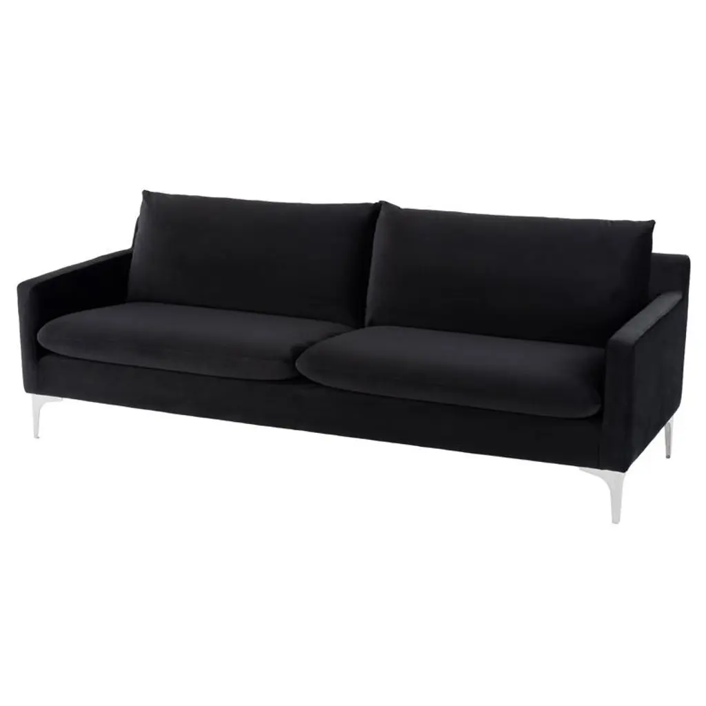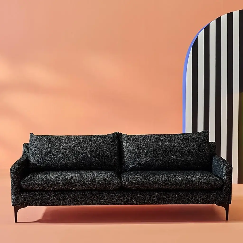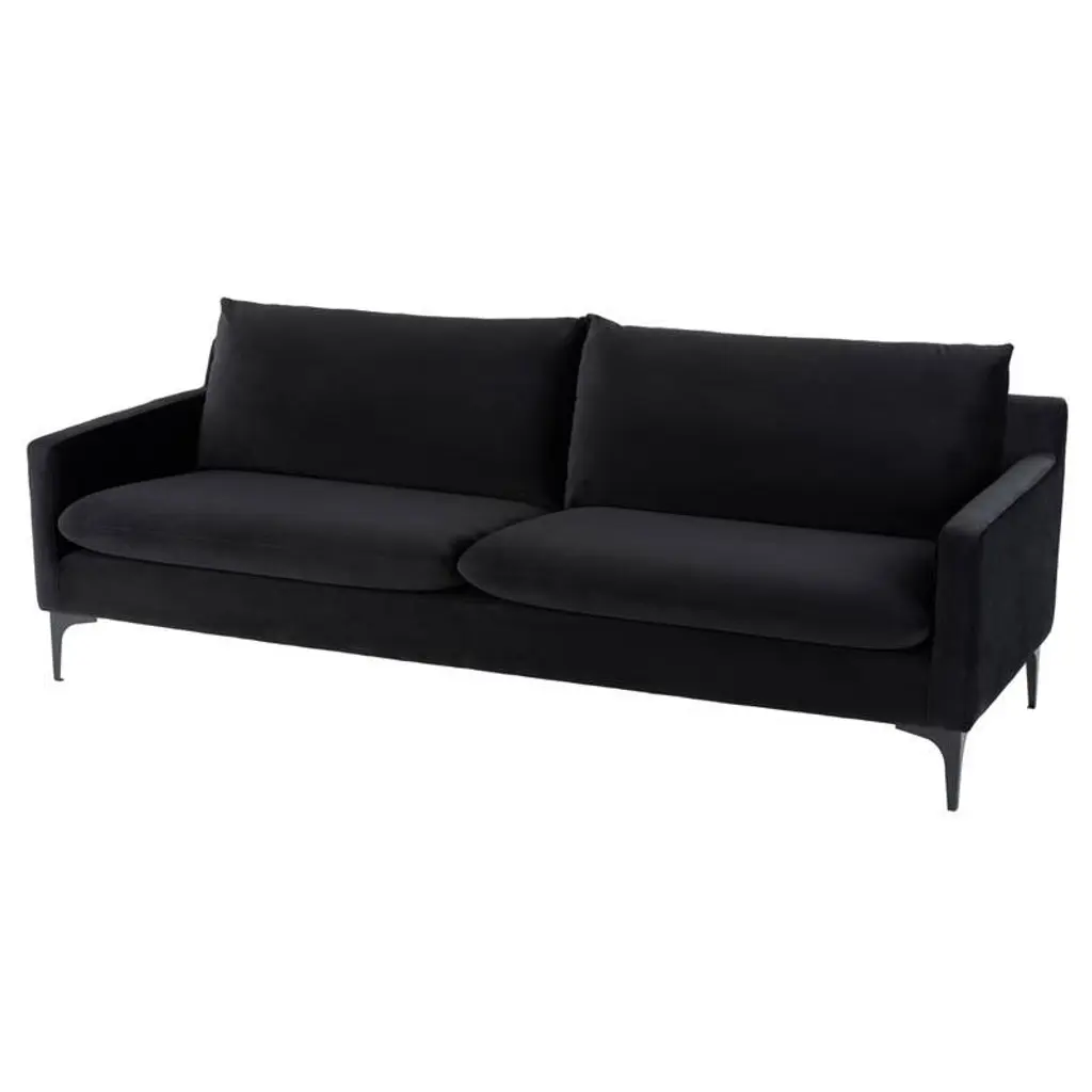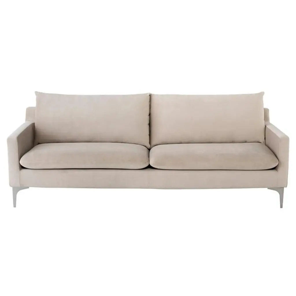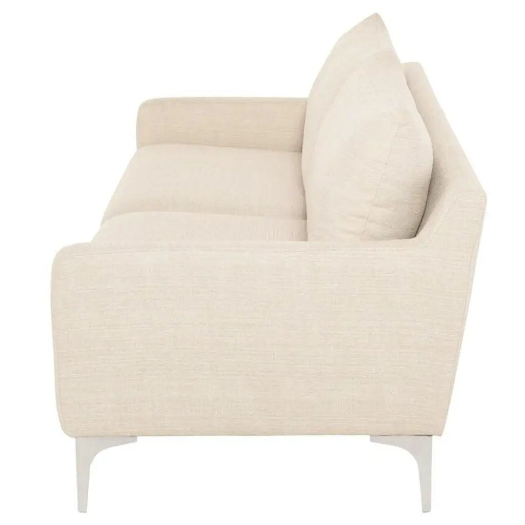 The Anders sofa strikes an inviting profile, its clean lines are softened by plush cushions. The Anders sofa can be paired with the Anders sectional and occasional chair to complete the look. Dimensions: 85.5" x 35" x 32.3" Seat height: 19.3" Seat depth: 23.5" Armrest height: 23.3" Seatback height: 18.5"