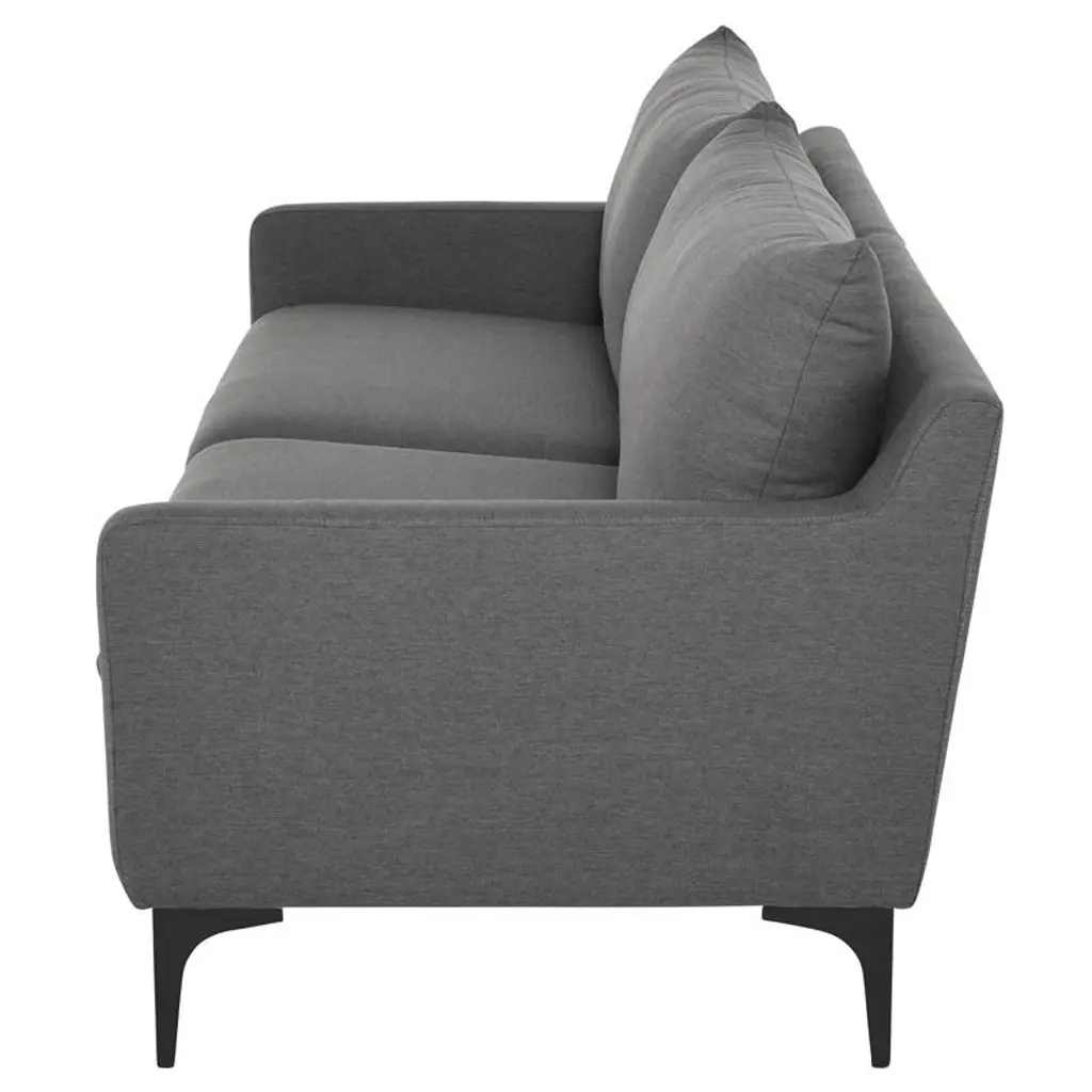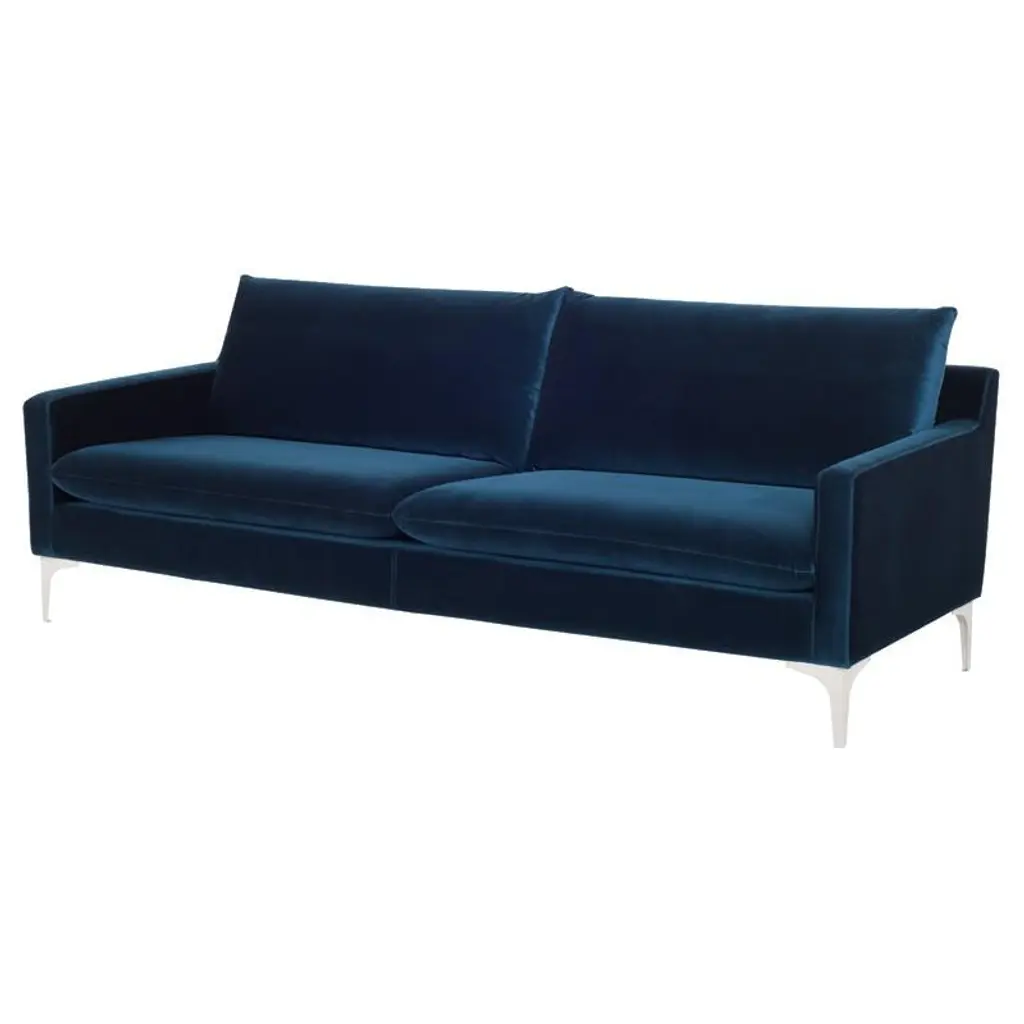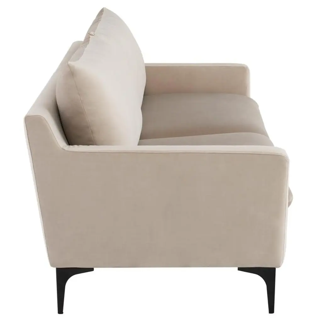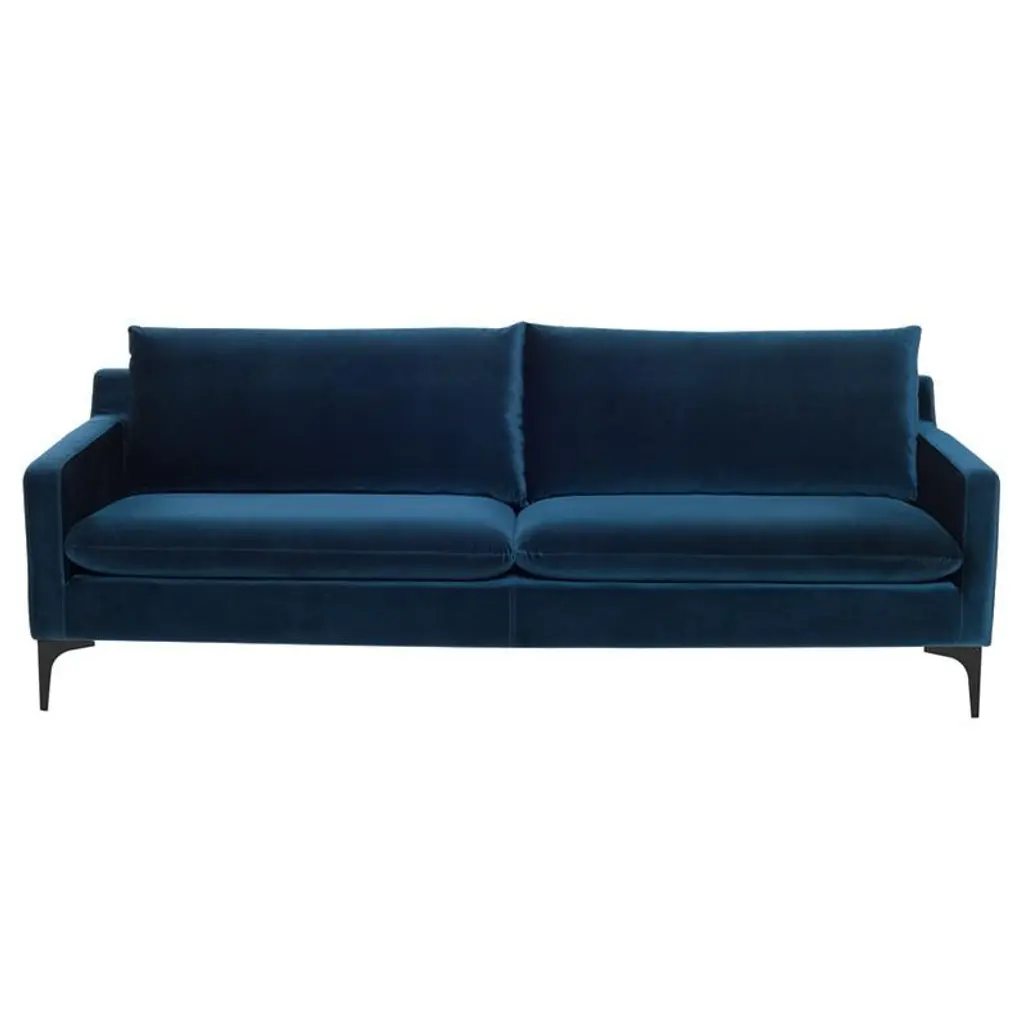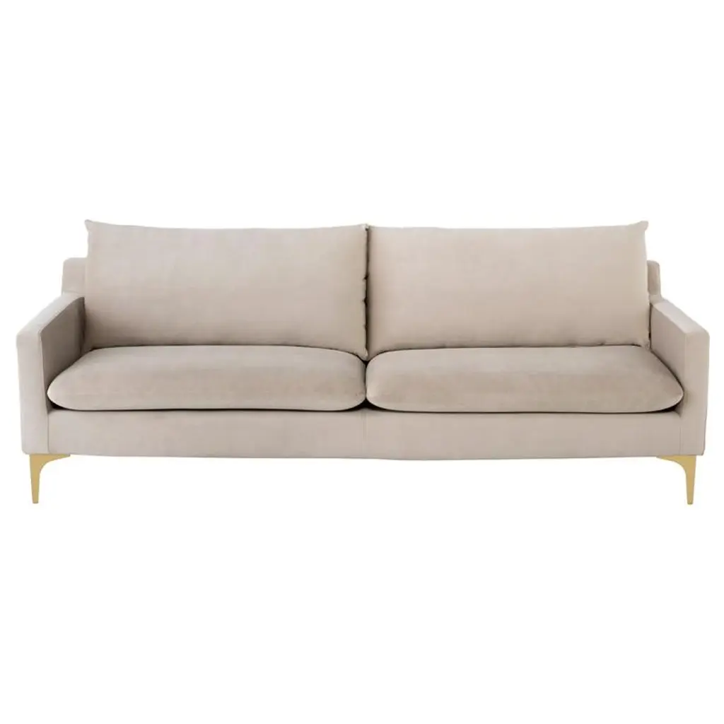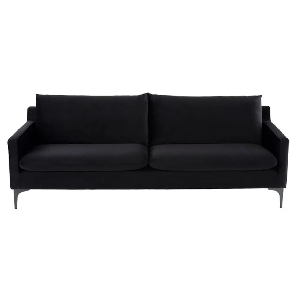 The Anders sofa strikes an inviting profile, its clean lines are softened by plush cushions. The Anders sofa can be paired with the Anders sectional and occasional chair to complete the look. Dimensions: 85.5" x 35" x 32.3" Seat height: 19.3" Seat depth: 23.5" Armrest height: 23.3" Seatback height: 18.5"