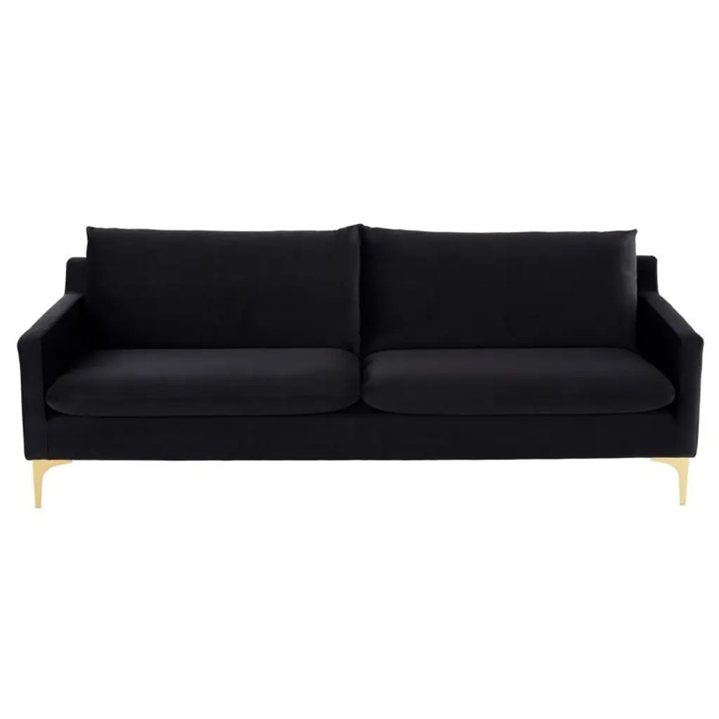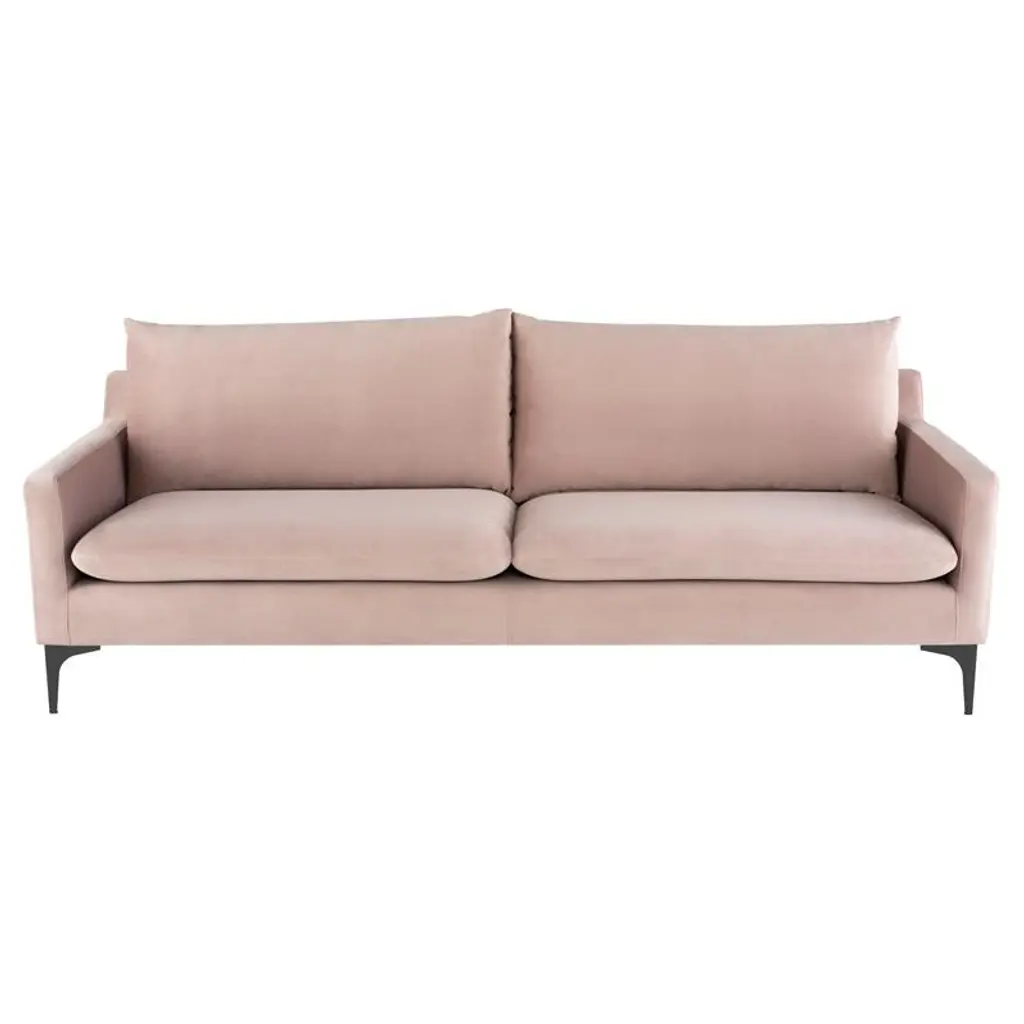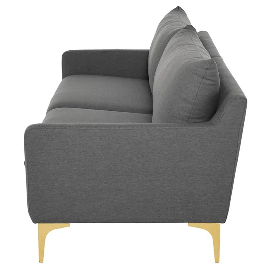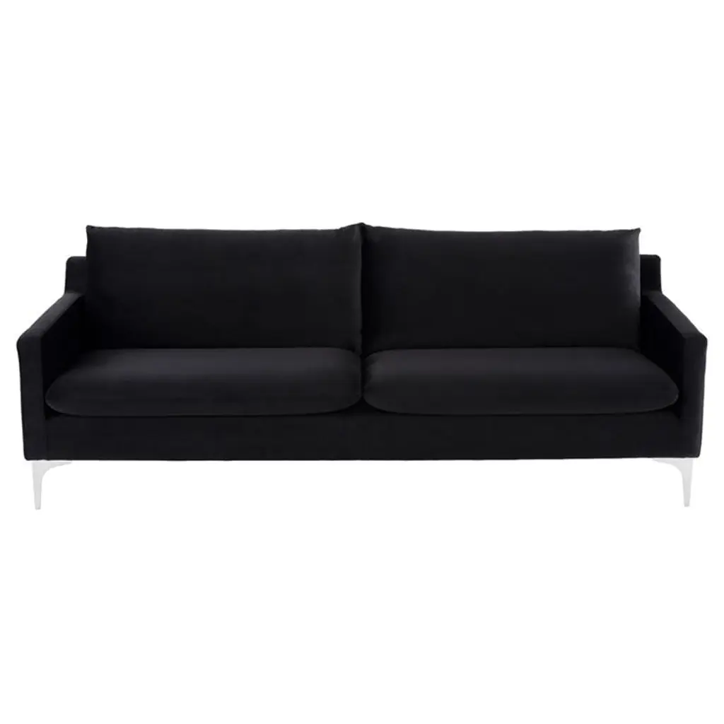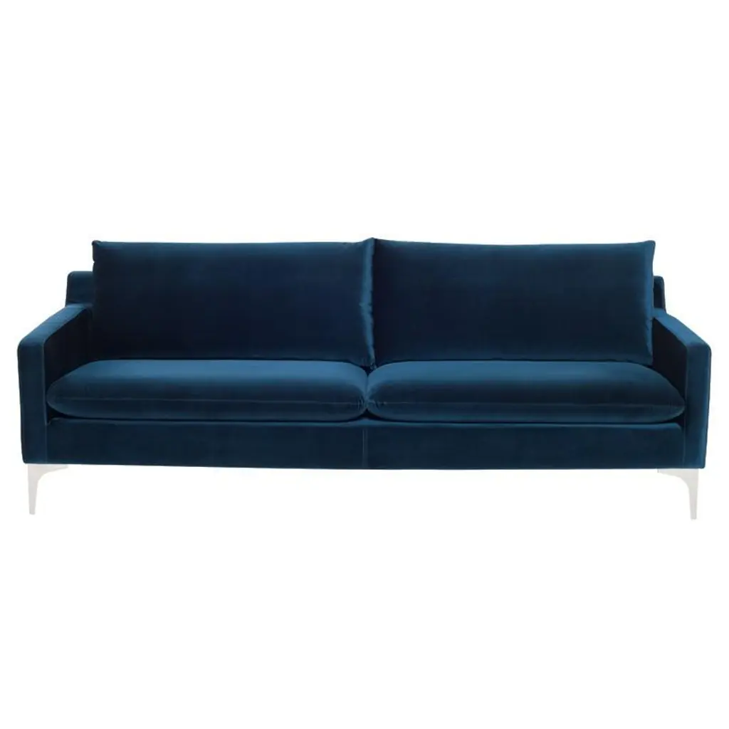 The Anders sofa strikes an inviting profile, its clean lines are softened by plush cushions. The Anders sofa can be paired with the Anders sectional and occasional chair to complete the look. Dimensions: 85.5" x 35" x 32.3" Seat height: 19.3" Seat depth: 23.5" Armrest height: 23.3" Seatback height: 18.5"