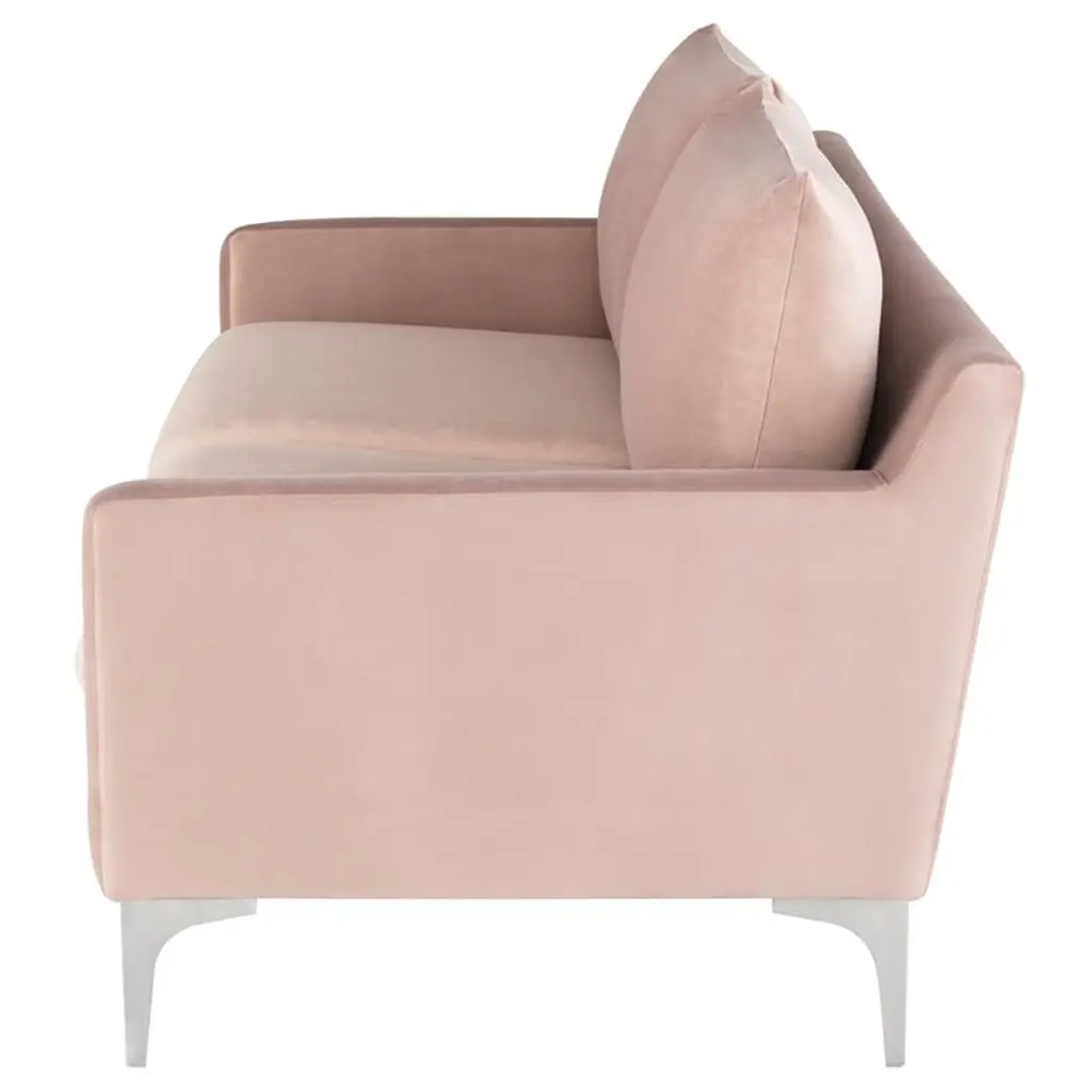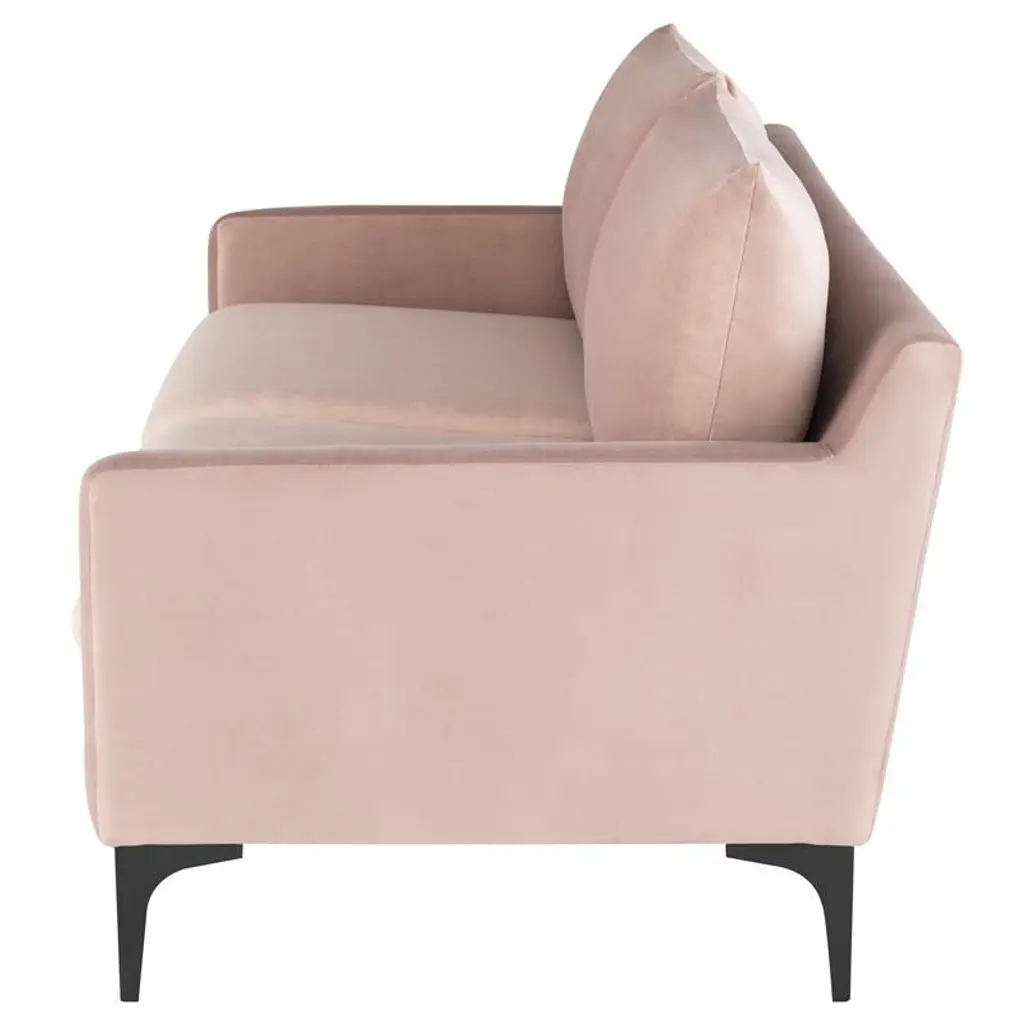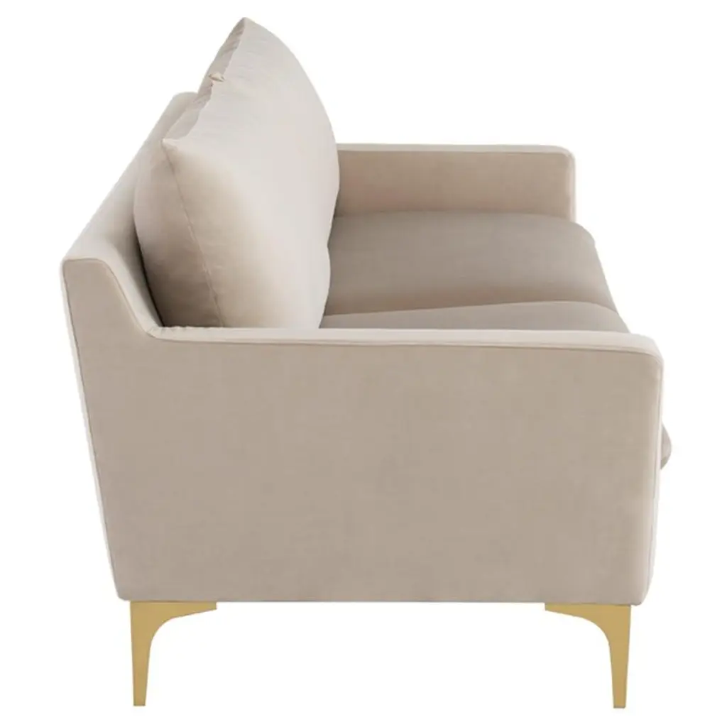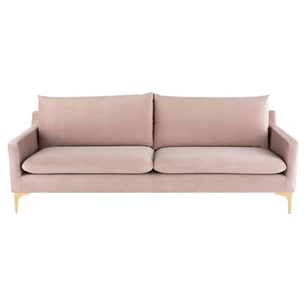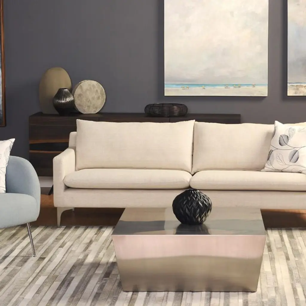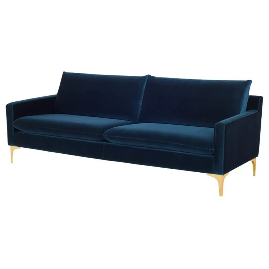 The Anders sofa strikes an inviting profile, its clean lines are softened by plush cushions. The Anders sofa can be paired with the Anders sectional and occasional chair to complete the look. Dimensions: 85.5" x 35" x 32.3" Seat height: 19.3" Seat depth: 23.5" Armrest height: 23.3" Seatback height: 18.5"