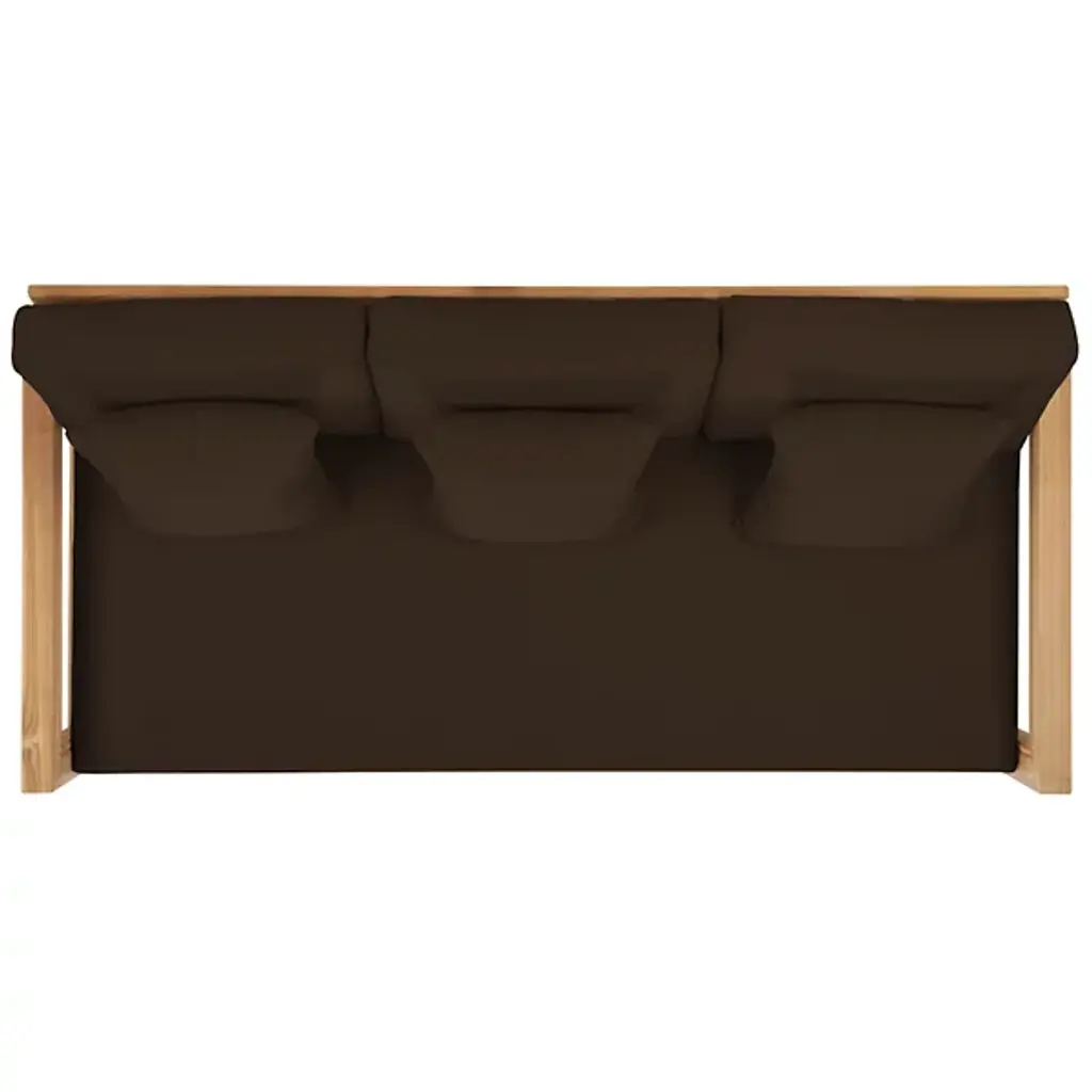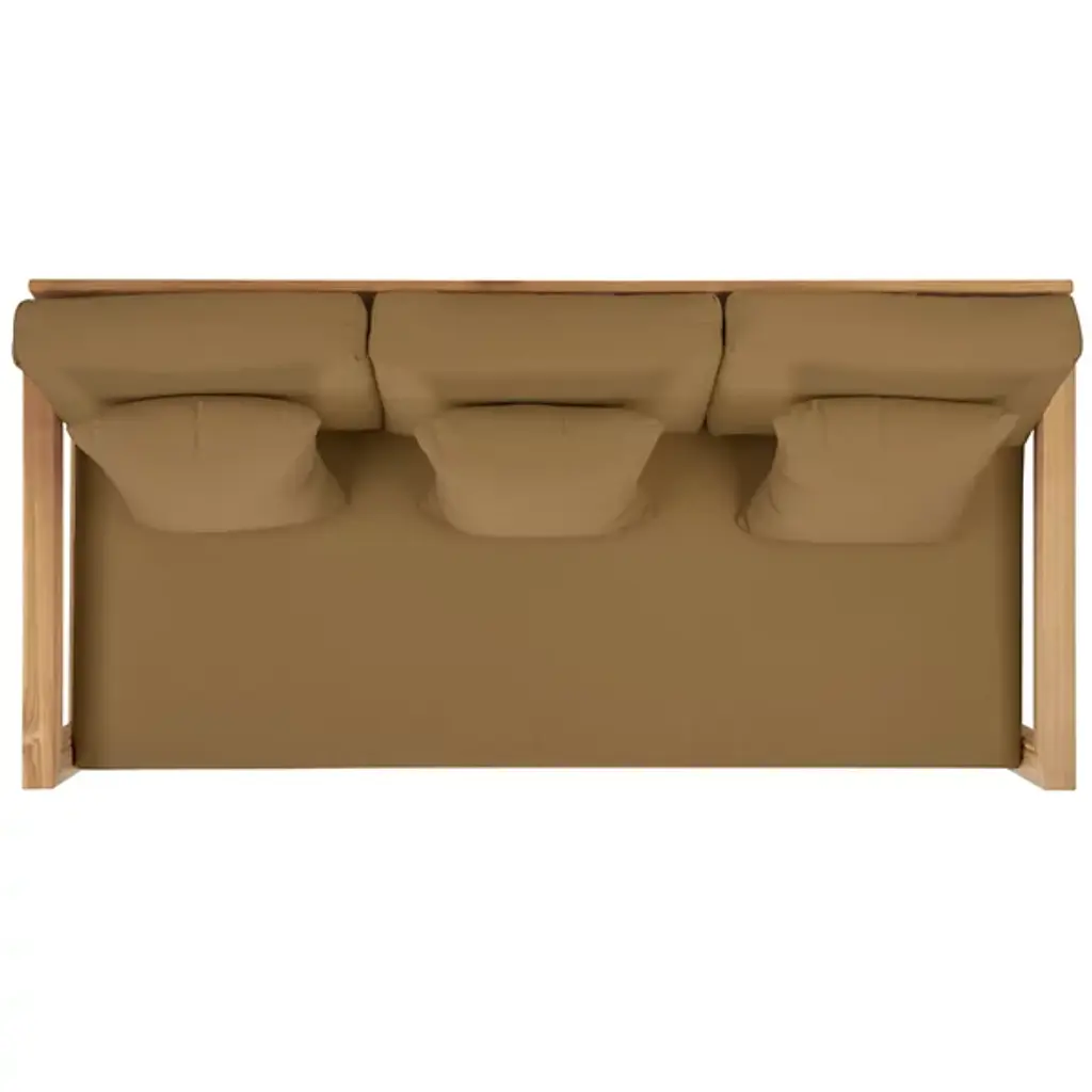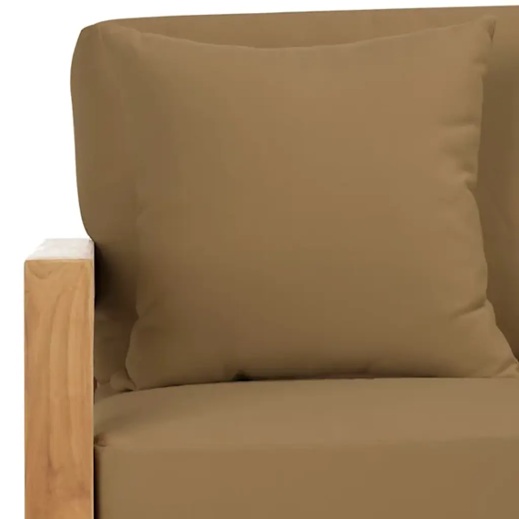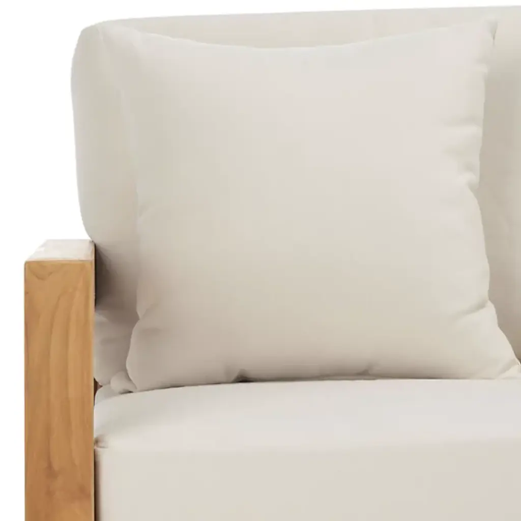 The Anglim Brazilian Teak Outdoor 3-Seat Sofa from Alder & Ore incorporates carefully spaced slats that enhance airflow and drainage. The robust Brazilian teak frame maintains its integrity through changing weather conditions. Premium cushions filled with foam and fiber provide exceptional comfort for extended outdoor lounging. The sofa's substantial presence makes it ideal for patios, poolside areas, or covered porches. Its clean-lined profile adapts naturally to outdoor environments while offering indoor-level comfort. The additional pillows allow for personalized comfort arrangements during long afternoons outdoors.