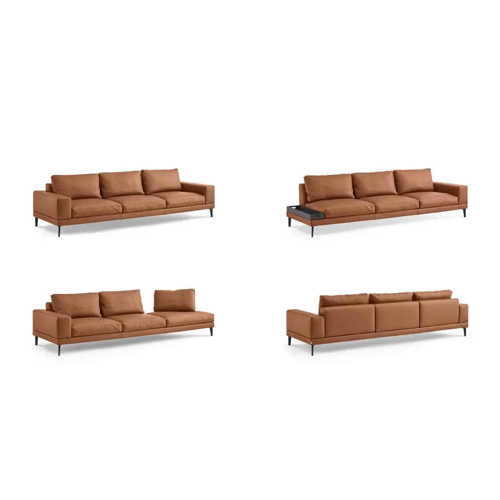 Indulge in the luxurious comfort of the Angular Upholstered Sofa by Dema Nelson. Made with a durable steel frame, multi-density foam padding, and soft goose down cushions, this sofa offers unmatched support and relaxation. The metal or wooden legs add a touch of sophistication to any space.